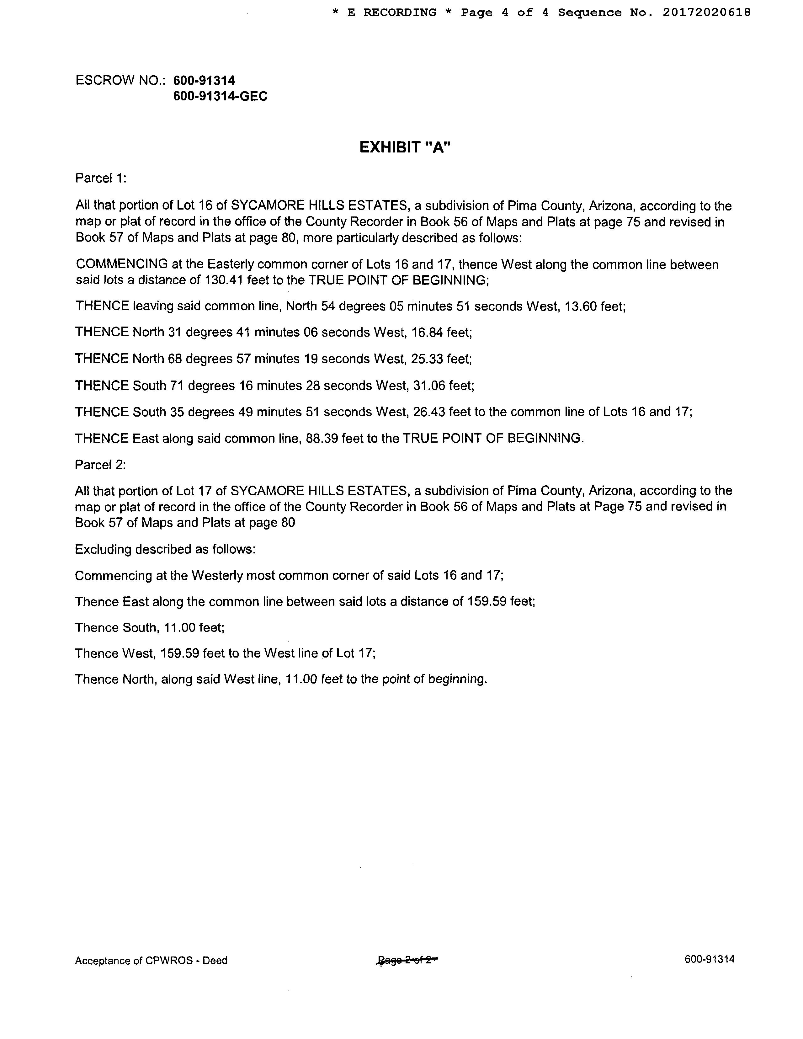 Legal Description : Sycamore Hills Estates (final) Lot 17 Exc Nwly 11' & Ptn S31.06' W88.39' E218.8' Lot 16