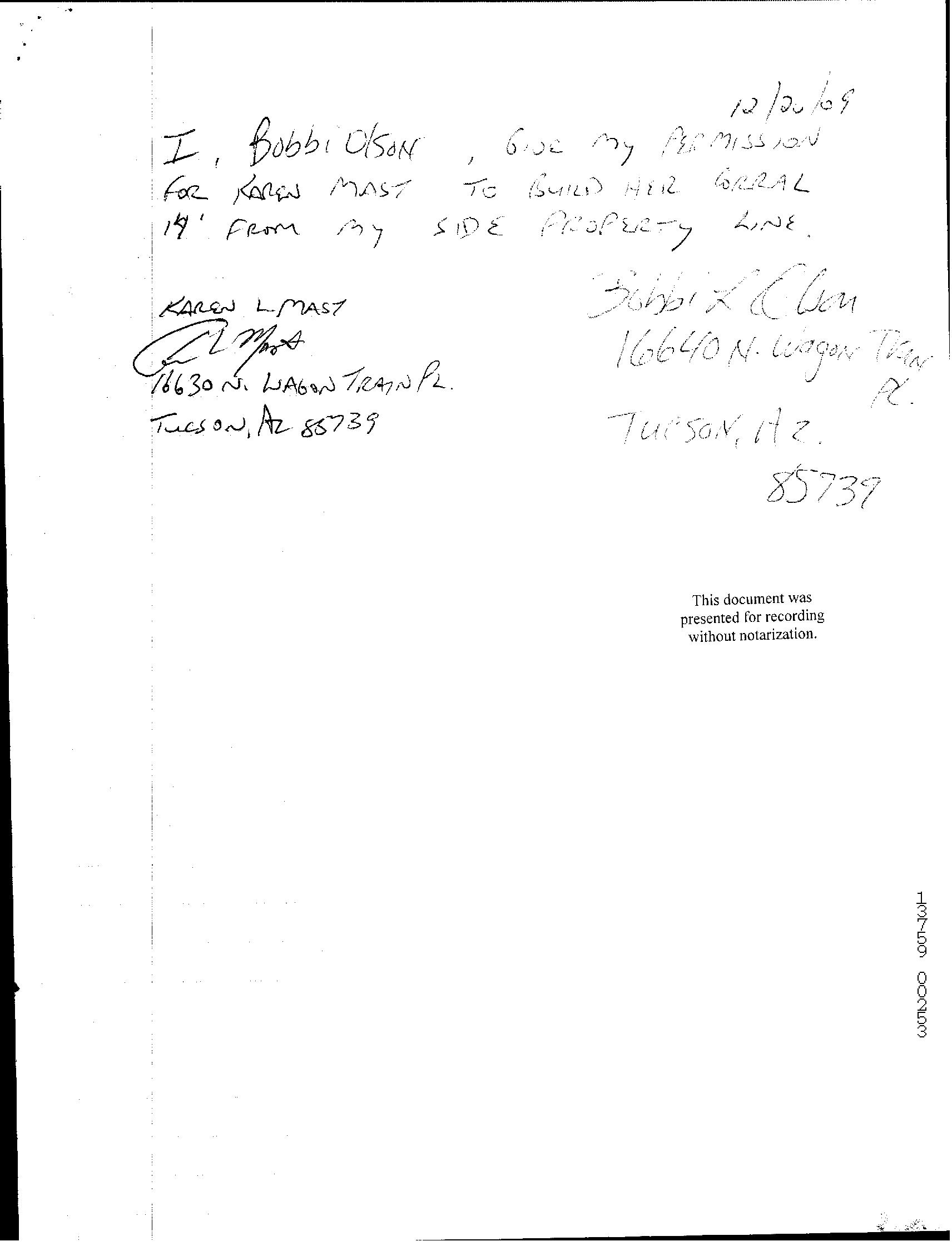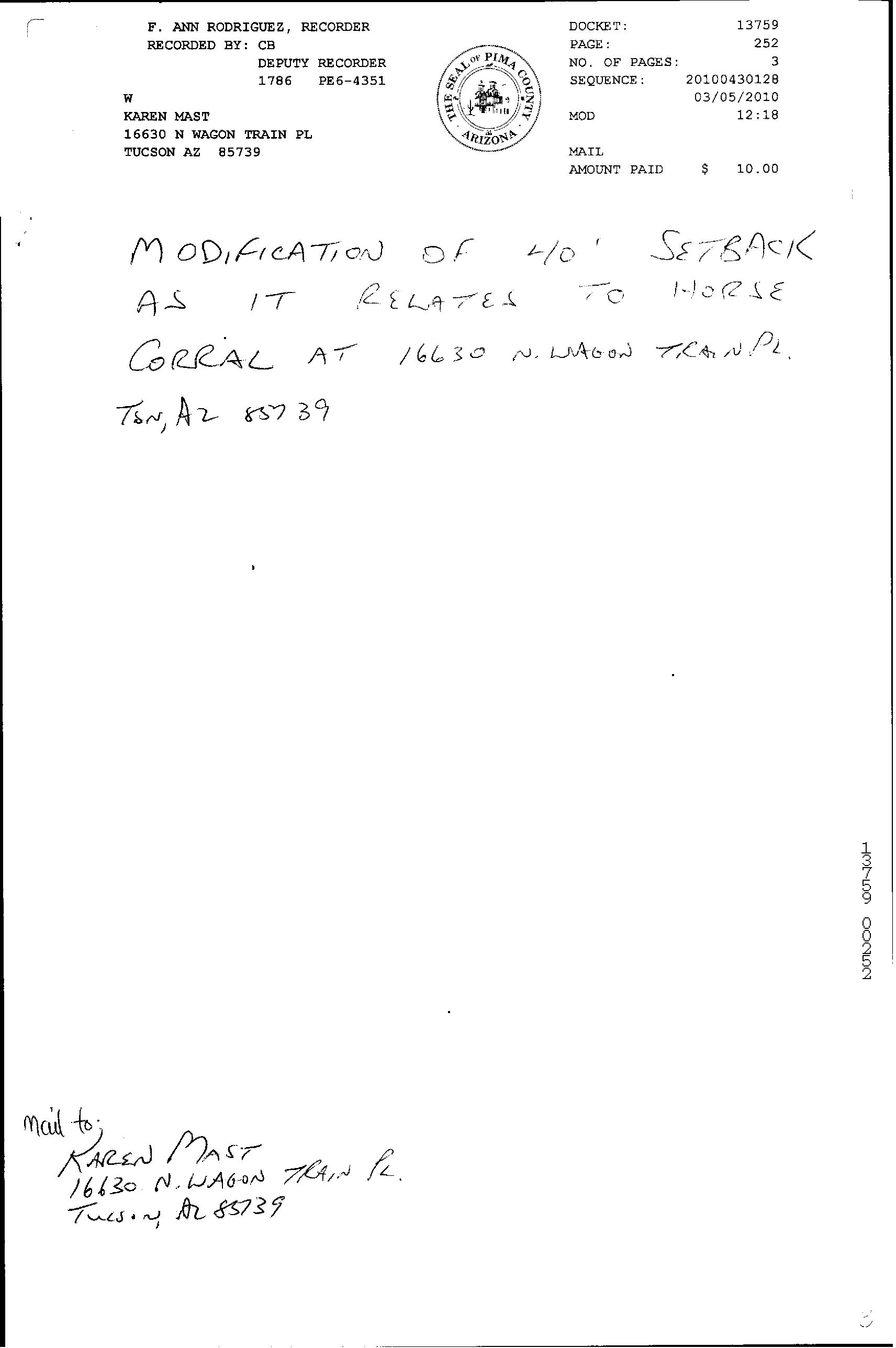 Mailing Address : 16630 N Wagon Train Pl, Tucson AZ 85739-9667 R019