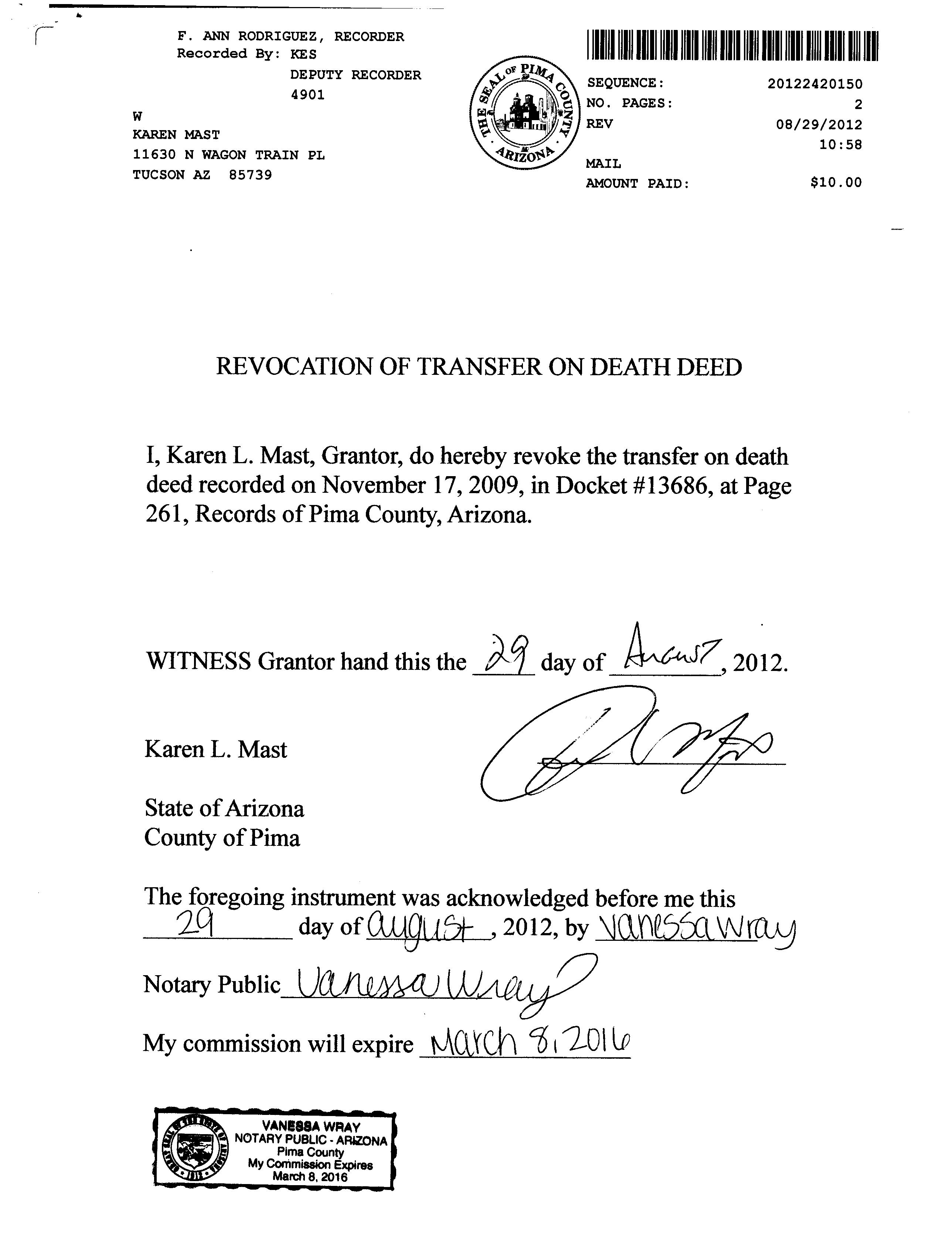 Owner Name: Mast Karen L / APN / Alternate APN: 222-03-0210 / Deed Type: Warranty Deed