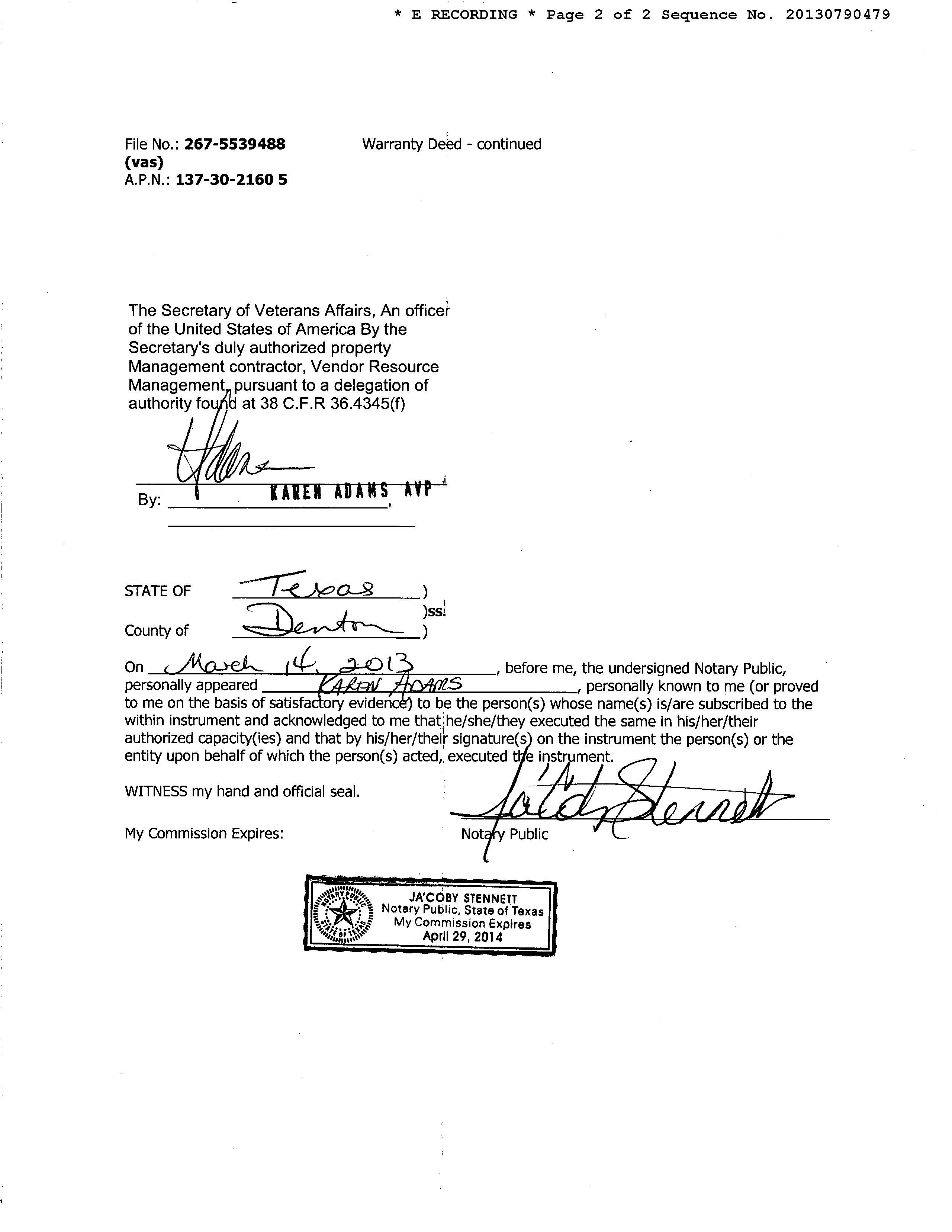 Deed Type : Special Warranty Deed Document # : 790479