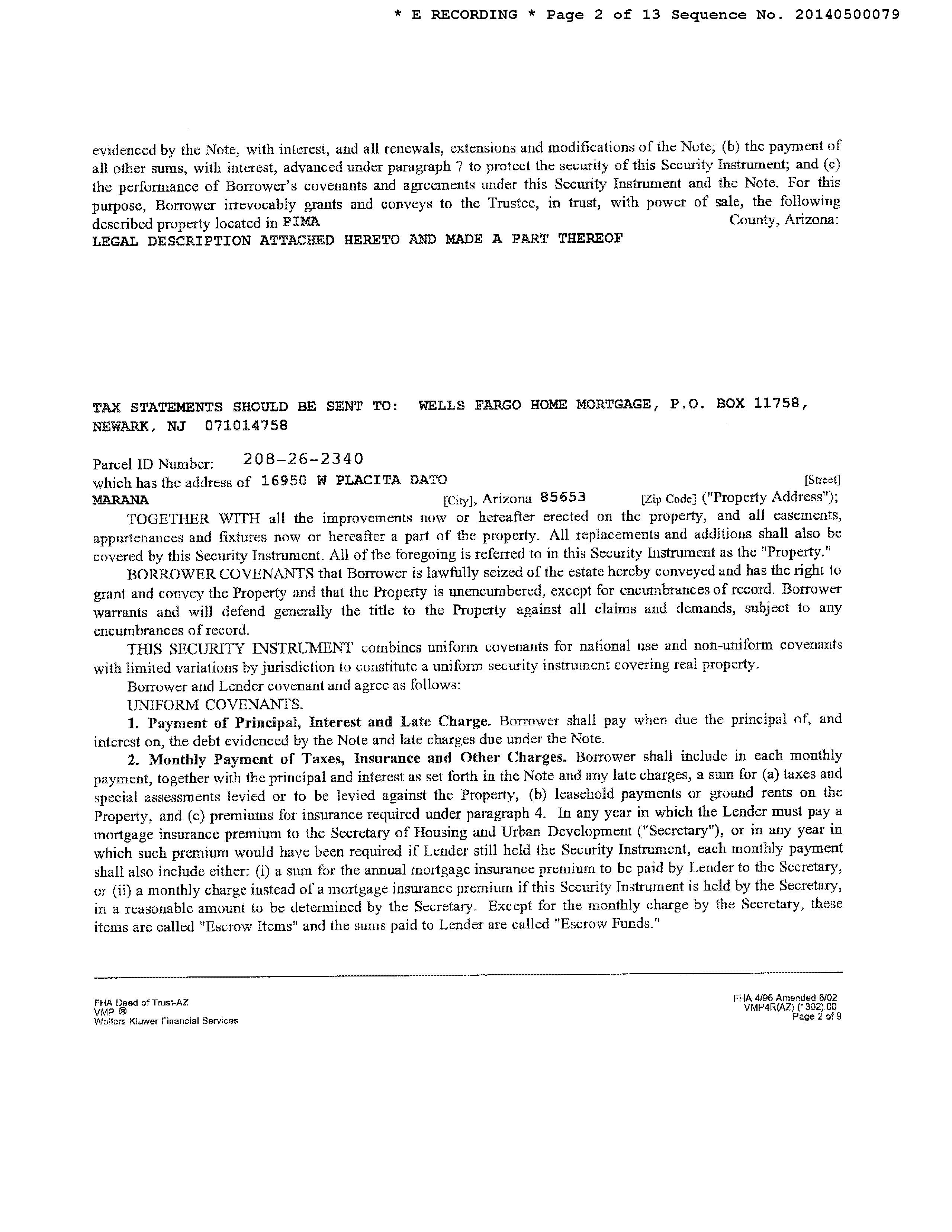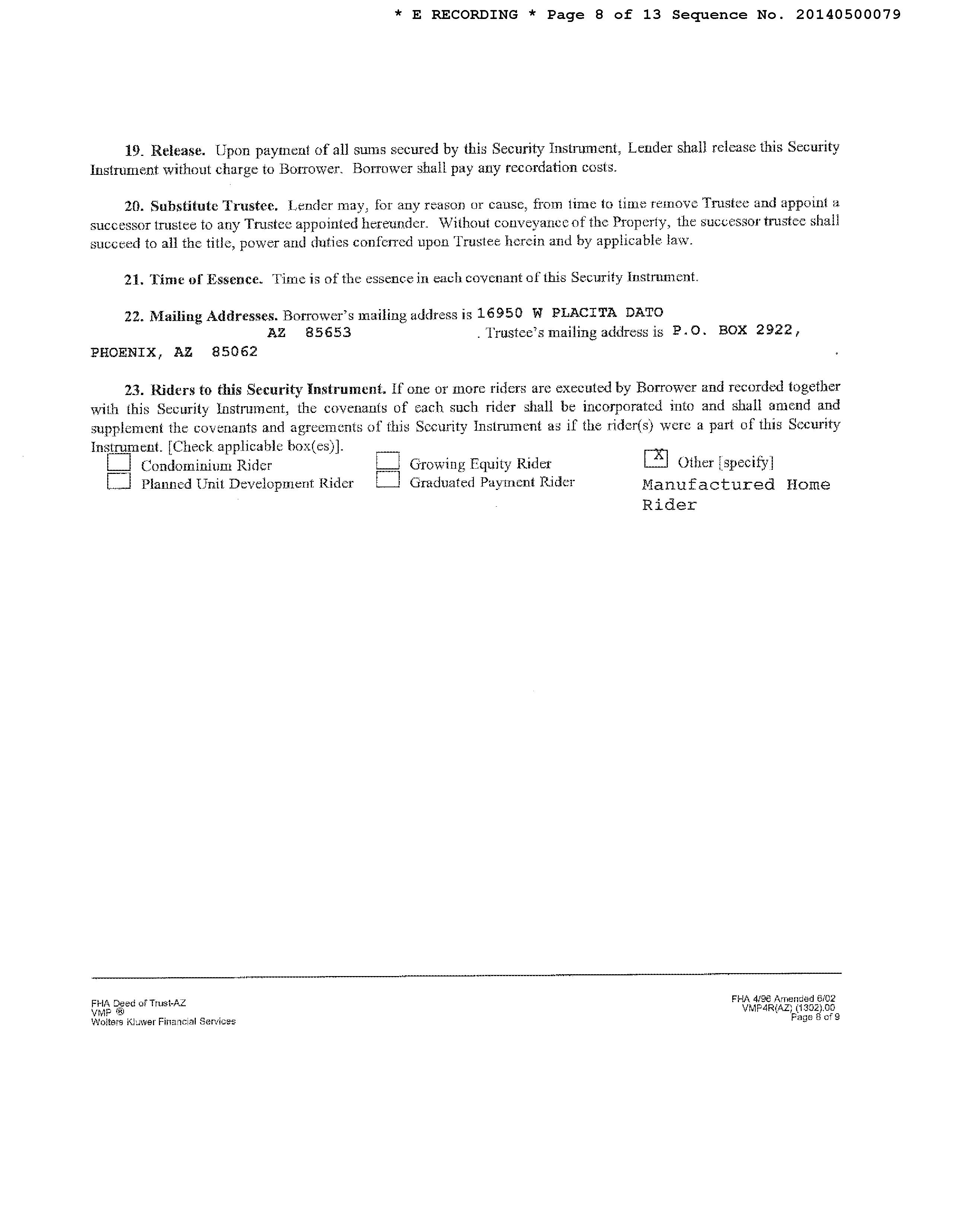 Mailing Address : 16950 W Placita Dato, Marana AZ 85653-8747 H004