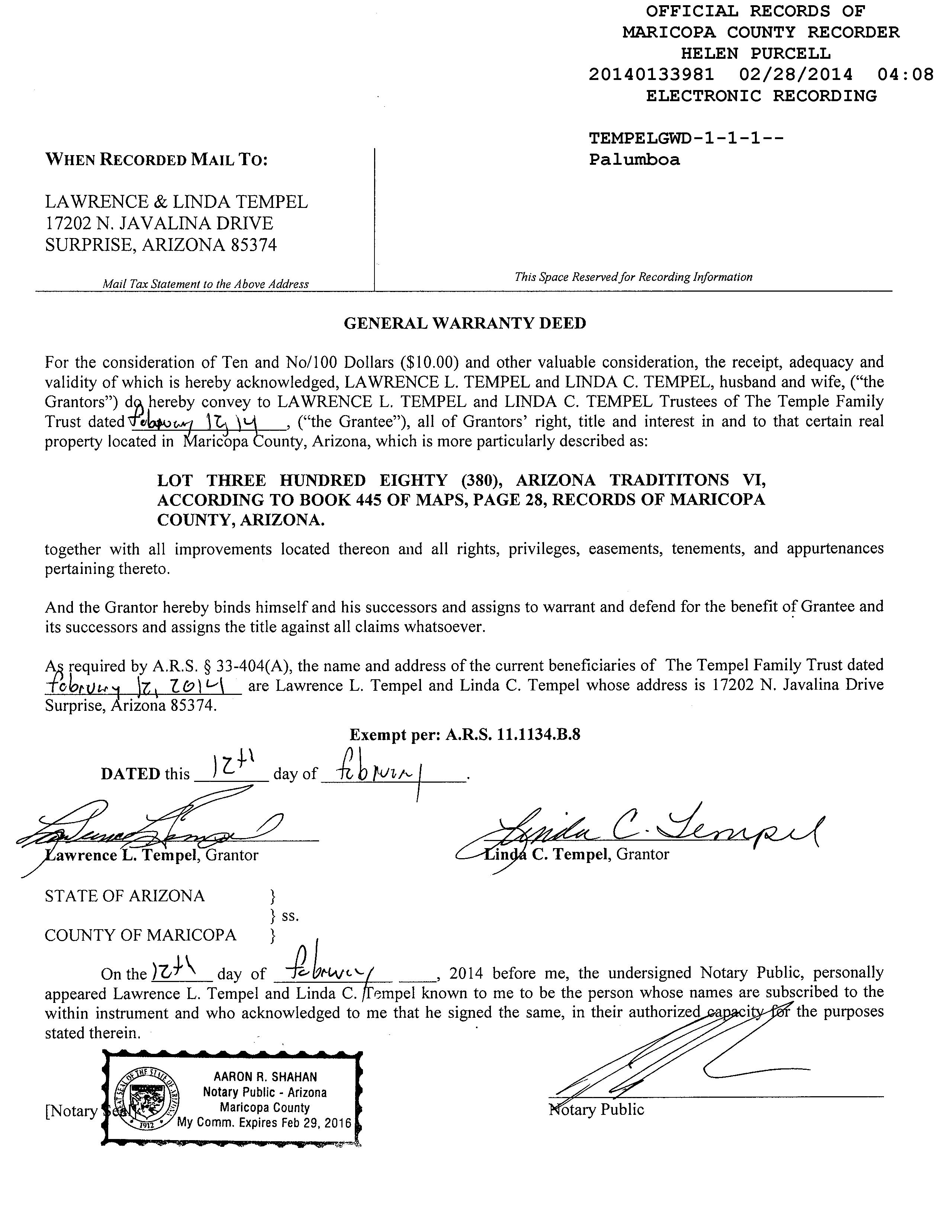 Legal Description : Lot 380 Arizona Traditions 6 Mcr 445-28