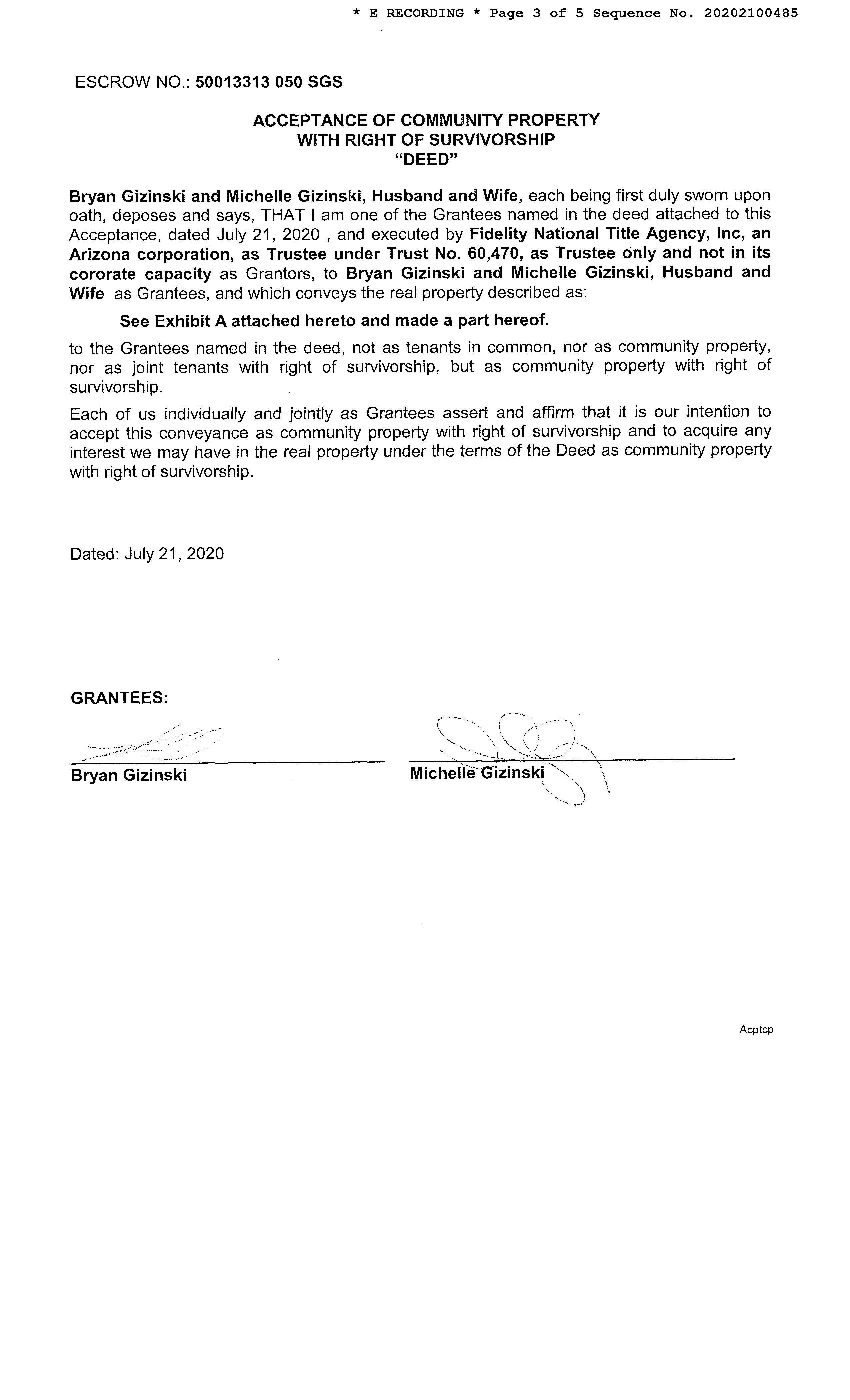OWNER: GIZINSKI BRYAN & MICHAEL AFFIDAVIT 2020 2100485 07/28/2020