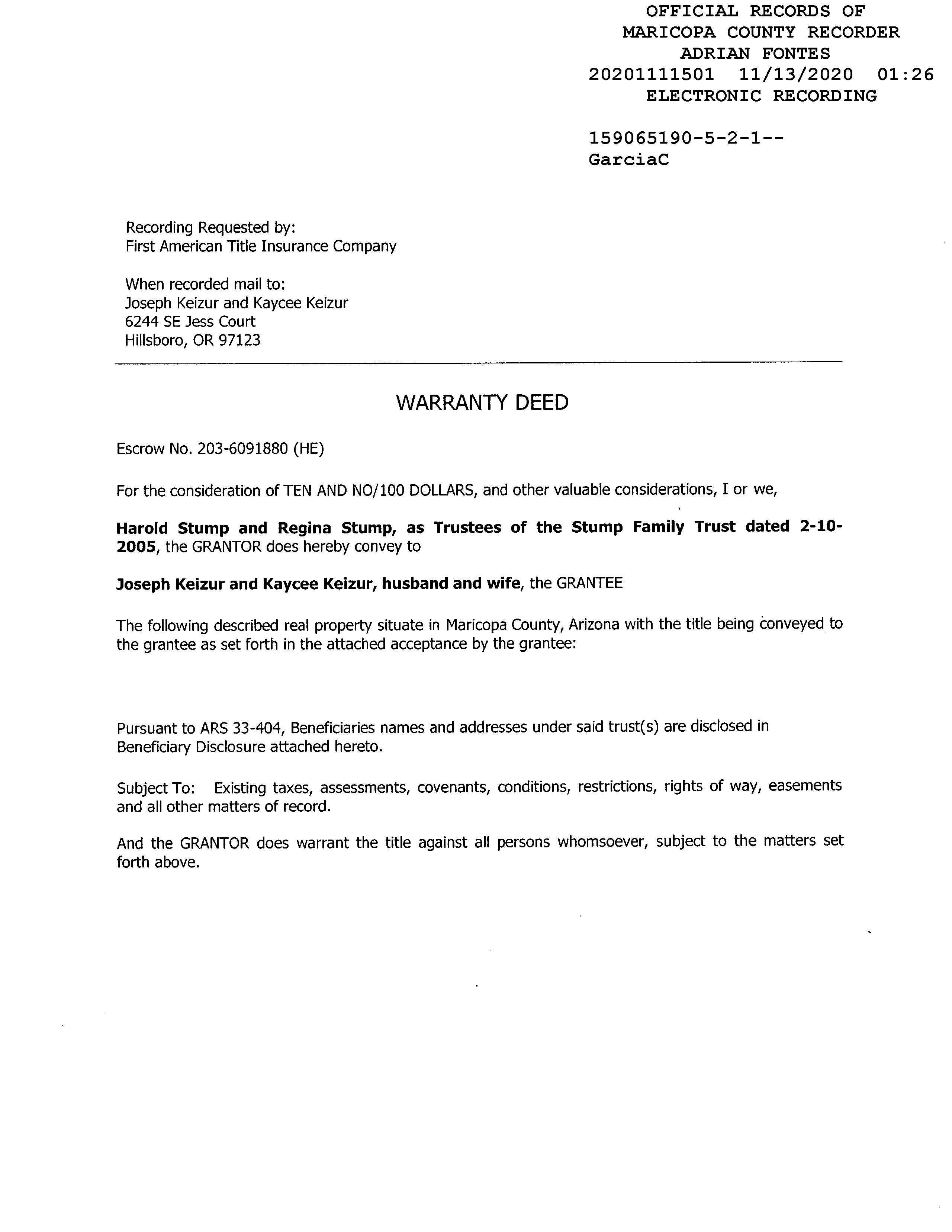 OWNER: KEIZUR JOSEPH & KAYCEE     2020 1111501 11/13/2020