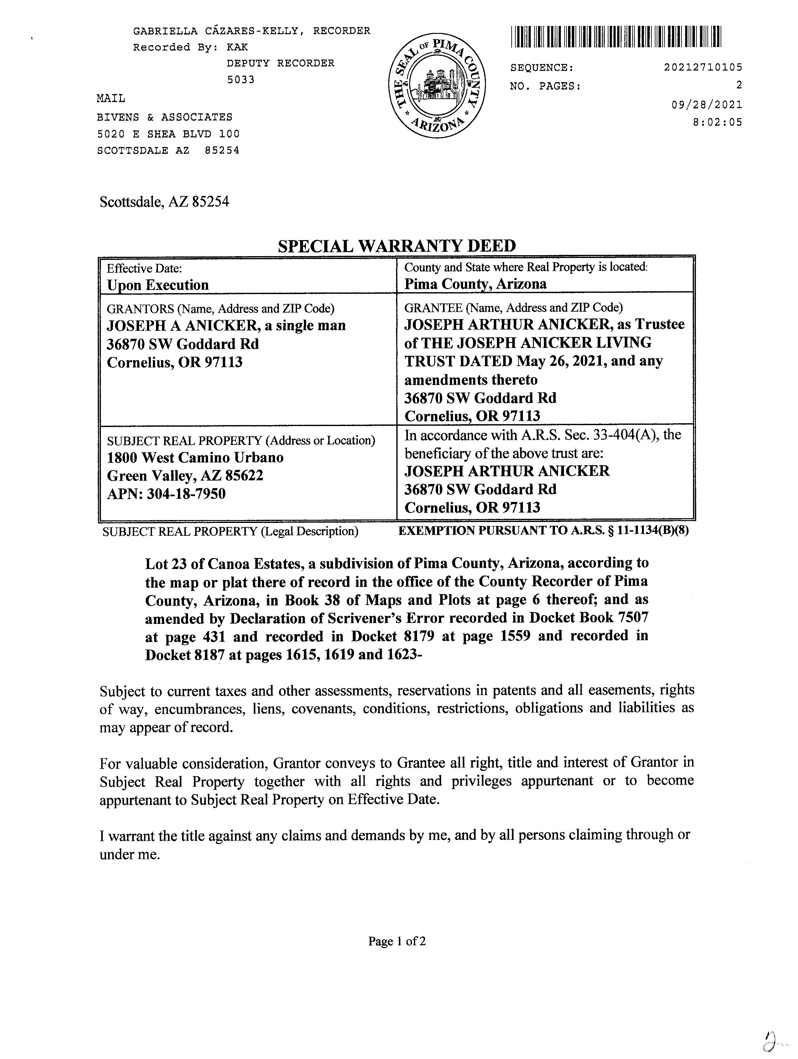 Seller Name : Anicker Joseph C Jr & Joyce C