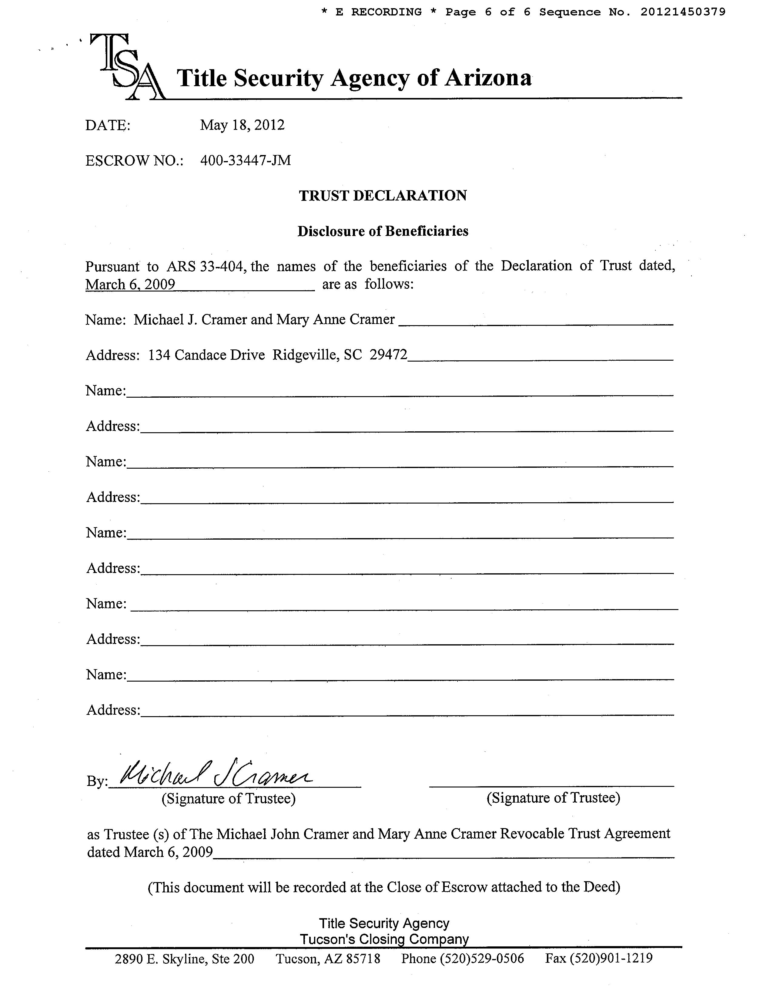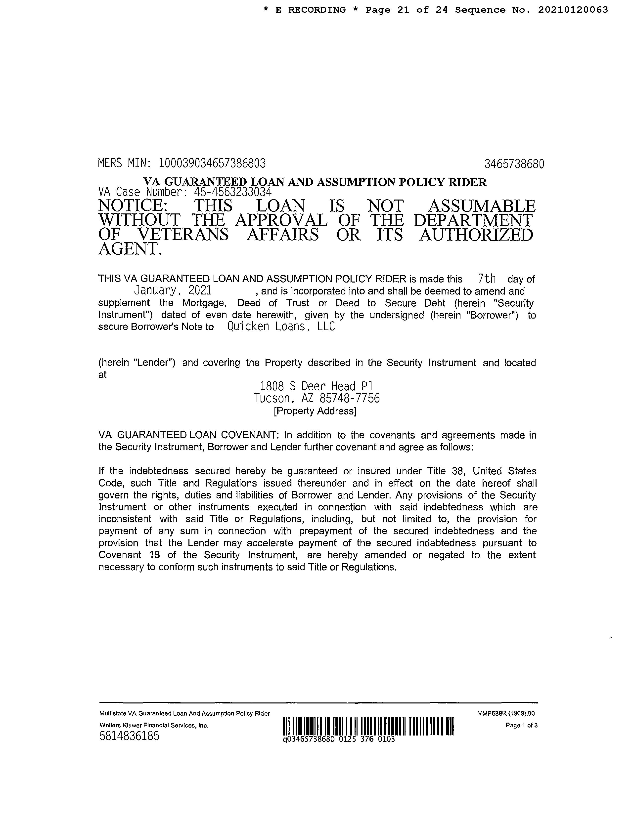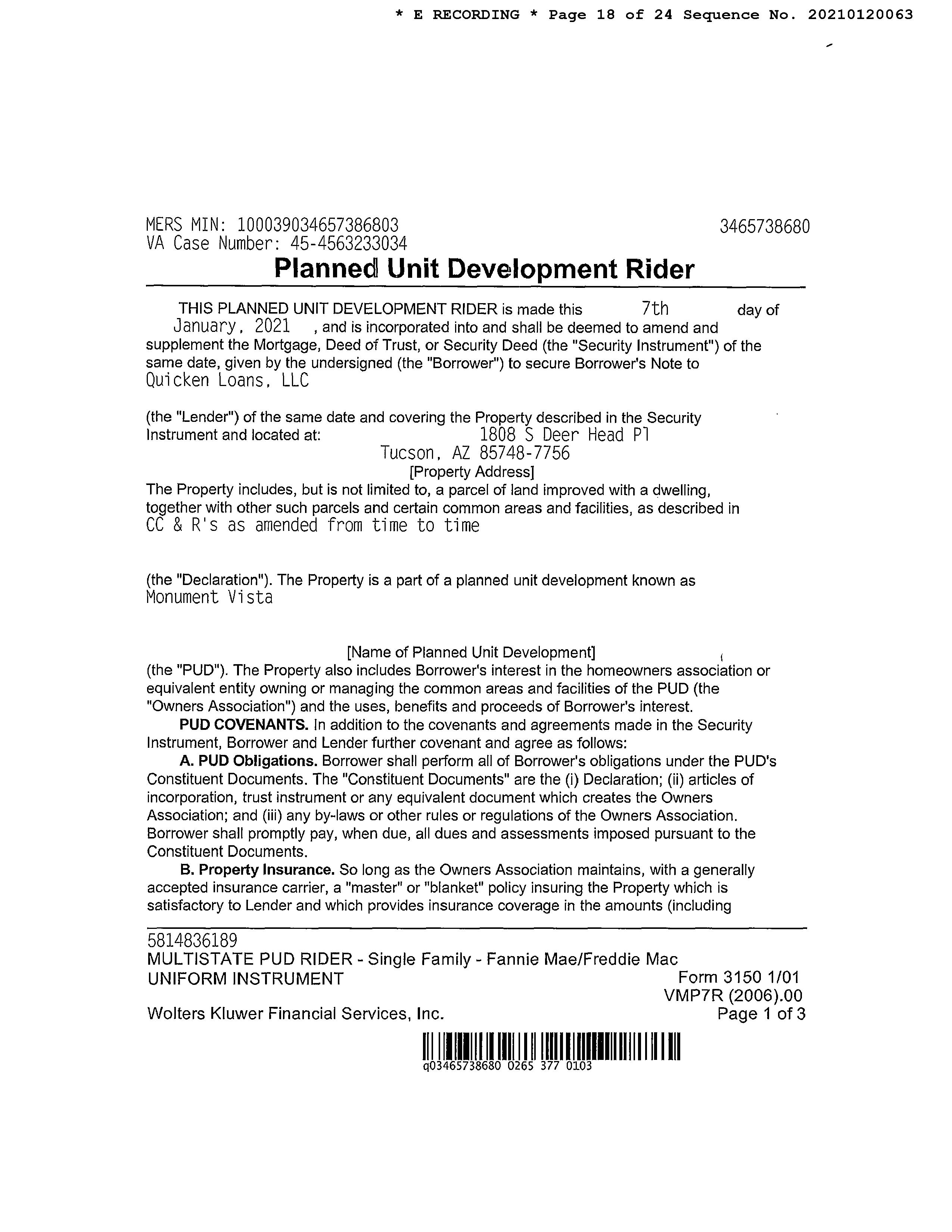 Mailing Address : 1808 S Deer Head Pl, Tucson AZ 85748-7756 C003