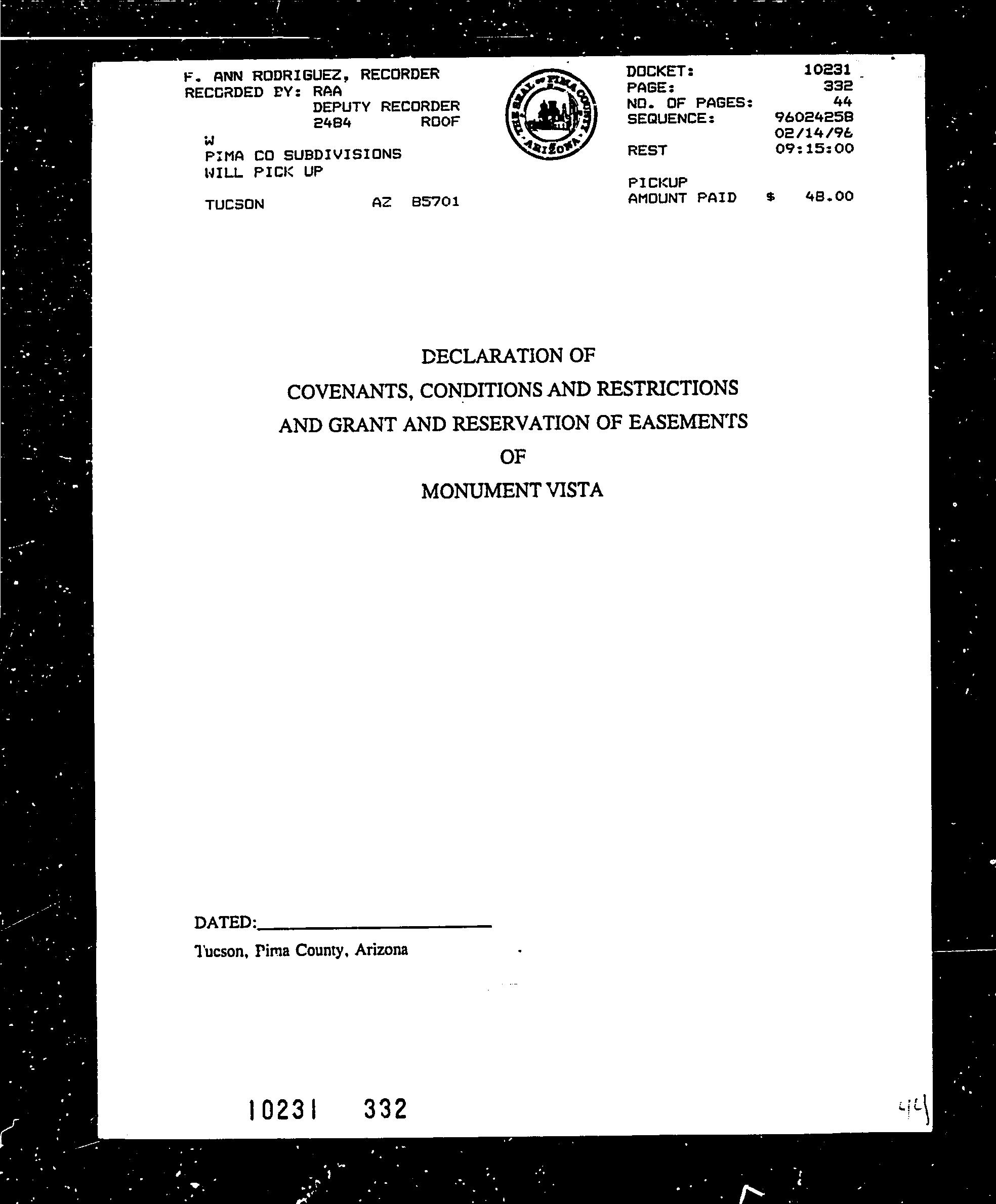12292 8463 WD TIMM PHILIP P/COLLEEN A 10/16/1998 3,497,000 10903 2373 SD PRESLEY HOMES SOUTHWEST IN M ADDITIONAL PROPERTY INFORMATION