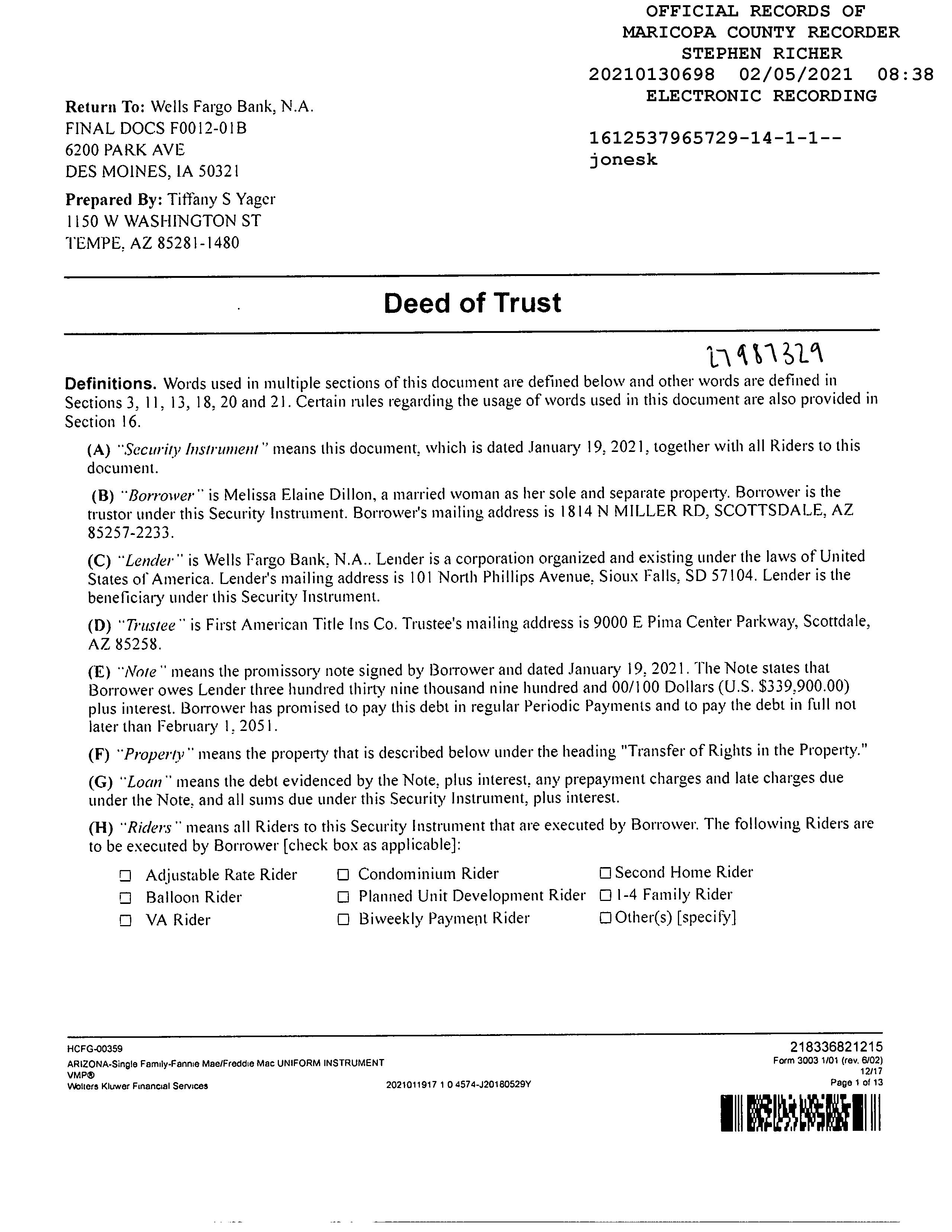 Mailing Address : 1814 N Miller Rd, Scottsdale AZ 85257-2233 C007