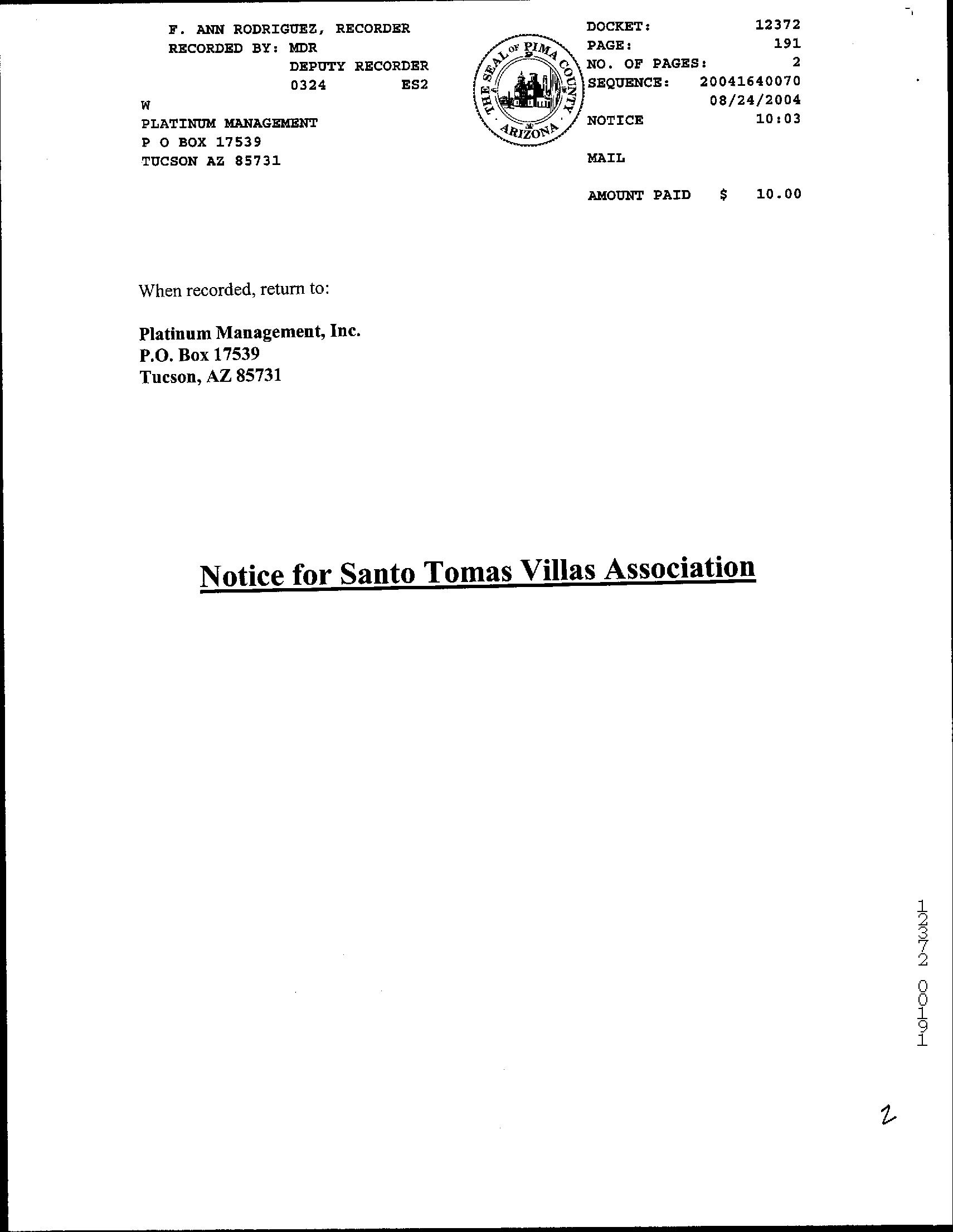 12810 6015 WD KB HOMES SALES-TUCSON INC 12/14/2004 2,405,655 12448 3959 SW FIDELITY NATIONAL T30104 M ADDITIONAL PROPERTY INFORMATION