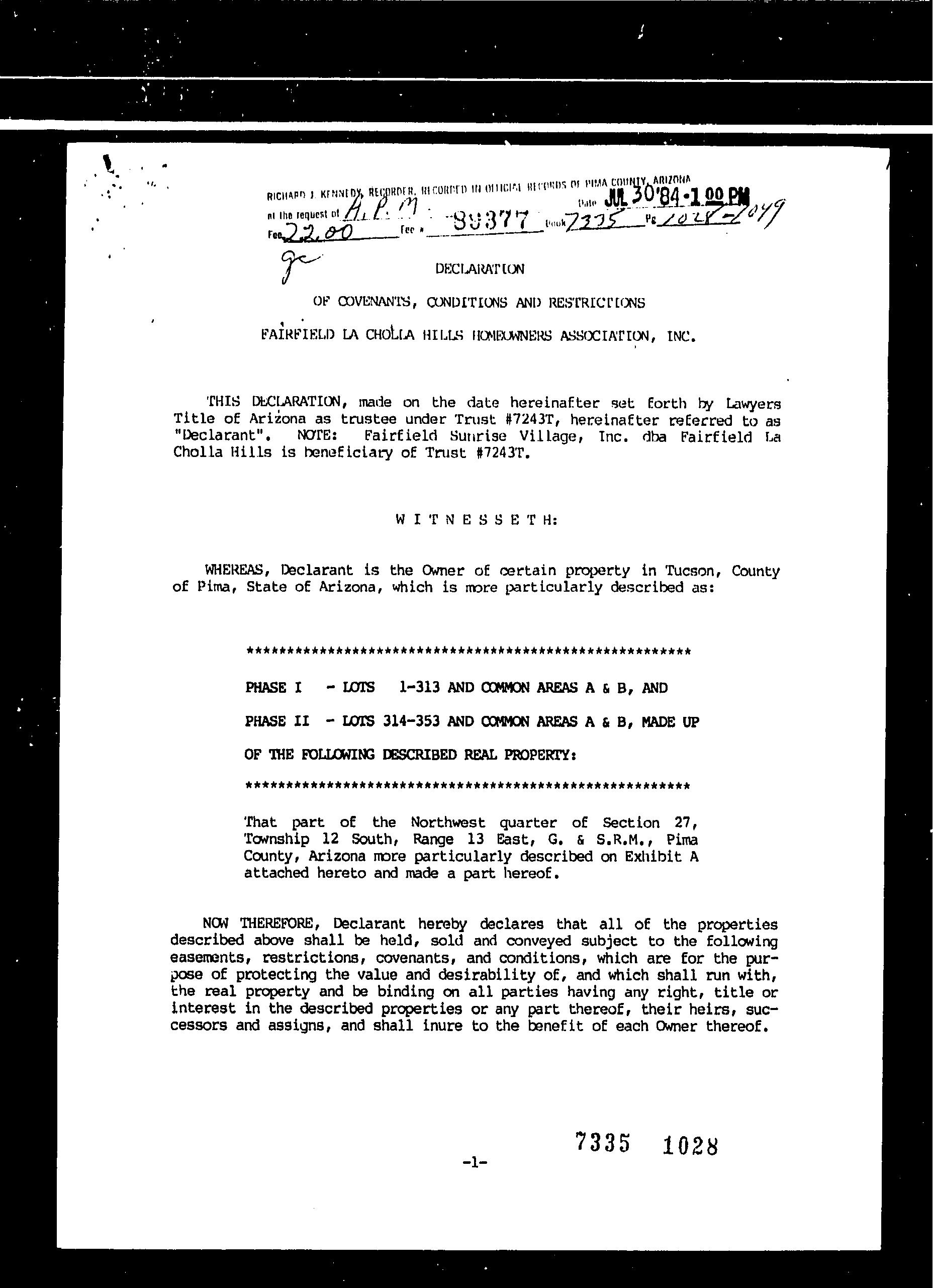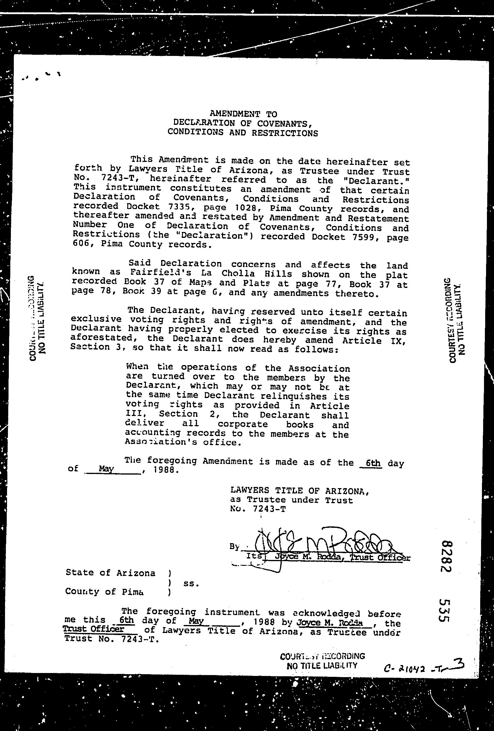 This information is furnished without fee and without benefit of a complete title search. No liability is assumed by First American Title. If it is desired that liability be assumed, you may apply for a policy of title insurance with First American Title Insurance Company.