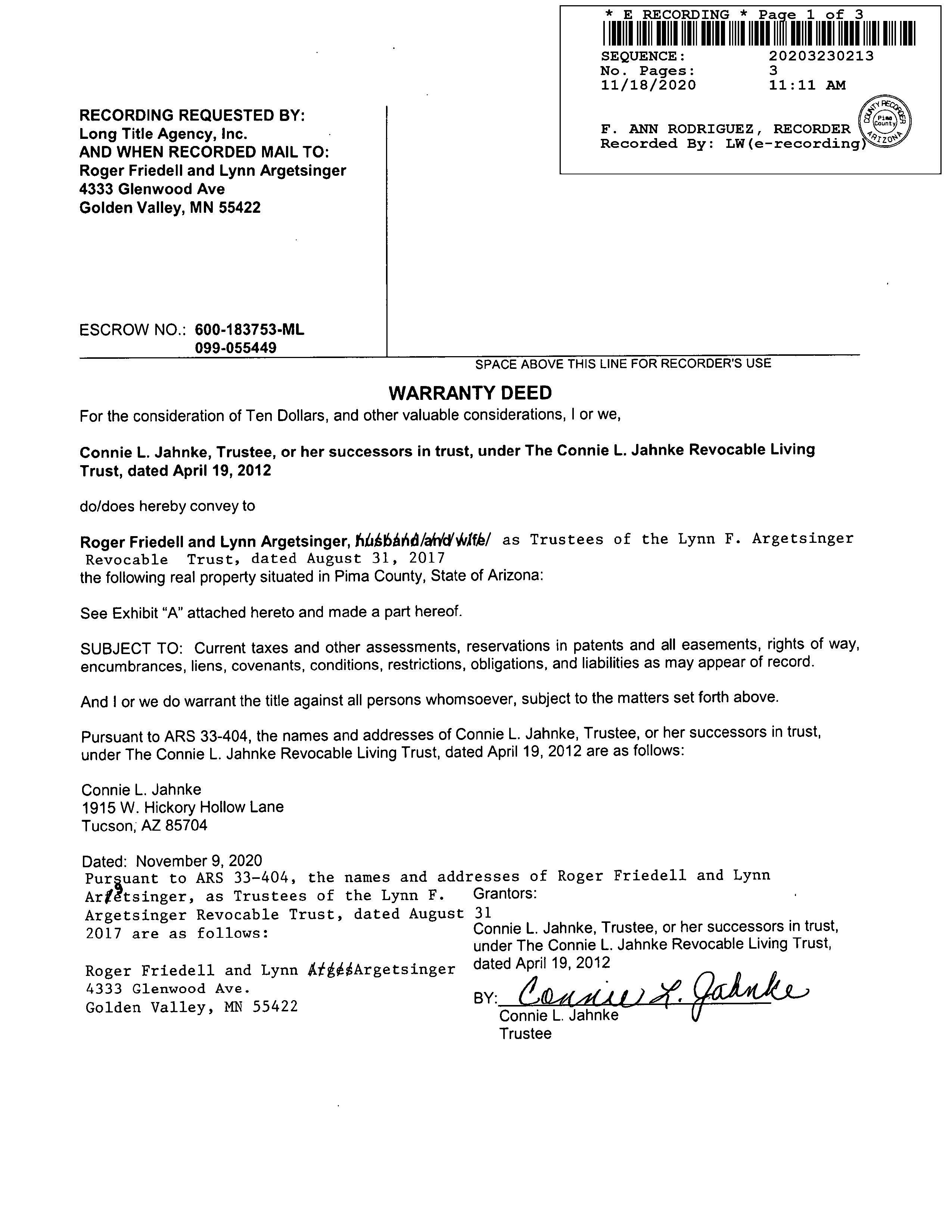 Owners Name: Address: ARGETSINGER LYNN F REVOC TR