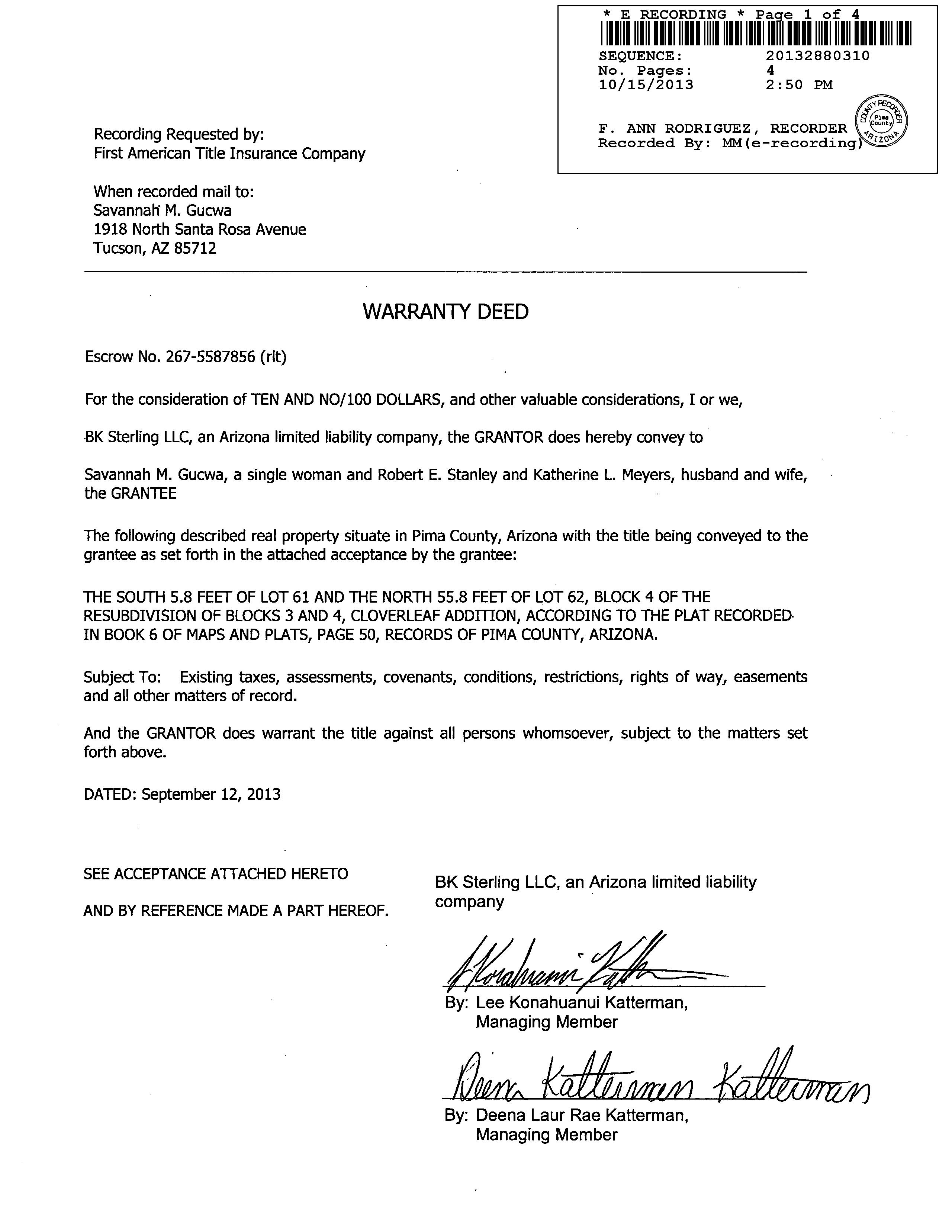 Owner Name : Gucwa Savannah M / Stanley Robert E