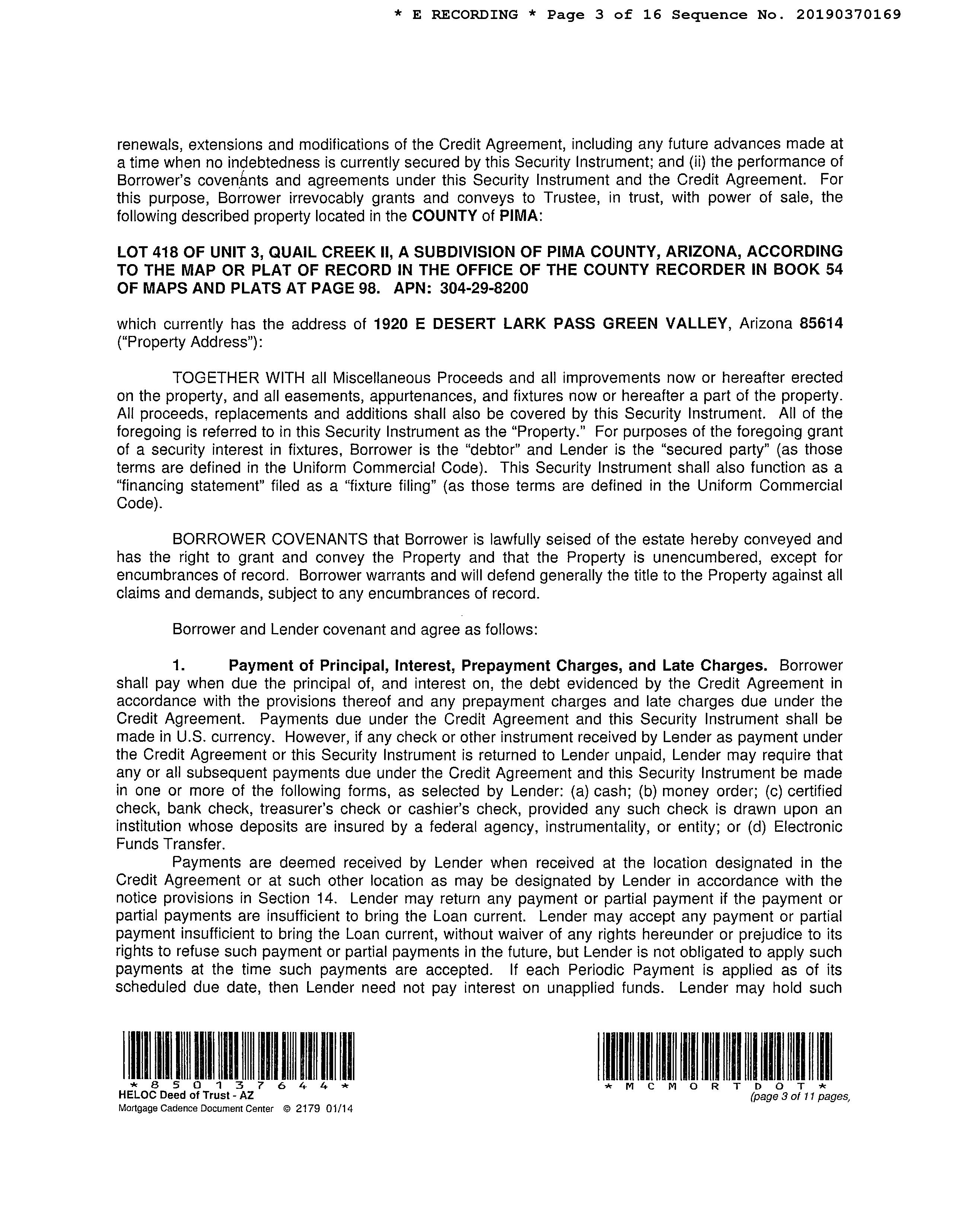 Legal Description : Unit 3 Quail Creek Ii Lot 418