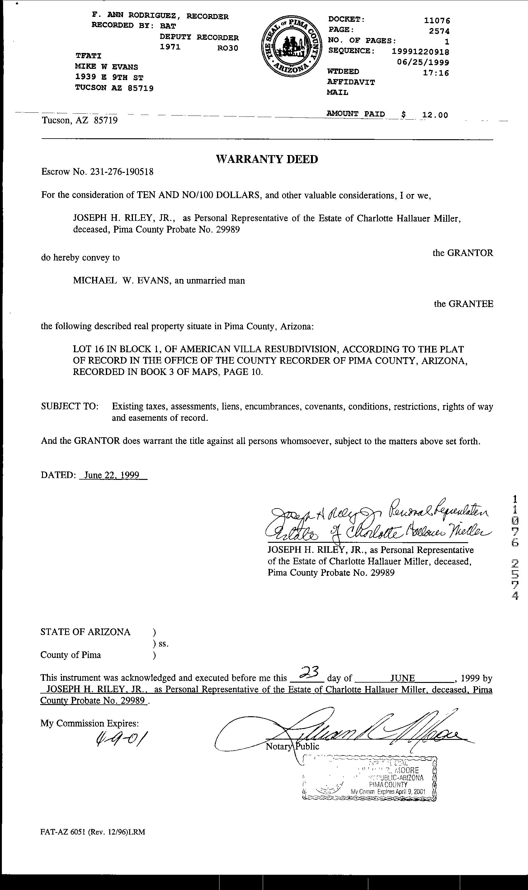 Deed Type : Warranty Deed