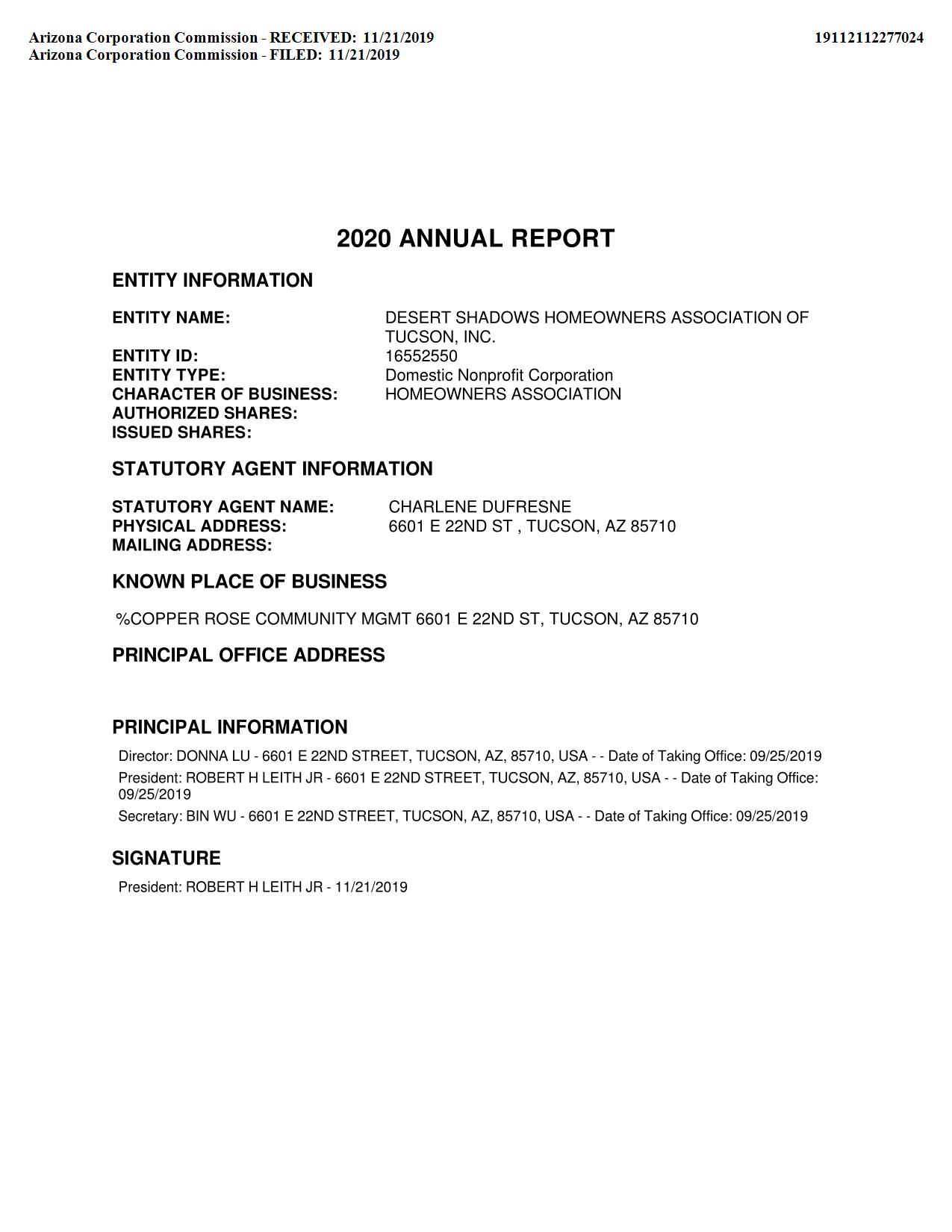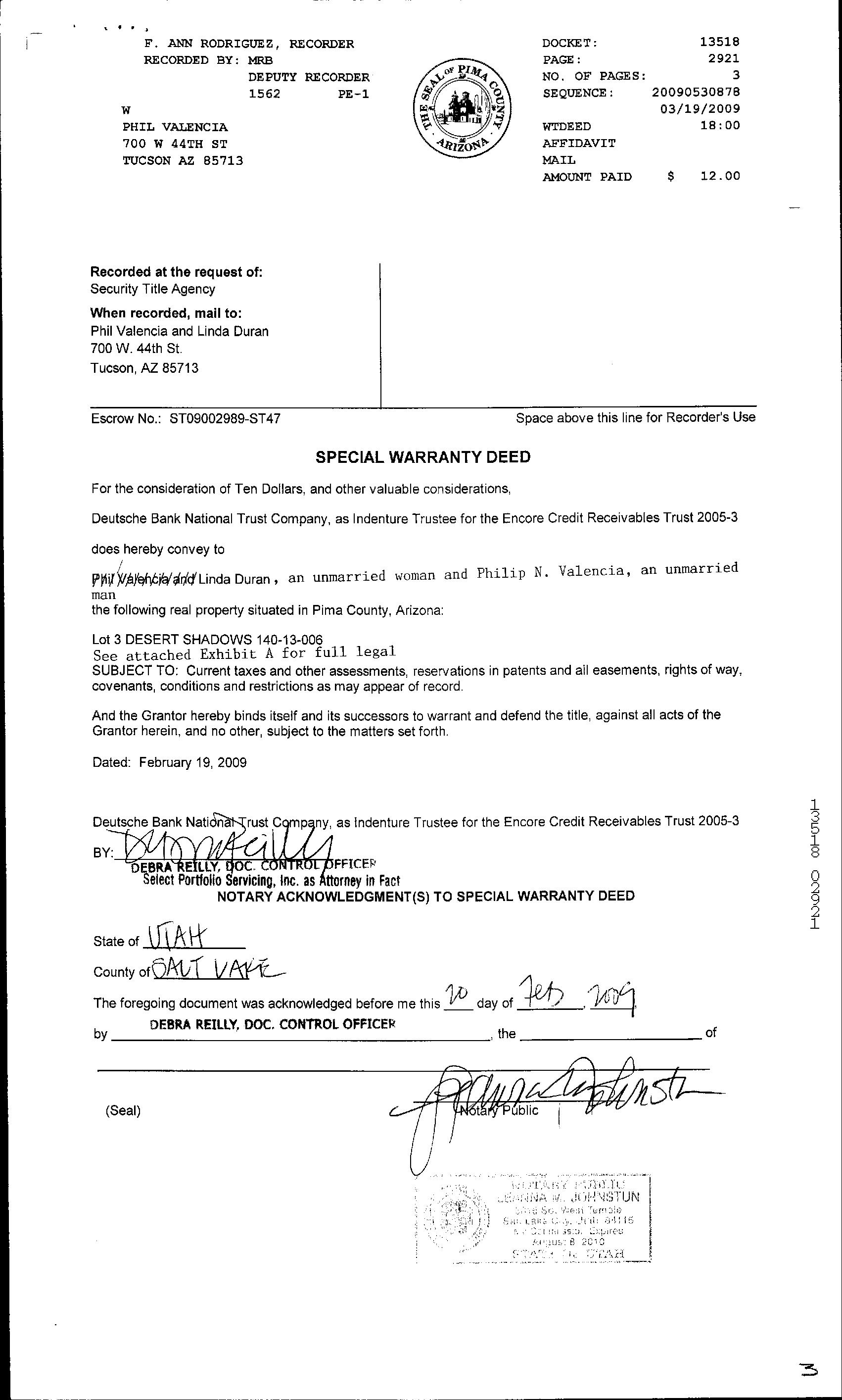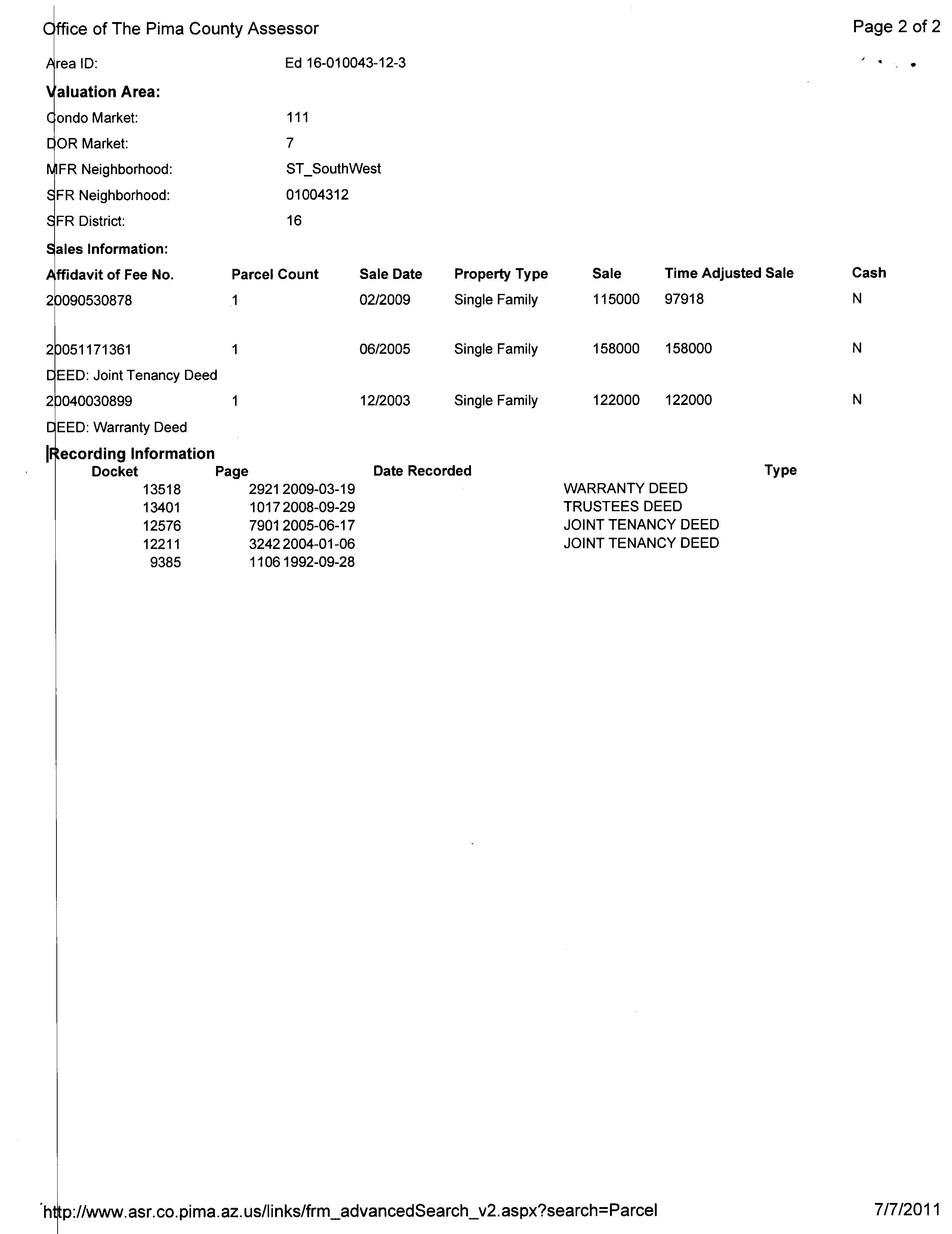 Mailing Address : 1950 E Bantam Rd, Tucson AZ 85706-1735 C012