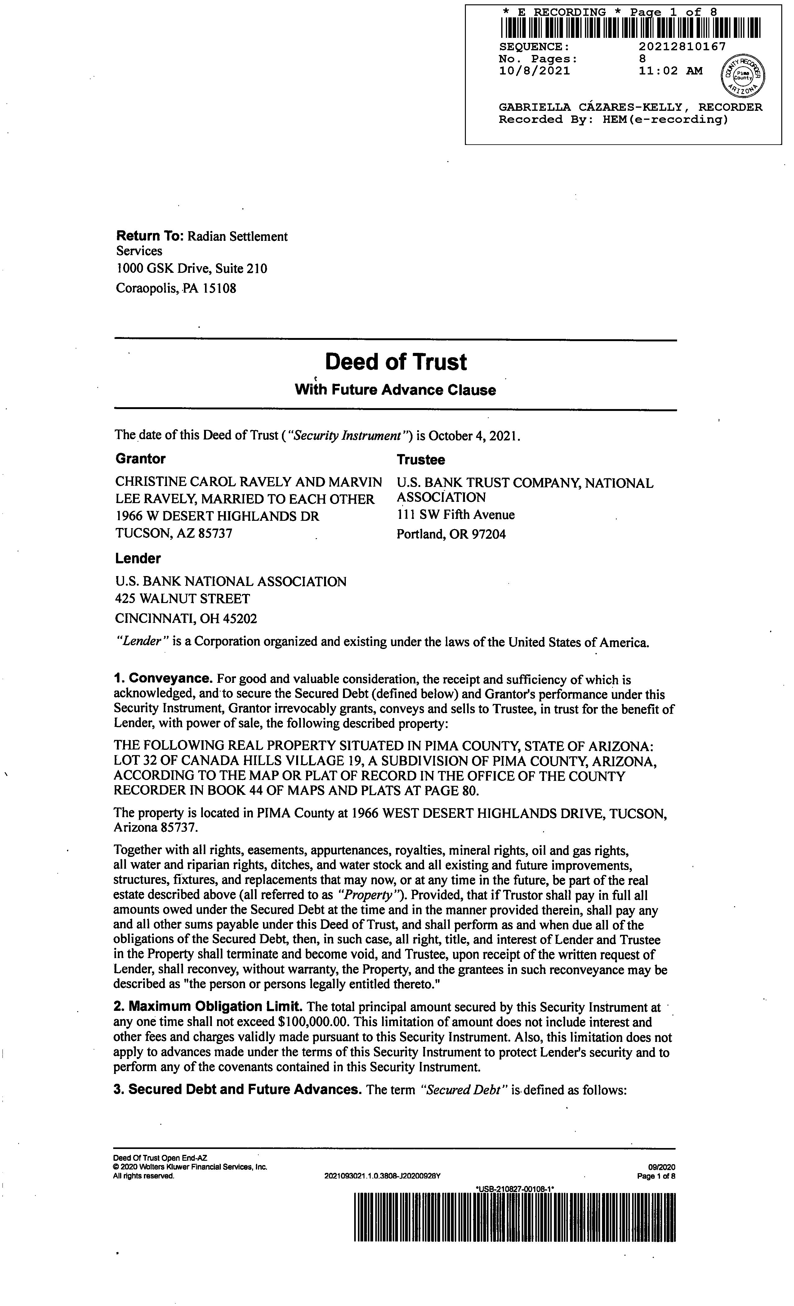 Subject Property : 1966 W Desert Highlands Dr Tucson AZ 85737