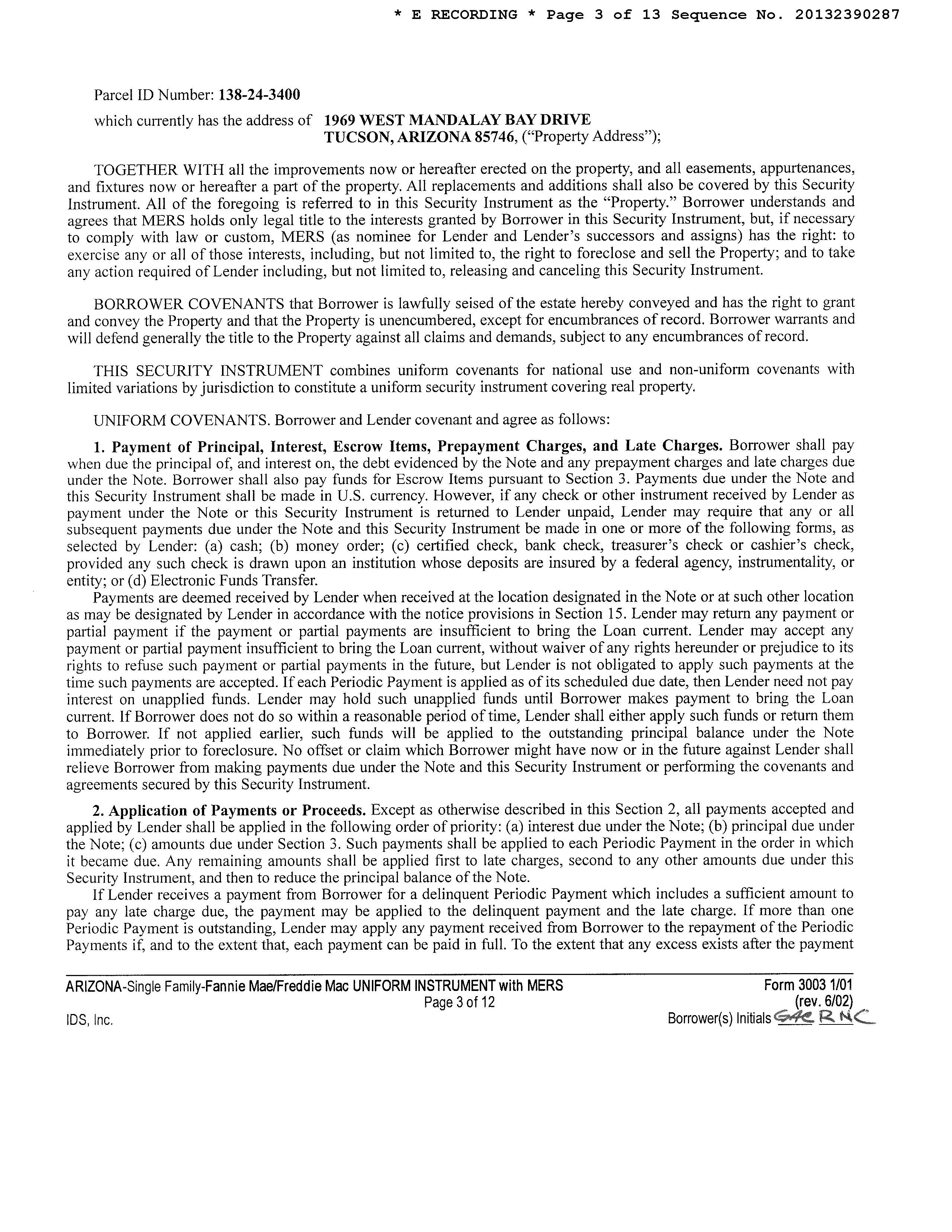 Mailing Address : 1969 W Mandalay Bay Dr, Tucson AZ 85746-6638 C012