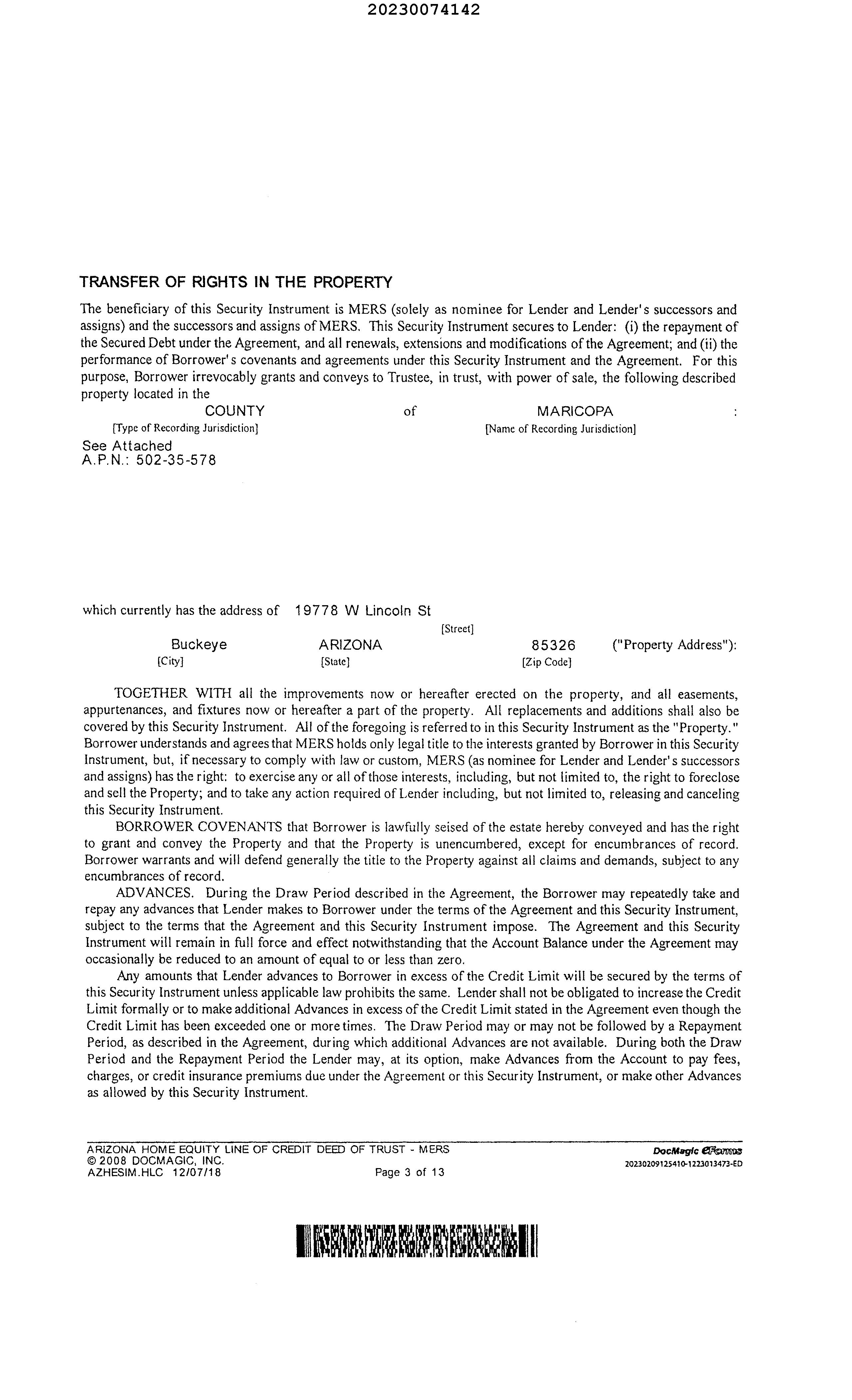 Blt / Eff Yr Blt : 2018 / APN : 502-35-555 19826 W LINCOLN ST