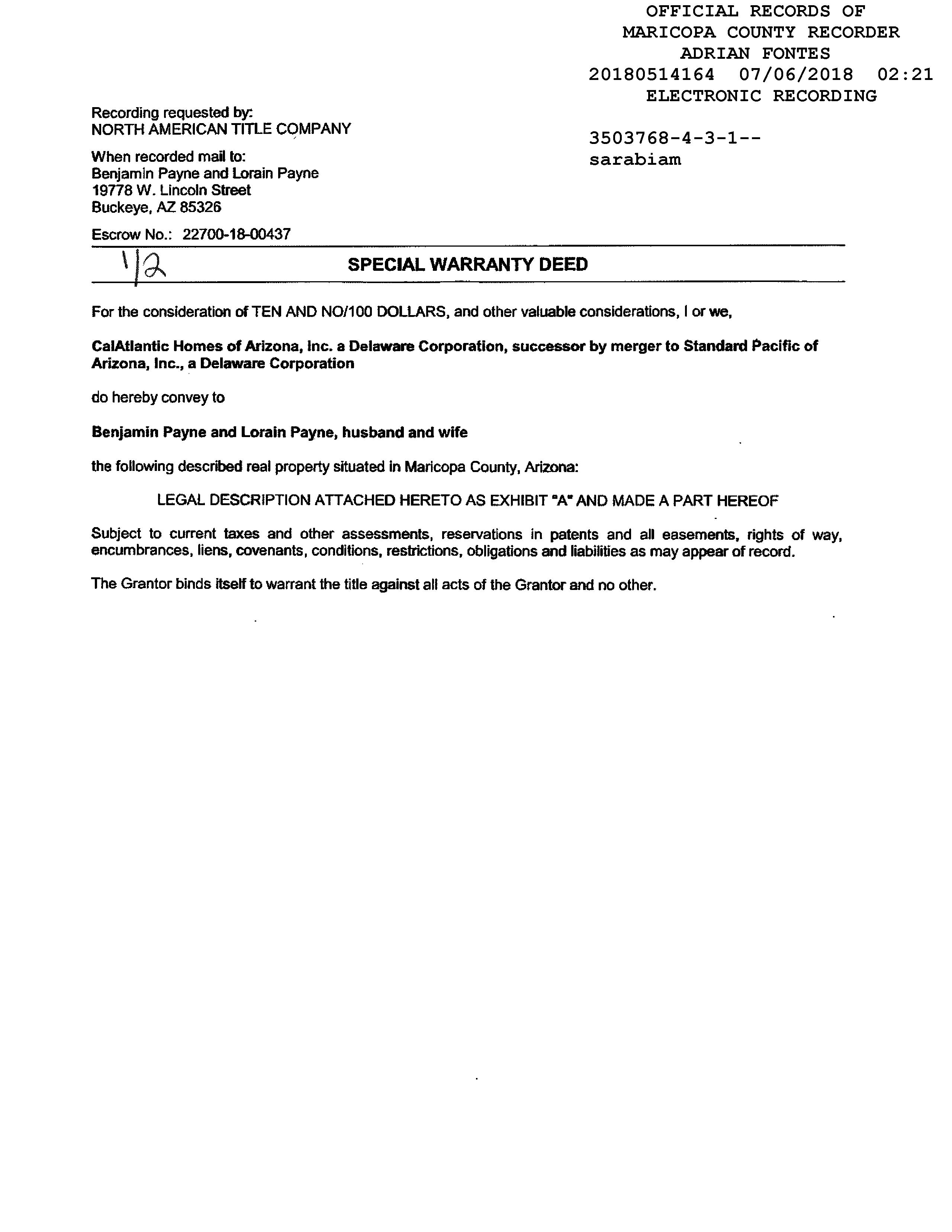 Mailing Address : 19778 W Lincoln St, Buckeye AZ 85326-6672 R037