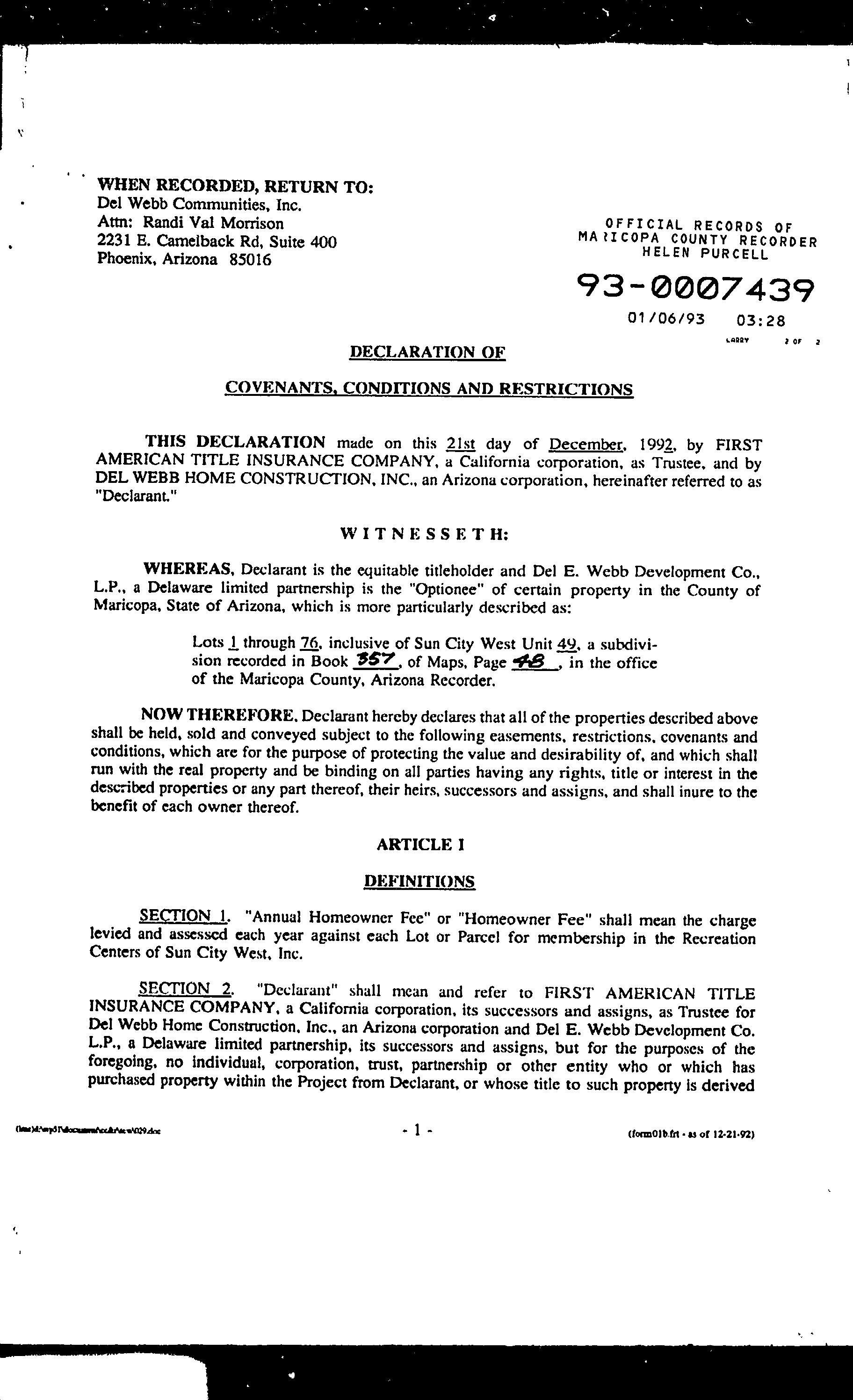 13940 W. Meeker Blvd, #119 Sun City West, AZ 85375 N of Meeker Blvd W of R.H. Johnson