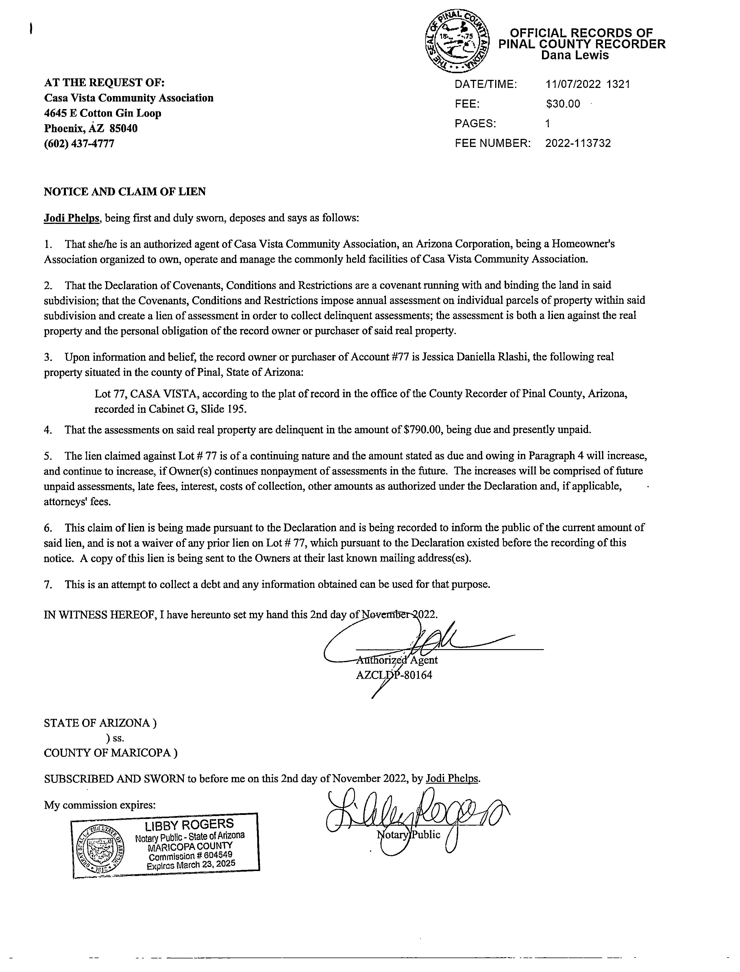 Legal Description : Lot 077 Casa Vista In Sec 02-07s-06e Cab G Sld 195 9414 Sq Ft .22ac