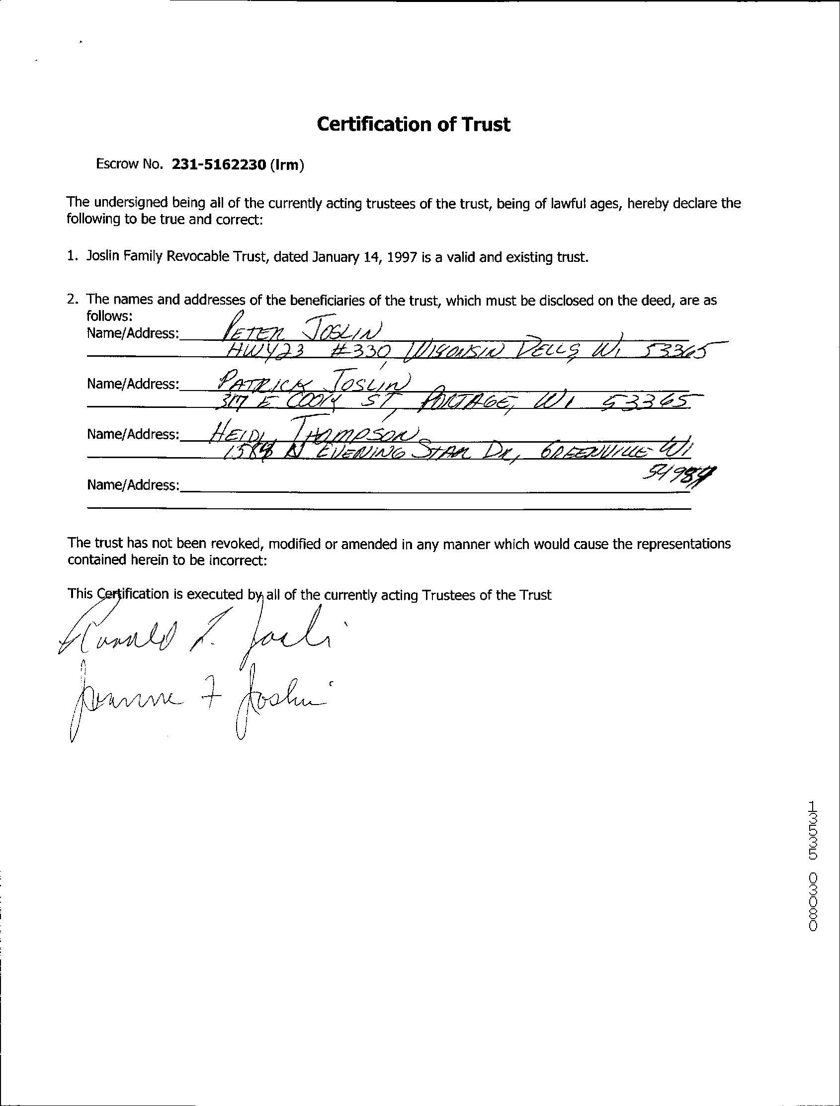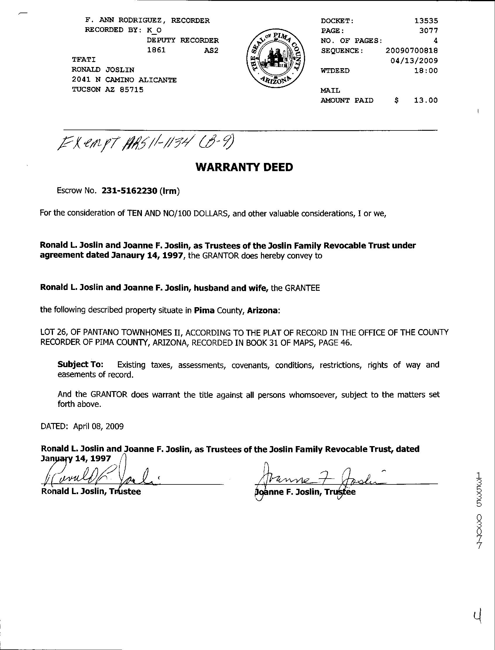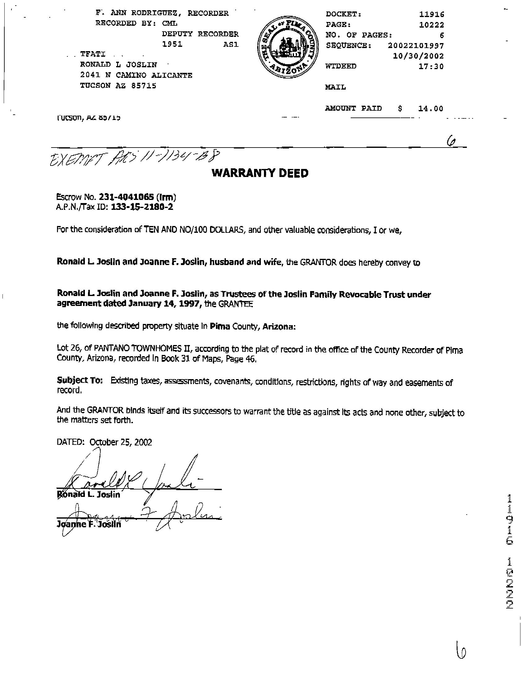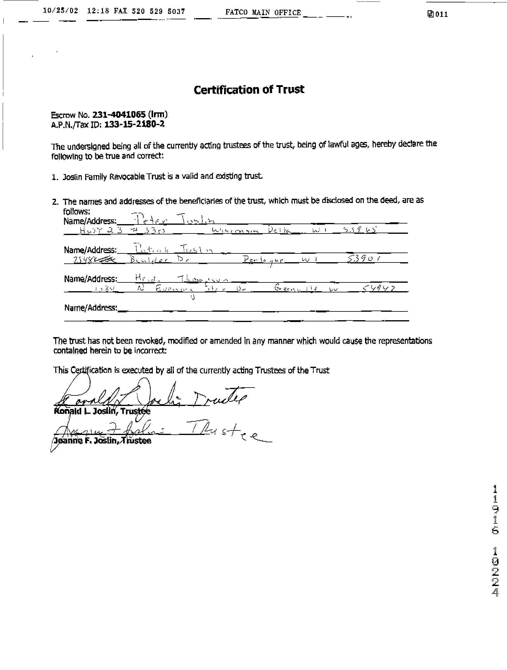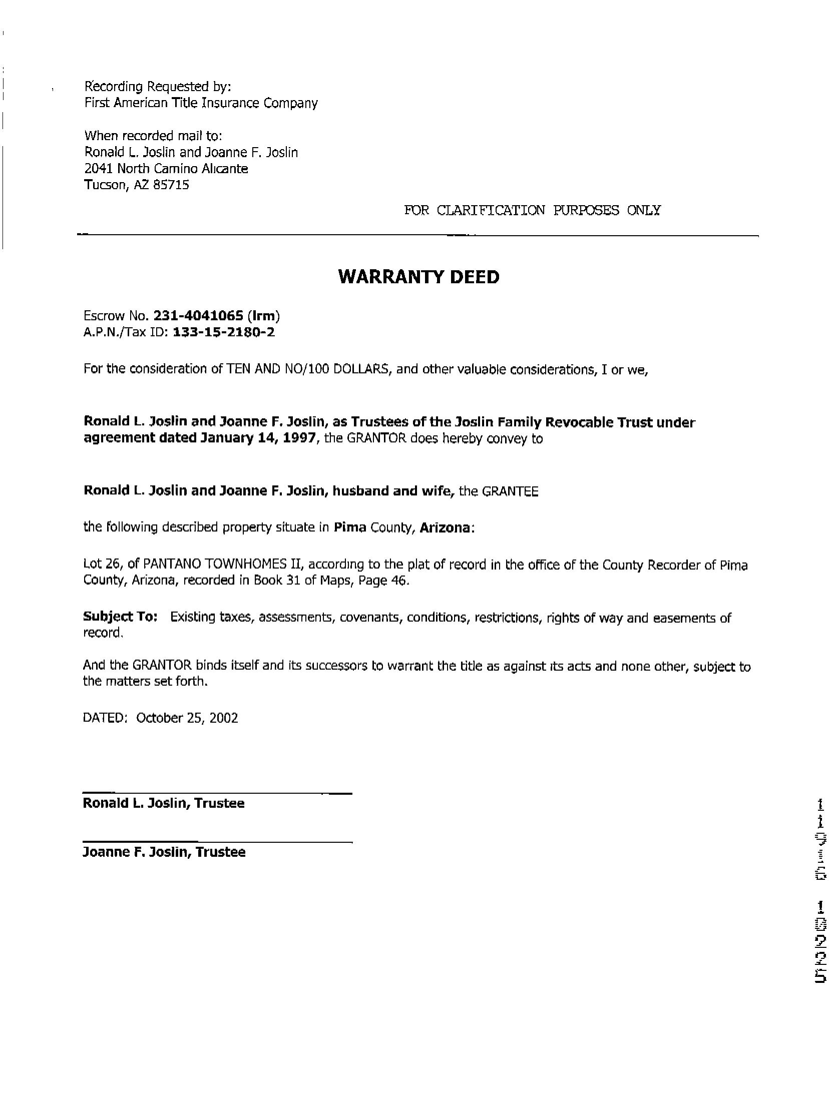 Owner Name: Joslin Ronald L /Joslin Joanne F