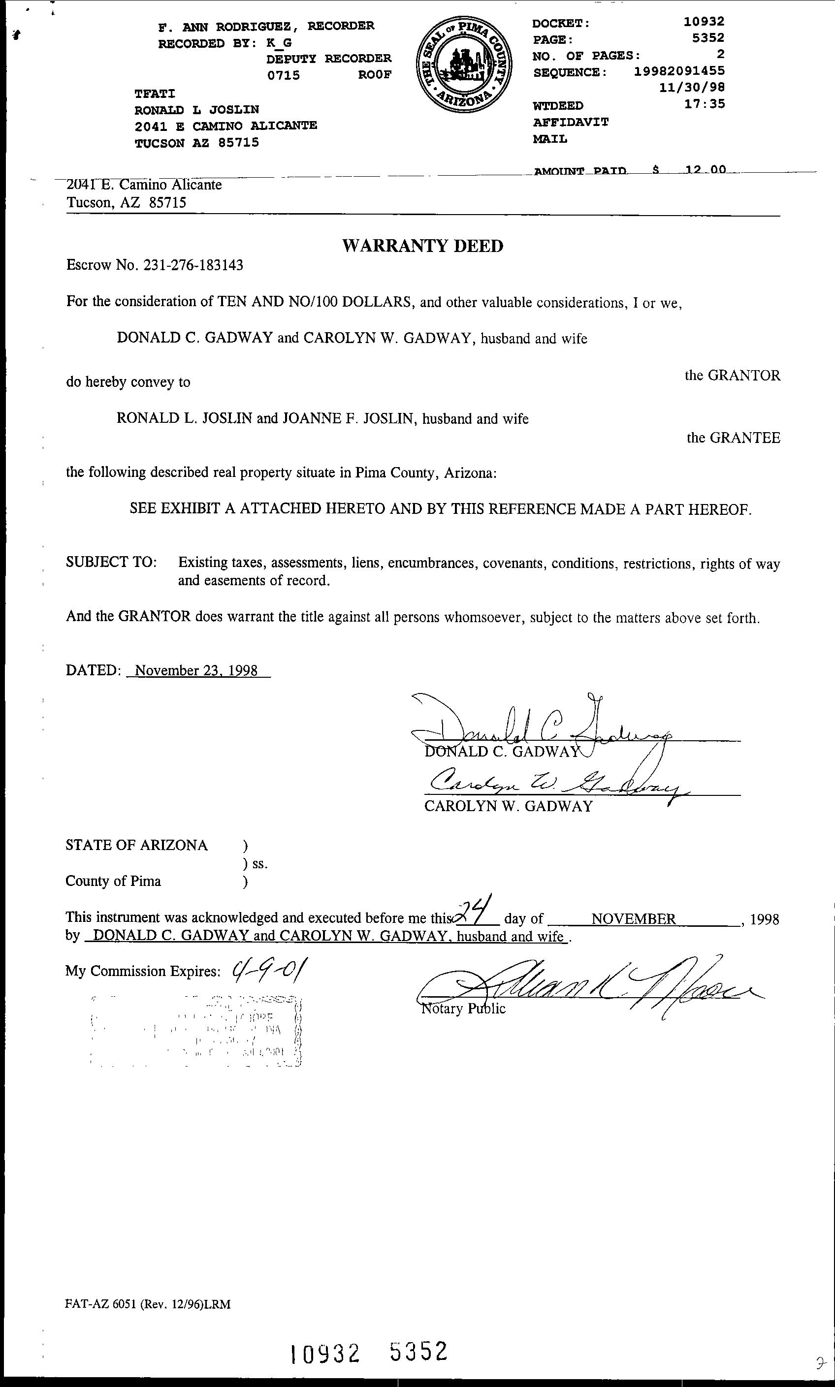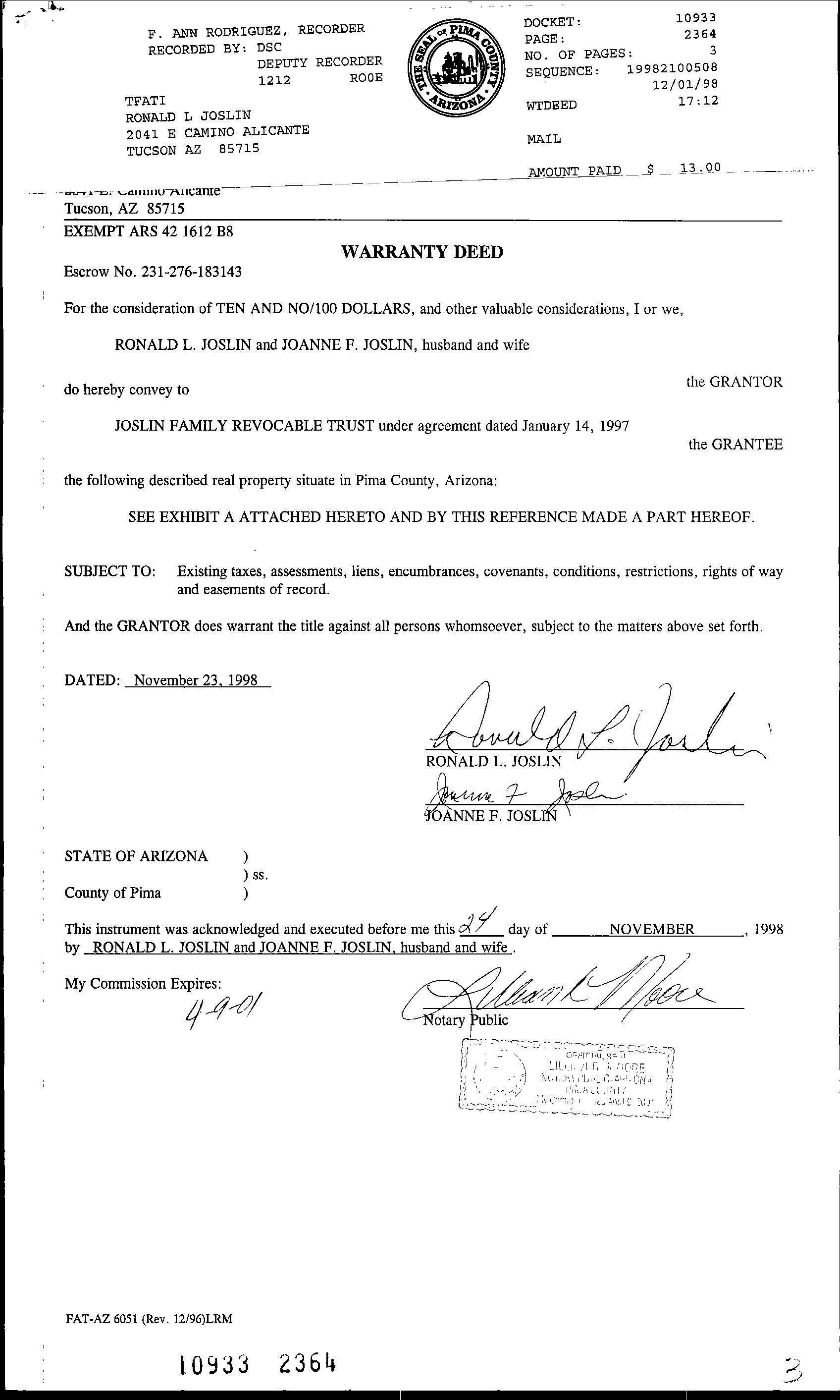 Recording/Sale Date : 11/30/1998 / 11/00/1998