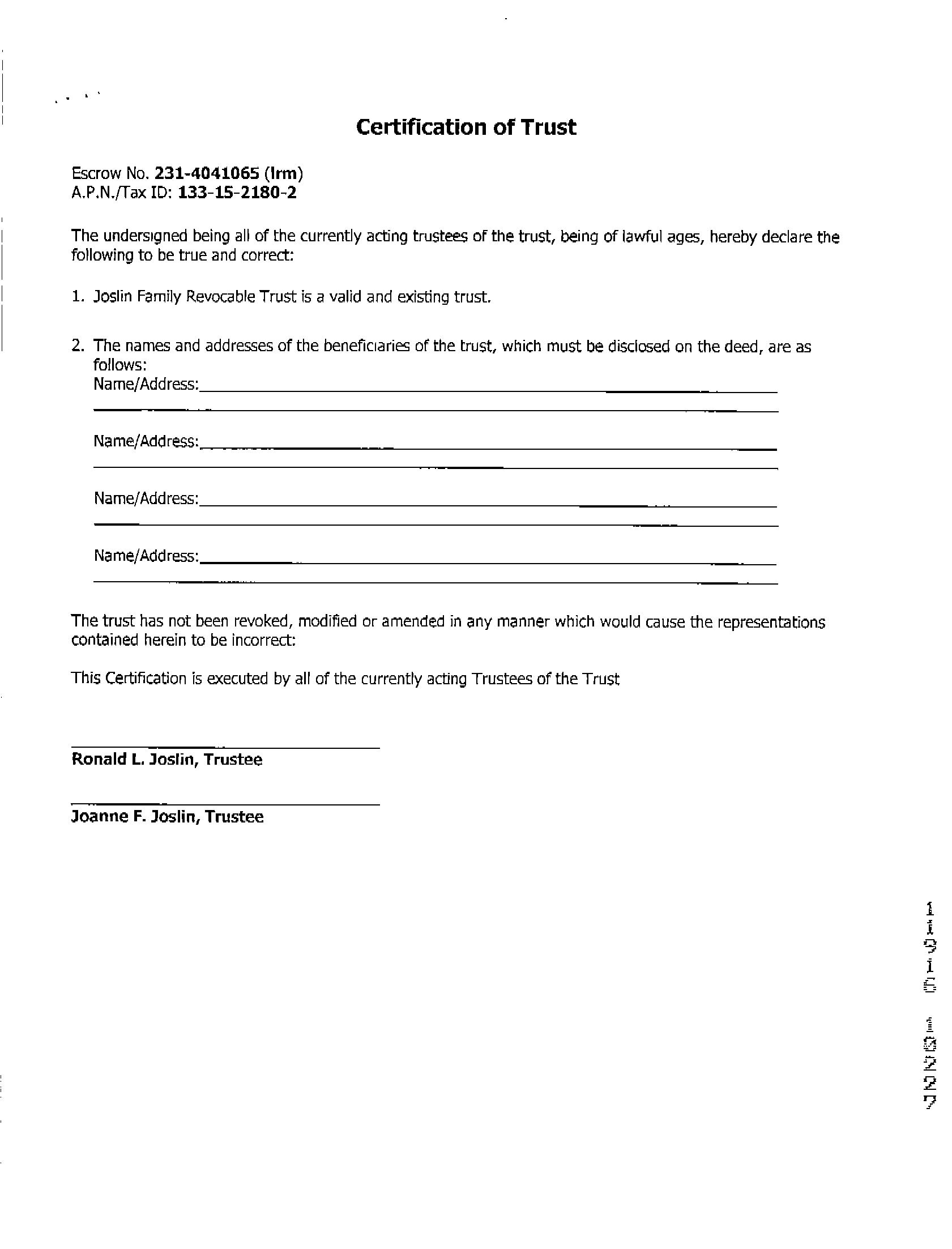 Owner Name : Joslin Ronald L / Joslin Joanne F