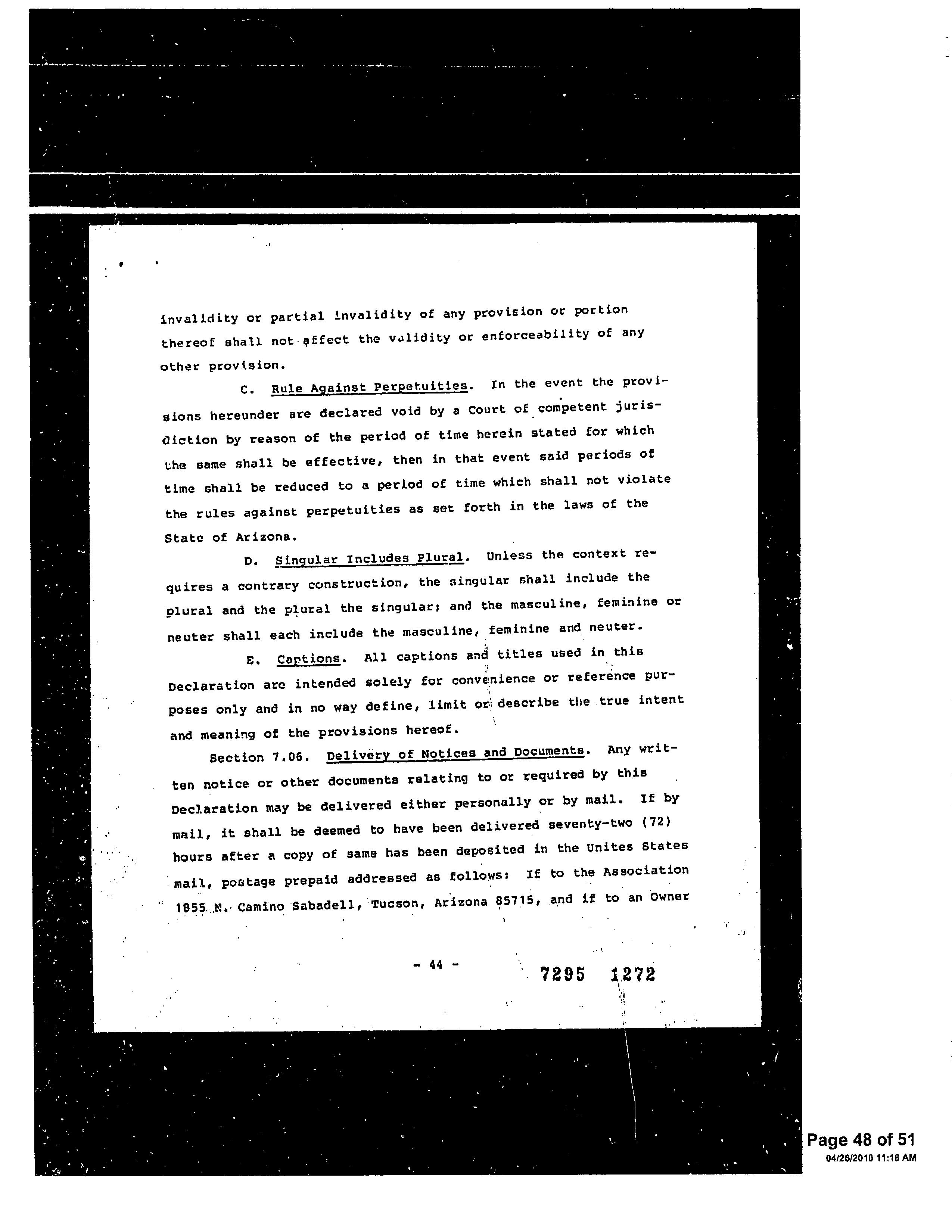 Mailing Address : 2041 N Camino Alicante, Tucson AZ 85715-4110 C060