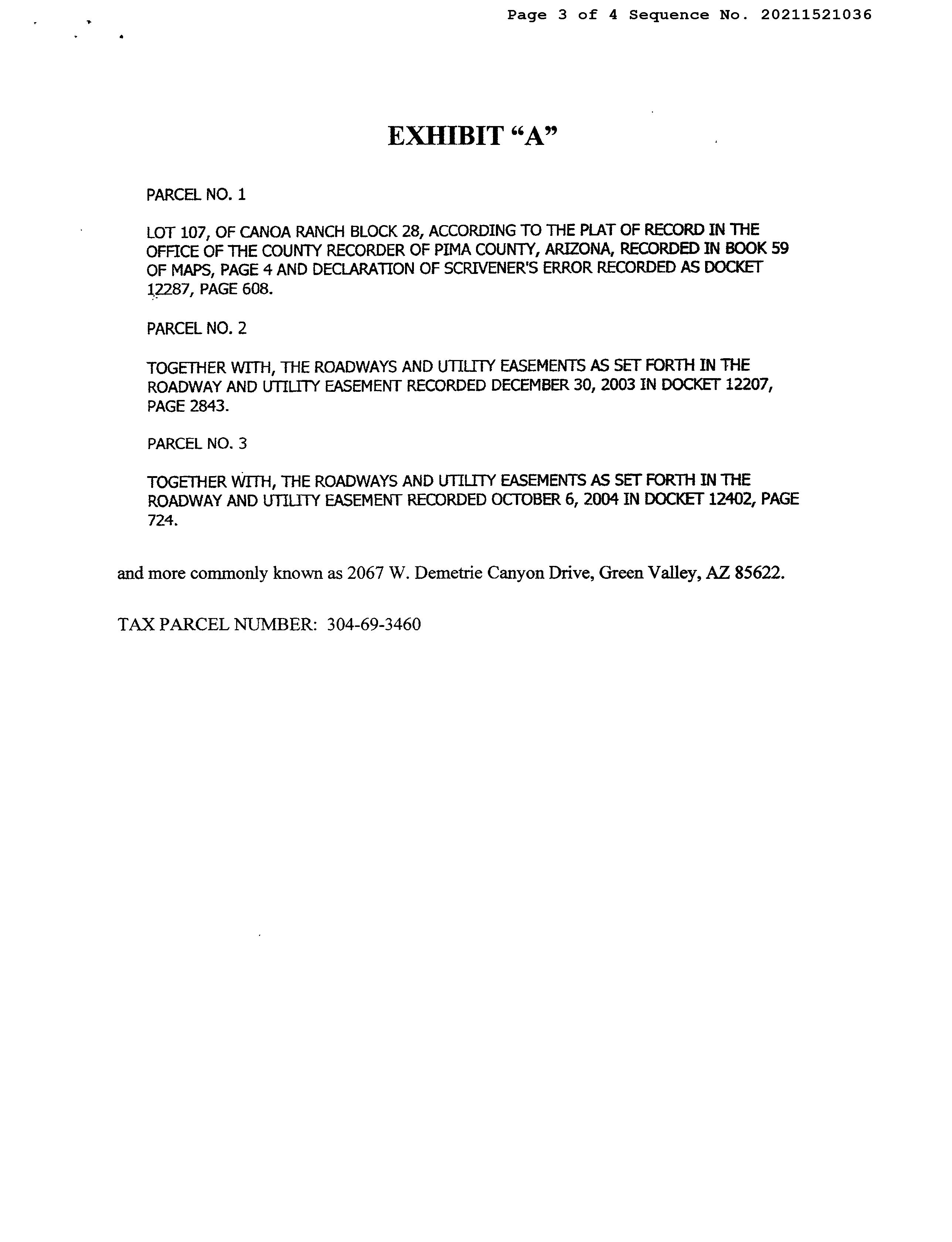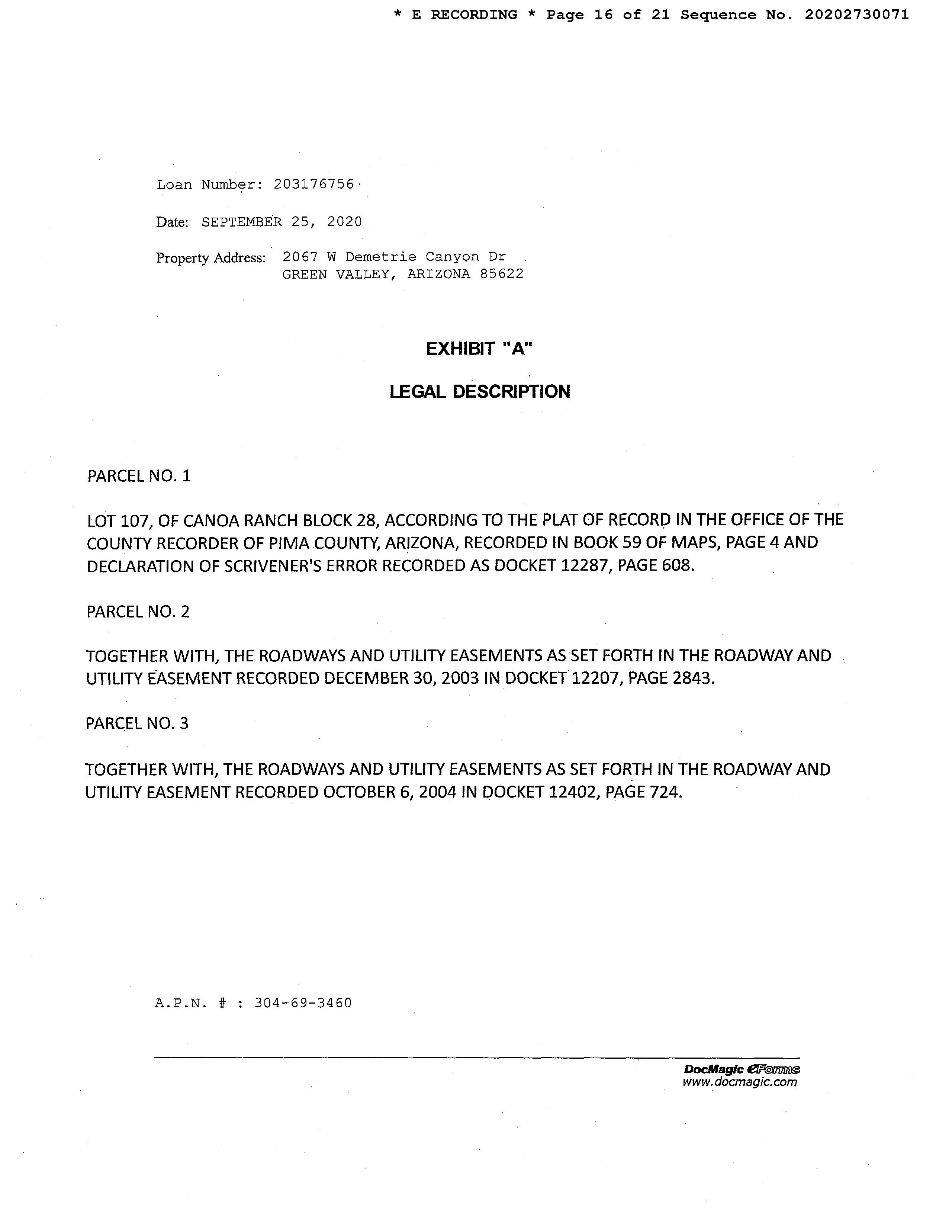 Subject Property : 2067 W Demetrie Canyon Dr Green Valley AZ 85622
