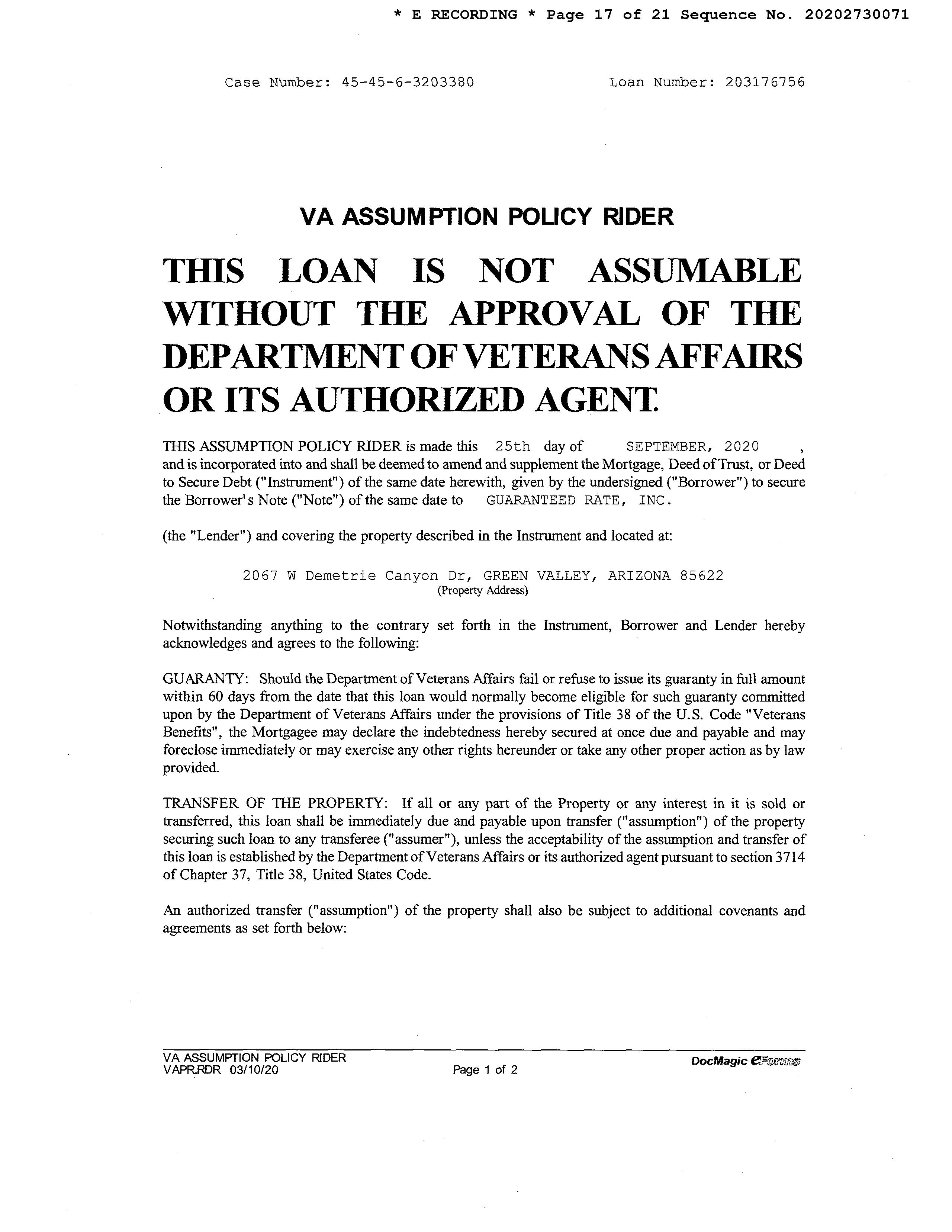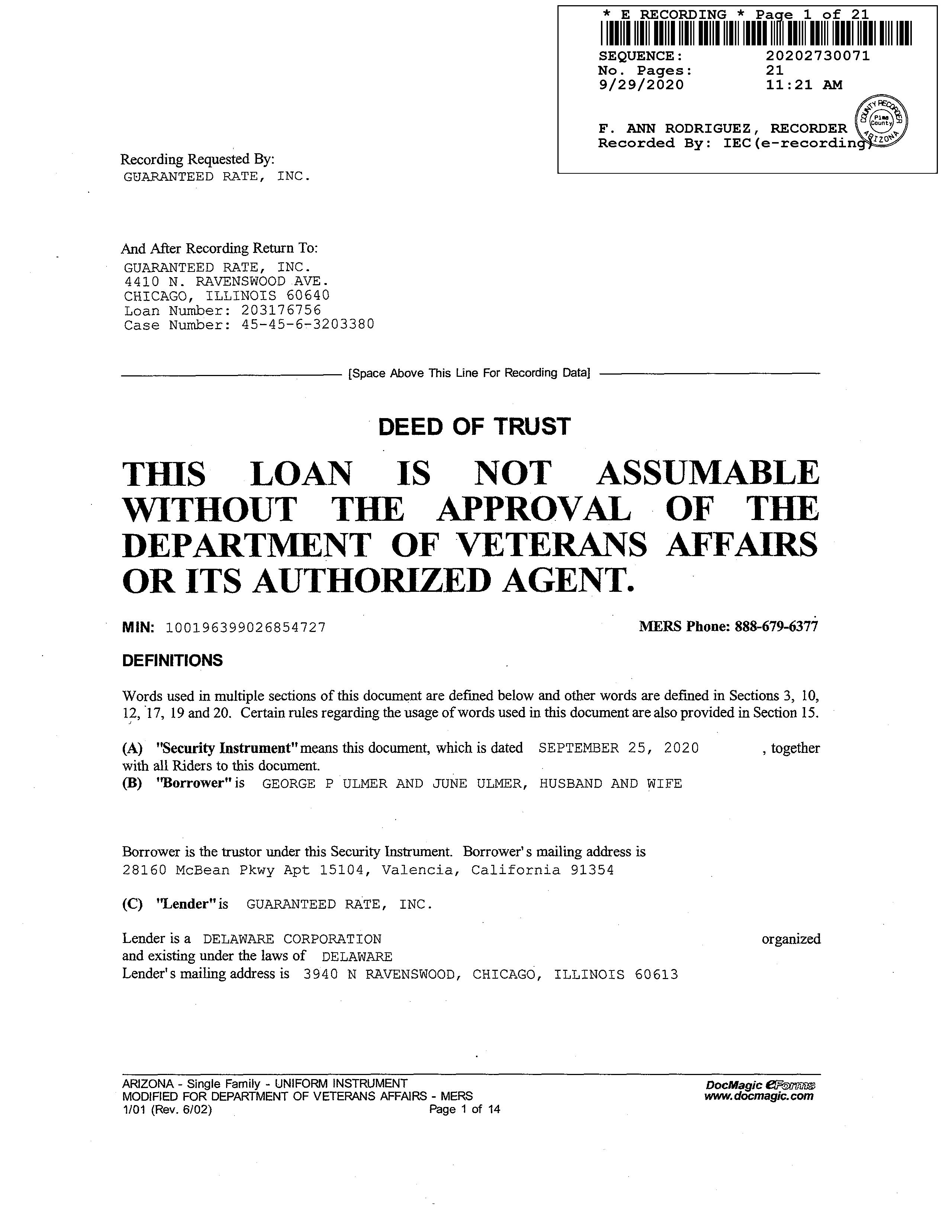 Recording/Sale Date : 09/29/2020 / 09/04/2020 1st Mtg Amount/Type : $247,566 / Va