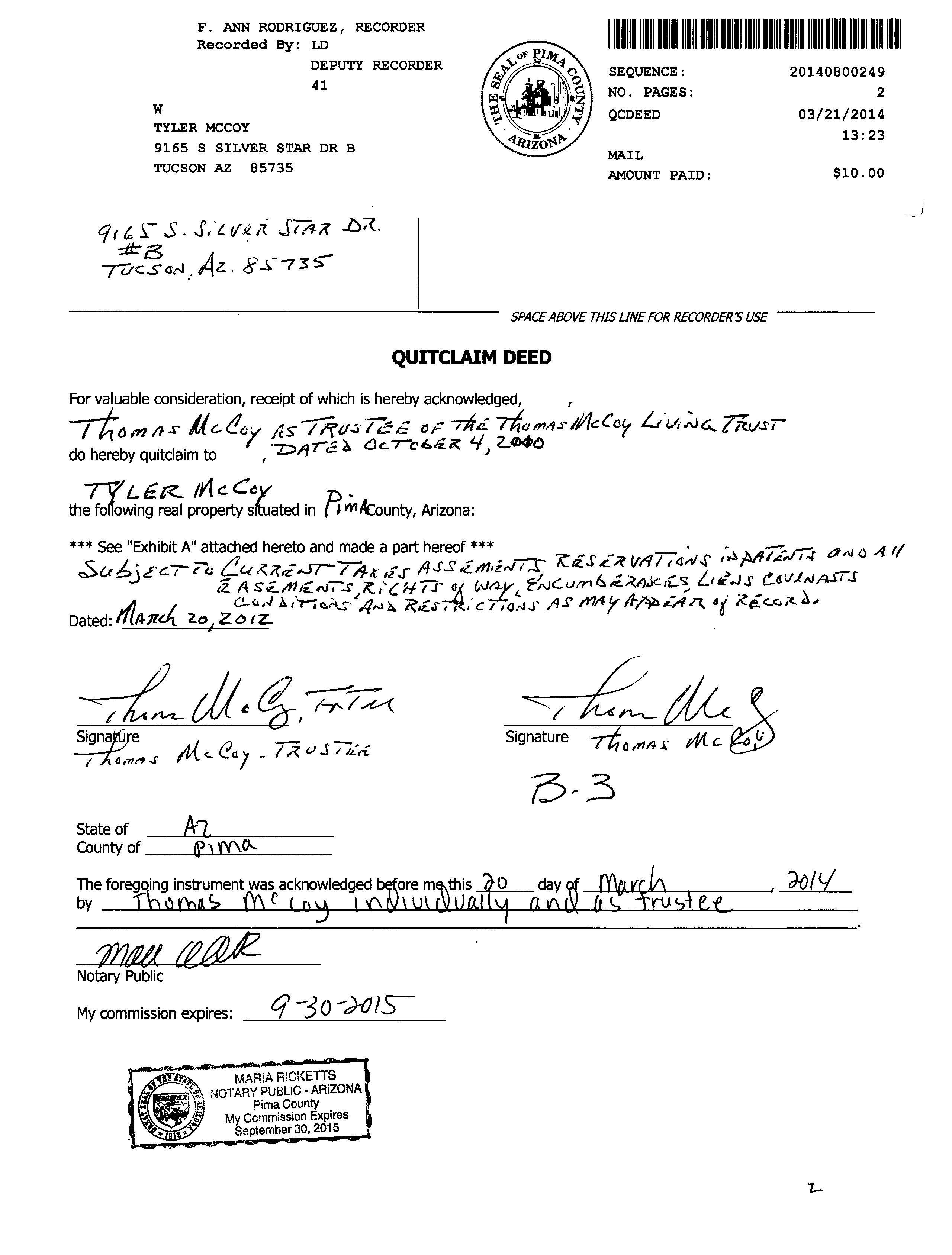 APN / Alternate APN: 208-63-016A / Deed Type: Warranty Deed
