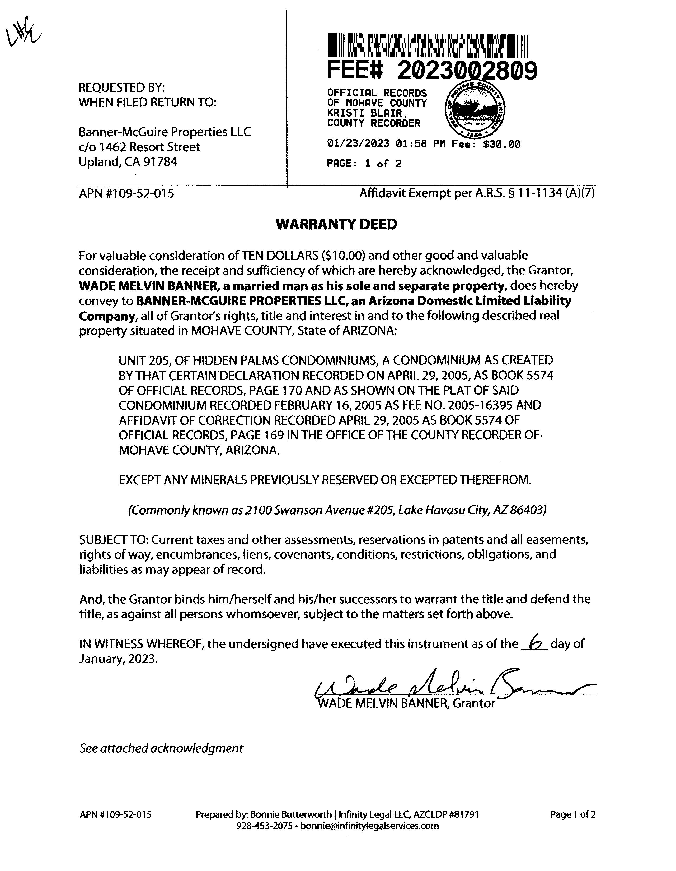 BANNER-MCGUIRE PROPERTIES LLC