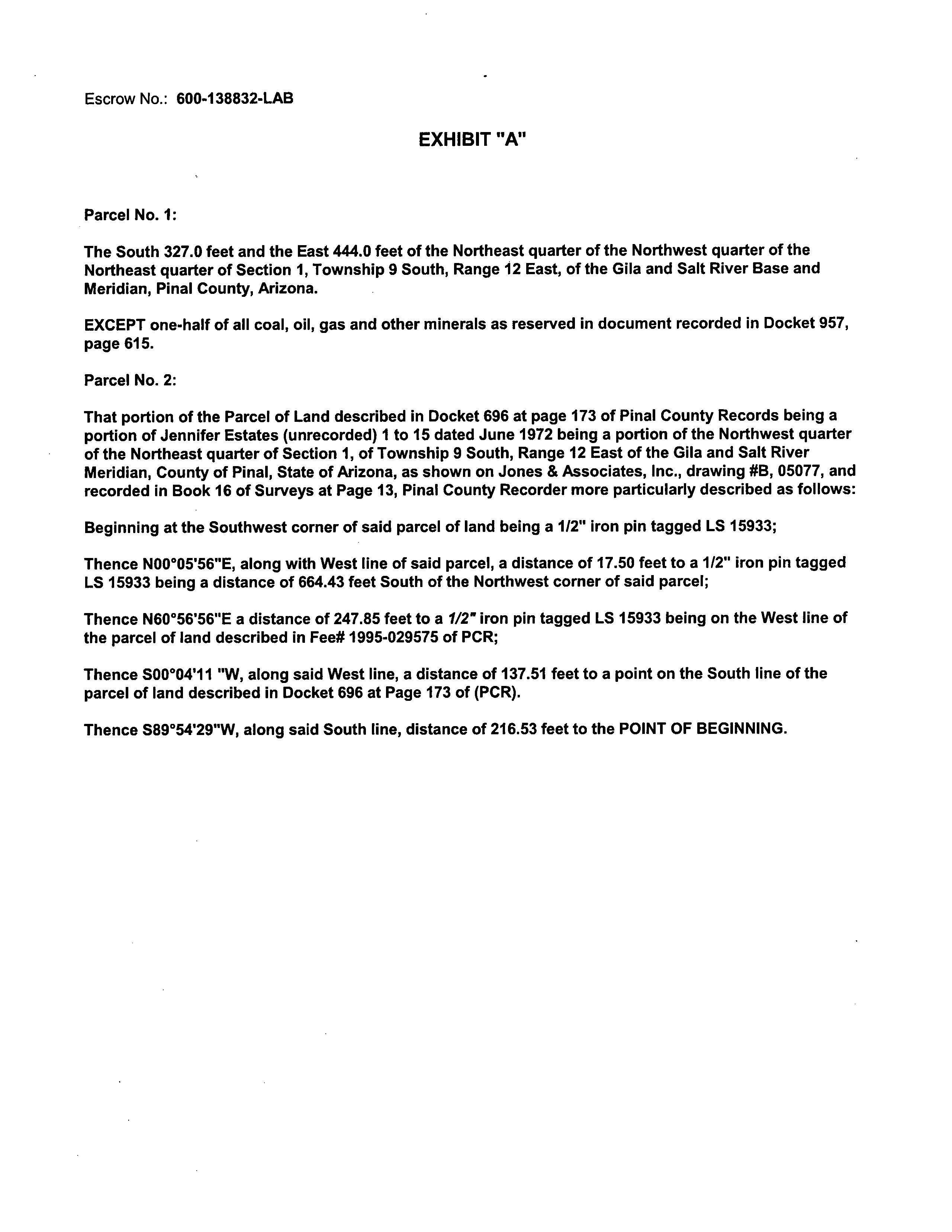 Legal Description : Comm @ N Cor Of Sec 01 9s-12e Th E 1320.28' Th S 355.32' To Pob Th S 327' Th W 660.53' Th N 17.5 Th N60de 247.85' Th N 189.49' The 444' To Pob (aka Par A & That Pot Desc As Not A Part Of Sur Bk16 - Pg 013)