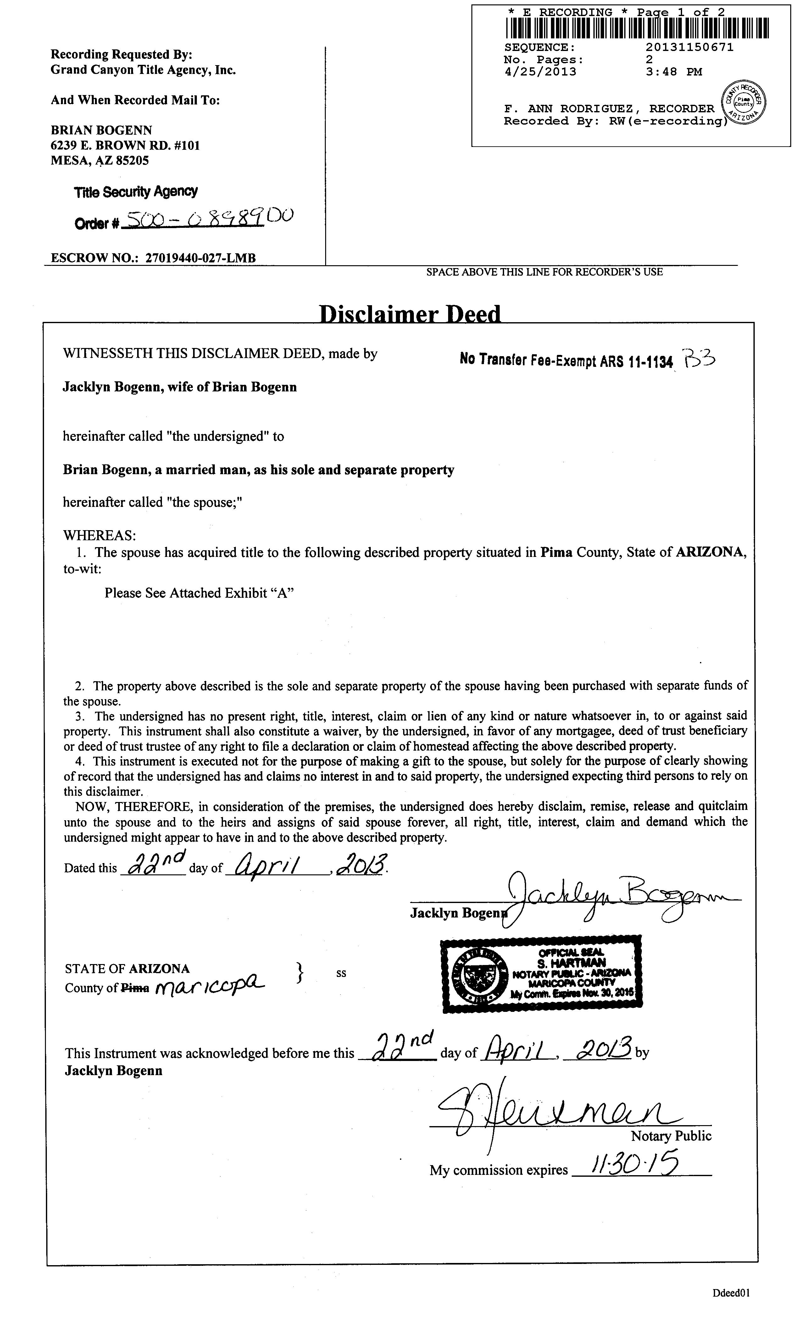 # : 3440278 Title Company : Catalina Title Seller Name : Bogenn Brooke