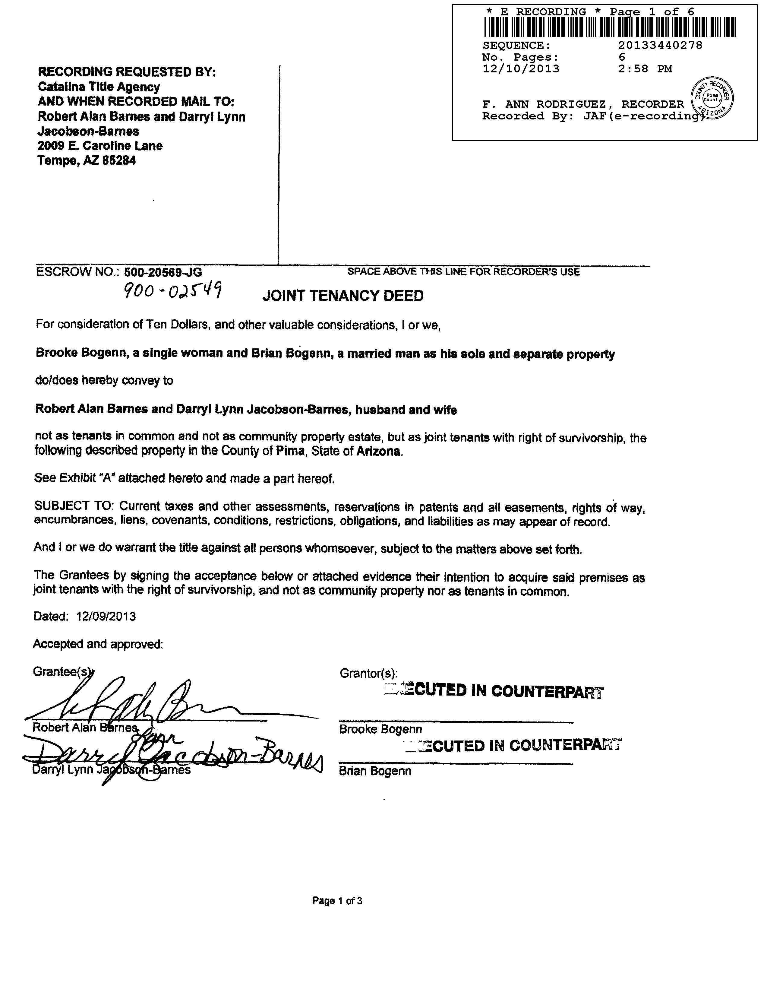# : 3440278 Title Company : Catalina Title Seller Name : Bogenn Brooke