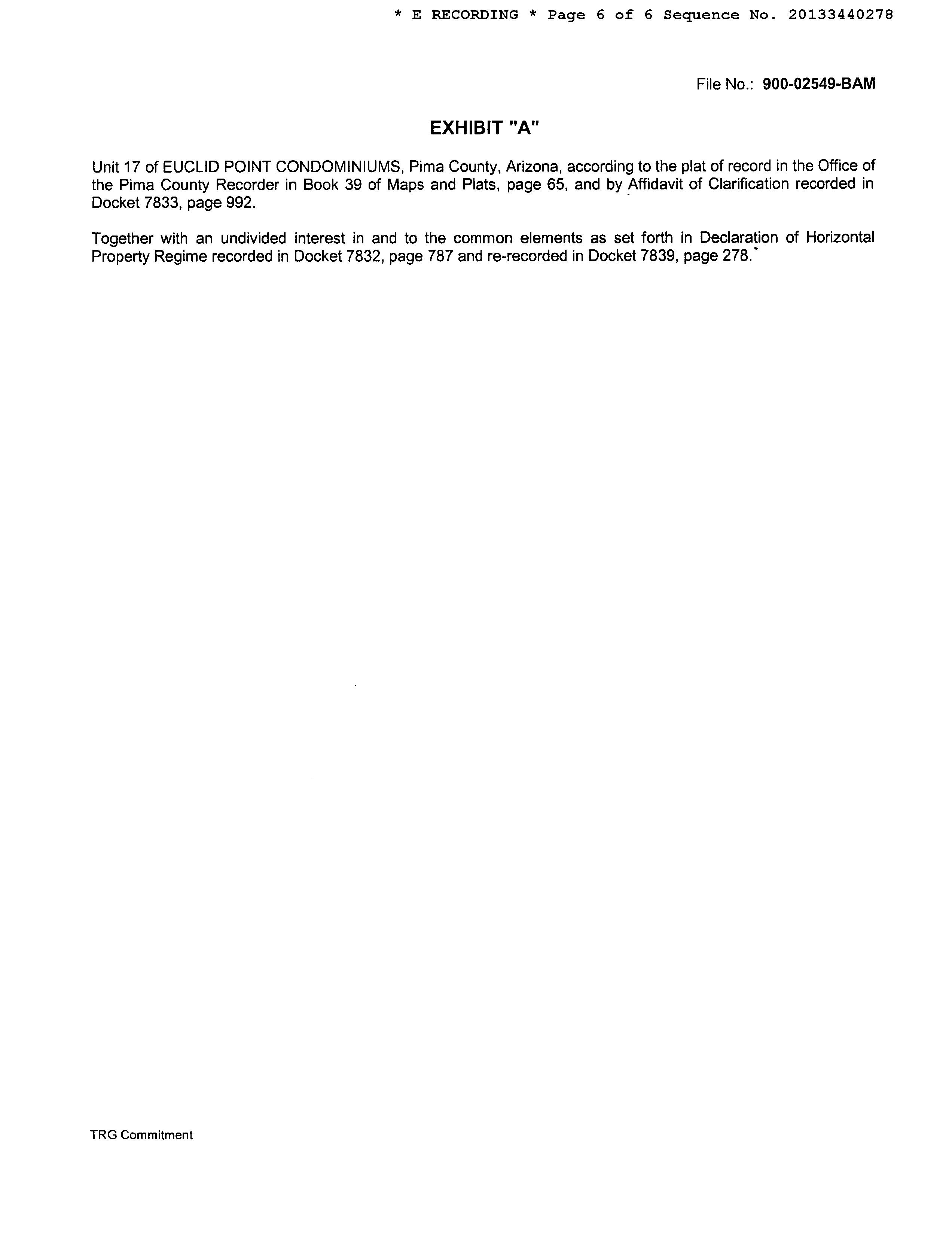 #5 951 N Euclid Ave # 135 Tucson Az 85719 Owner Name: Ahmad Suhail /Qureshi Abida M APN / Alternate APN: 115-04-6770 / Deed Type: Warranty Deed Land Use: Condominium Subdivision / Tract: Costa Del Sol Condos /Lot Size: 544 Year Built / Eff: 1969 / Rec. Date / Price: 05/08/2023 / $265,000 Living Area: 1,086 # of units: Document #: 1280458 Bedrooms: Pool: Total Tax Value: $185,541 Bath(F/H): / #6 941 N Euclid Ave # 125 Tucson Az 85719 Owner Name: Fajardo Nadia H / APN / Alternate APN: 115-04-6670 / Deed Type: Quit Claim Deed Land Use: Condominium Subdivision / Tract: Costa Del Sol Condos /Lot Size: 541 Year Built / Eff: 1969 / Rec. Date / Price: 10/02/2023 / $109,500 Living Area: 1,086 # of units: Document #: 2750002 Bedrooms: Pool: Total Tax Value: $188,582 Bath(F/H): / #7 941 N Euclid Ave # 123 Tucson Az 85719 Owner Name: Sampayo Gustavo / APN / Alternate APN: 115-04-6650 / Deed Type: Warranty Deed Land Use: Condominium Subdivision / Tract: Costa Del Sol Condos /Lot Size: 542 Year Built / Eff: 1969 / Rec. Date / Price: 09/27/2023 / $300,000 Living Area: 1,086 # of units: Document #: 2700576 Bedrooms: Pool: Total Tax Value: $185,541 Bath(F/H): / #8 941 N Euclid Ave # 120 Tucson Az 85719 Owner Name: Chor Lance /Chor Vincent APN / Alternate APN: 115-04-6620 / Deed Type: Warranty Deed Land Use: Condominium Subdivision / Tract: Costa Del Sol Condos /Lot Size: 544 Year Built / Eff: 1969 / Rec. Date / Price: 06/15/2023 / $266,500 Living Area: 1,086 # of units: Document #: 1660115 Bedrooms: Pool: Total Tax Value: $188,582 Bath(F/H): / #9 921 N Euclid Ave # 215 Tucson Az 85719 Owner Name: Borovitz Jeffrey /Molin Mollie APN / Alternate APN: 115-04-7010 / Deed Type: Warranty Deed Land Use: Condominium Subdivision / Tract: Costa Del Sol Condos /Lot Size: 543 Year Built / Eff: 1969 / Rec. Date / Price: 07/24/2023 / $298,000 Living Area: 1,086 # of units: Document #: 2050101 Bedrooms: Pool: Total Tax Value: $188,582 Bath(F/H): / #10 921 N Euclid Ave # 117 Tucson Az 85719 Owner Name: Mathews Jefferey G /Mathews Jefferey G & Nicole APN / Alternate APN: 115-04-6590 / Deed Type: Warranty Deed Land Use: Condominium Subdivision / Tract: Costa Del Sol Condos /Lot Size: 545 Year Built / Eff: 1969 / Rec. Date / Price: 05/12/2023 / $295,000 Living Area: 1,086 # of units: Document #: 1320361 Bedrooms: Pool: Total Tax Value: $188,582 Bath(F/H): / Customer Name : Lisa Mrazek Customer Company Name : First American Title Insurance Company Prepared On : 04/24/2024 © 2024 CoreLogic. All rights reserved