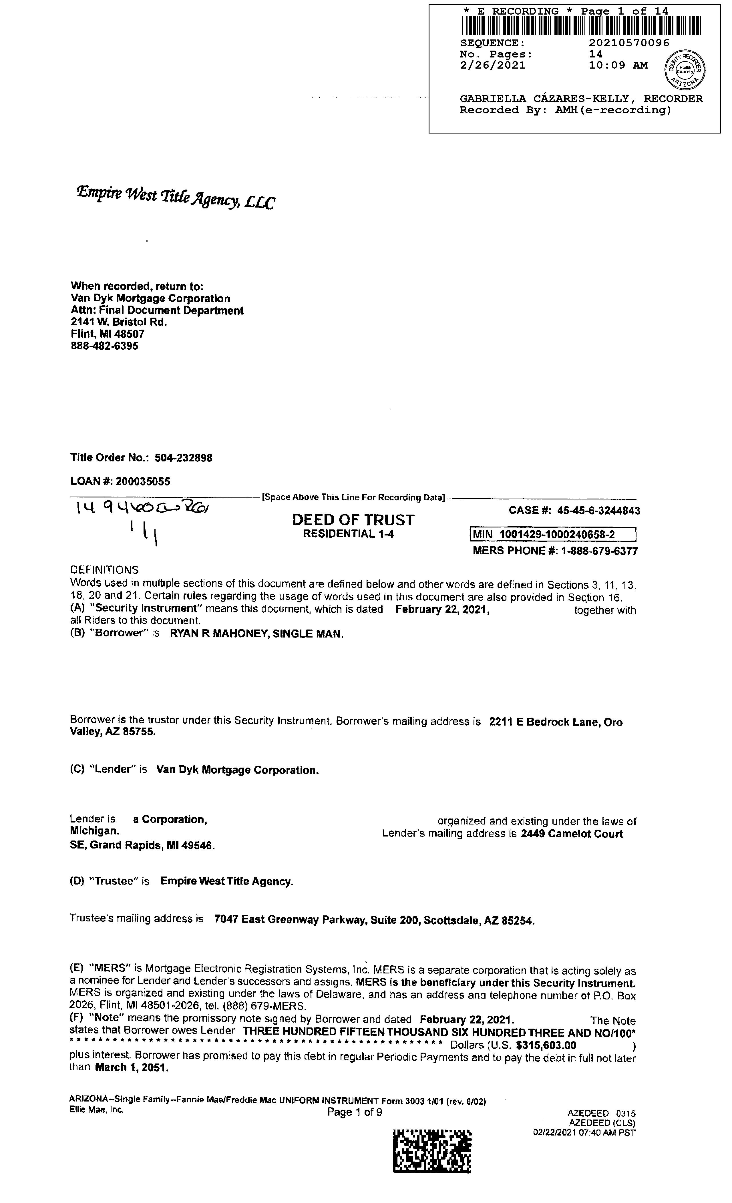 Recording/Sale Date : 05/18/2020 / 05/13/2020 1st Mtg Amount/Type : $312,015 / Va