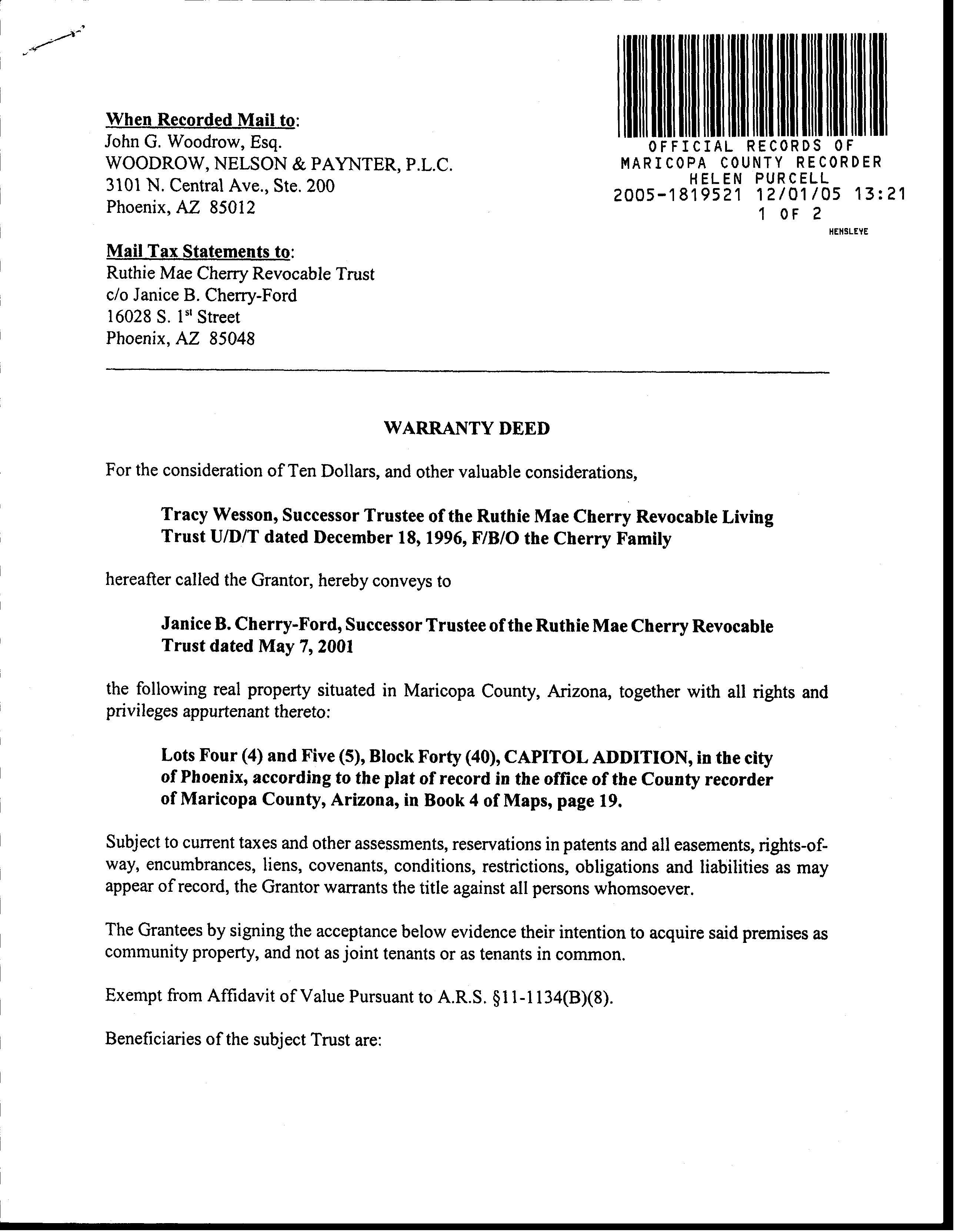 OWNER: CHERRY RUTHIE MAE TR 2005 1819521 12/01/2005