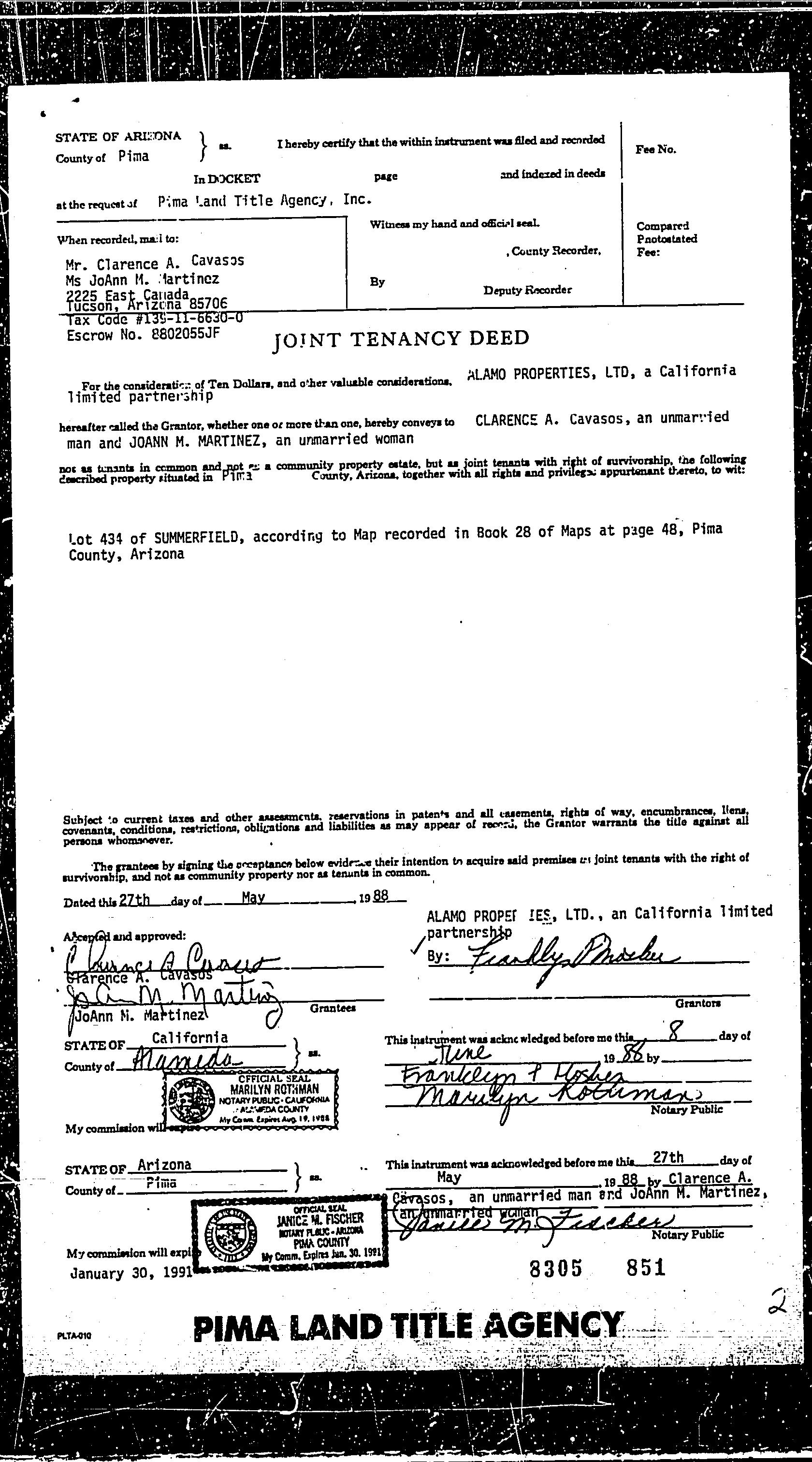 Mailing Address : 2225 E Canada St, Tucson AZ 85706-3405 C013