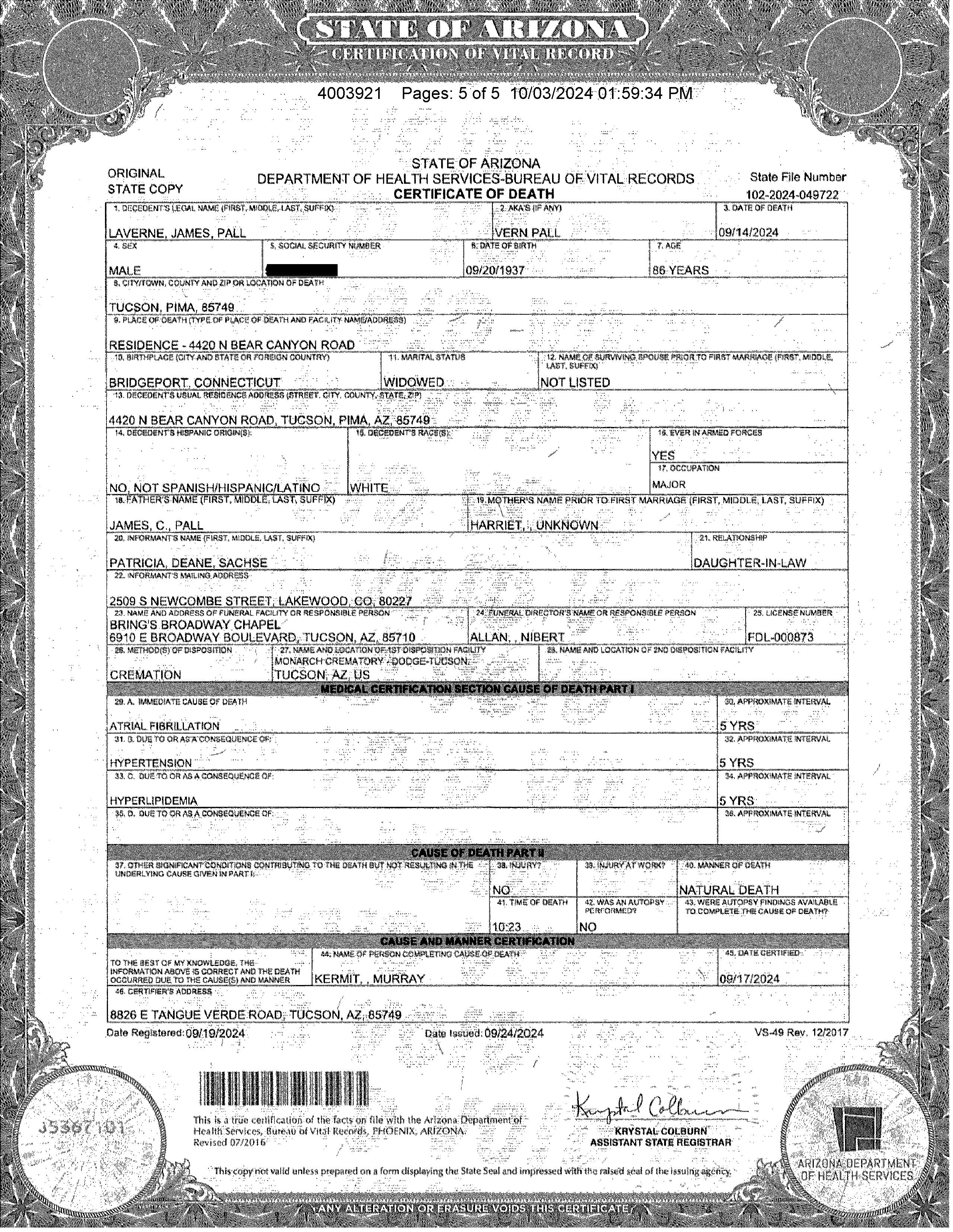 Owner Name : Pall Vern / Pall Jane