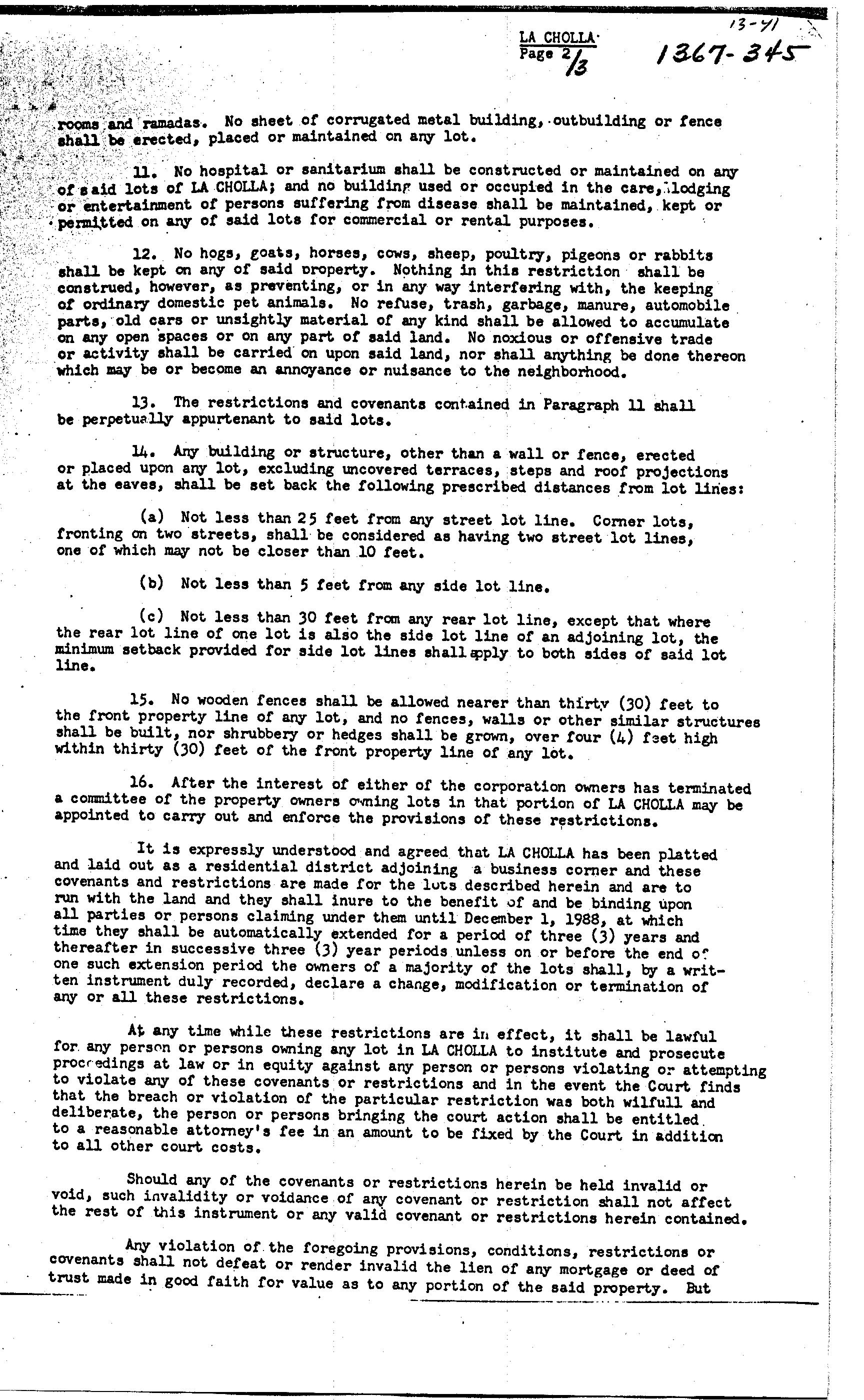 16. After the interest of either of the corporation owners has terminated a committee of the property owners owning lots in that portion of LA CHOLLA may be appointed to carry out and enforce the provisions of these restrictions.
