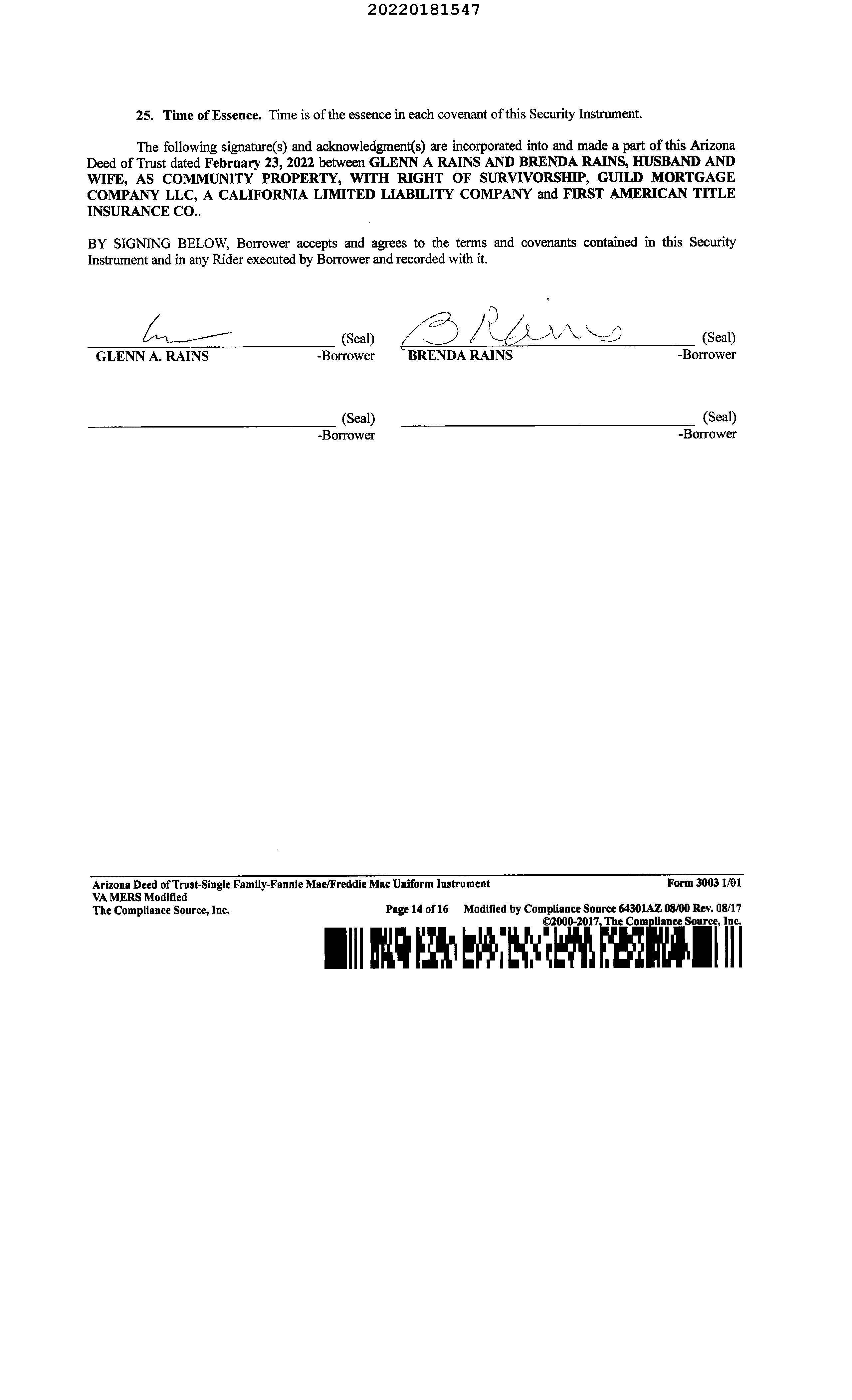 Subject Property: 2243 W Firethorn Way Anthem Az 85086 Owner Name: Rains Glenn A /Rains Brenda