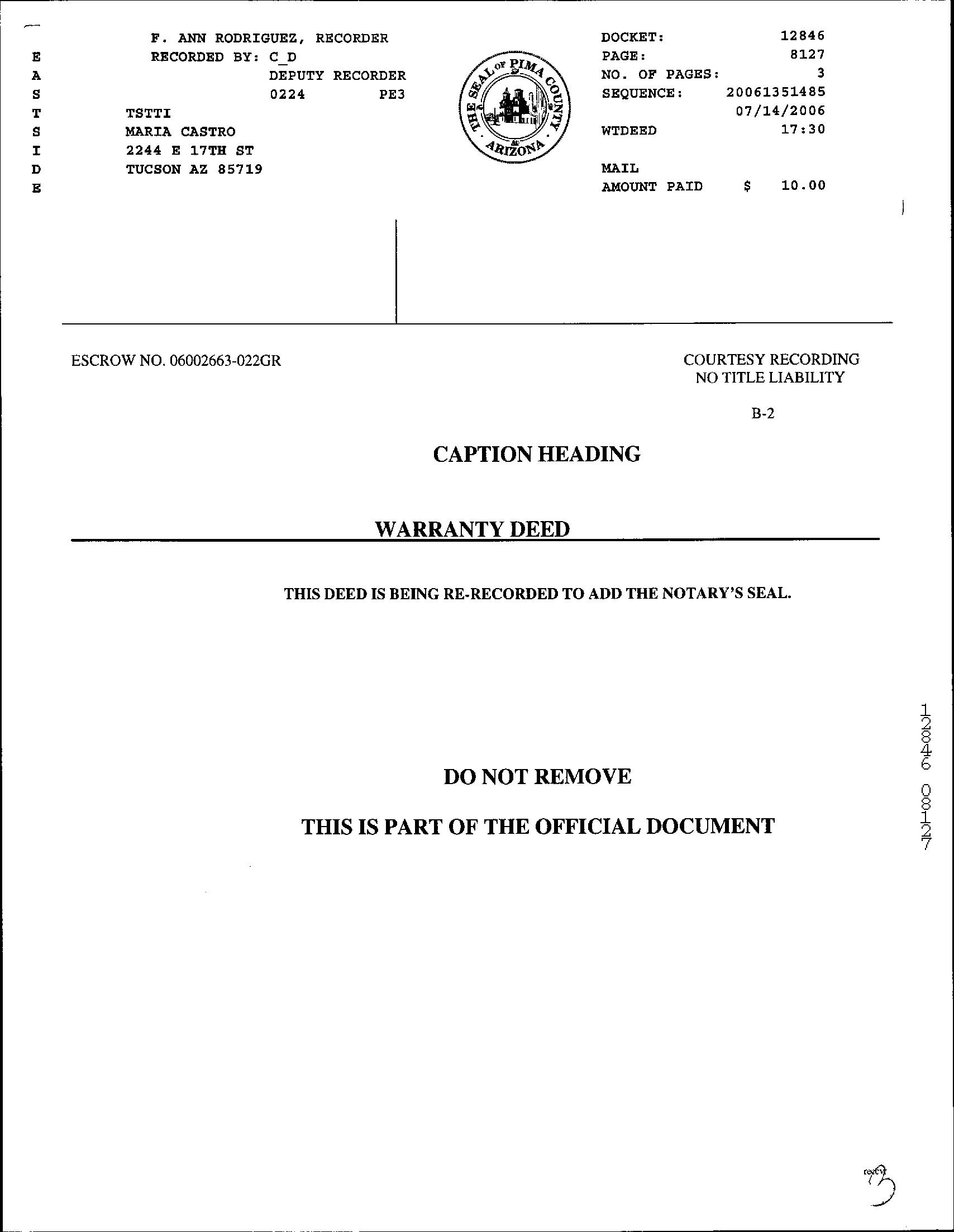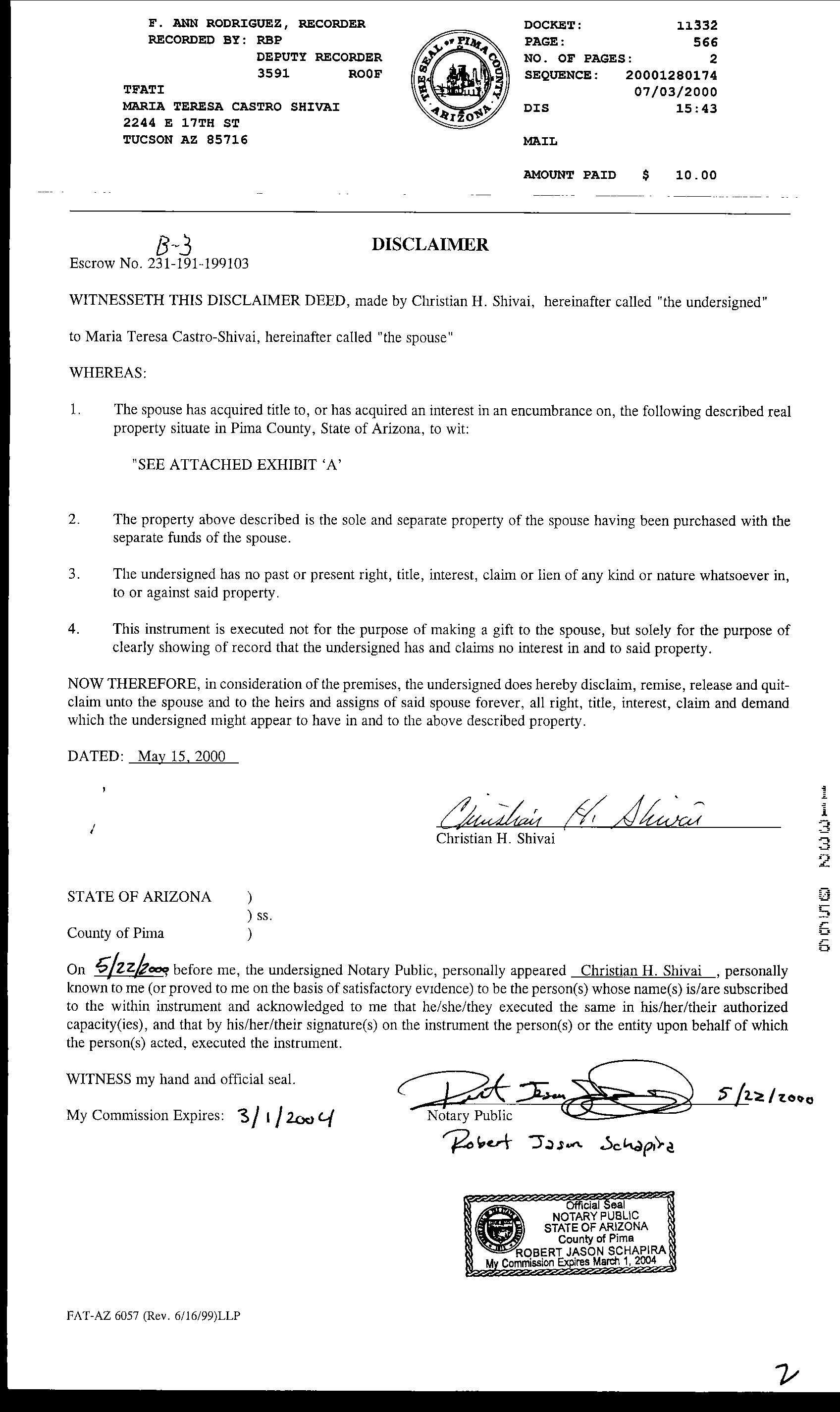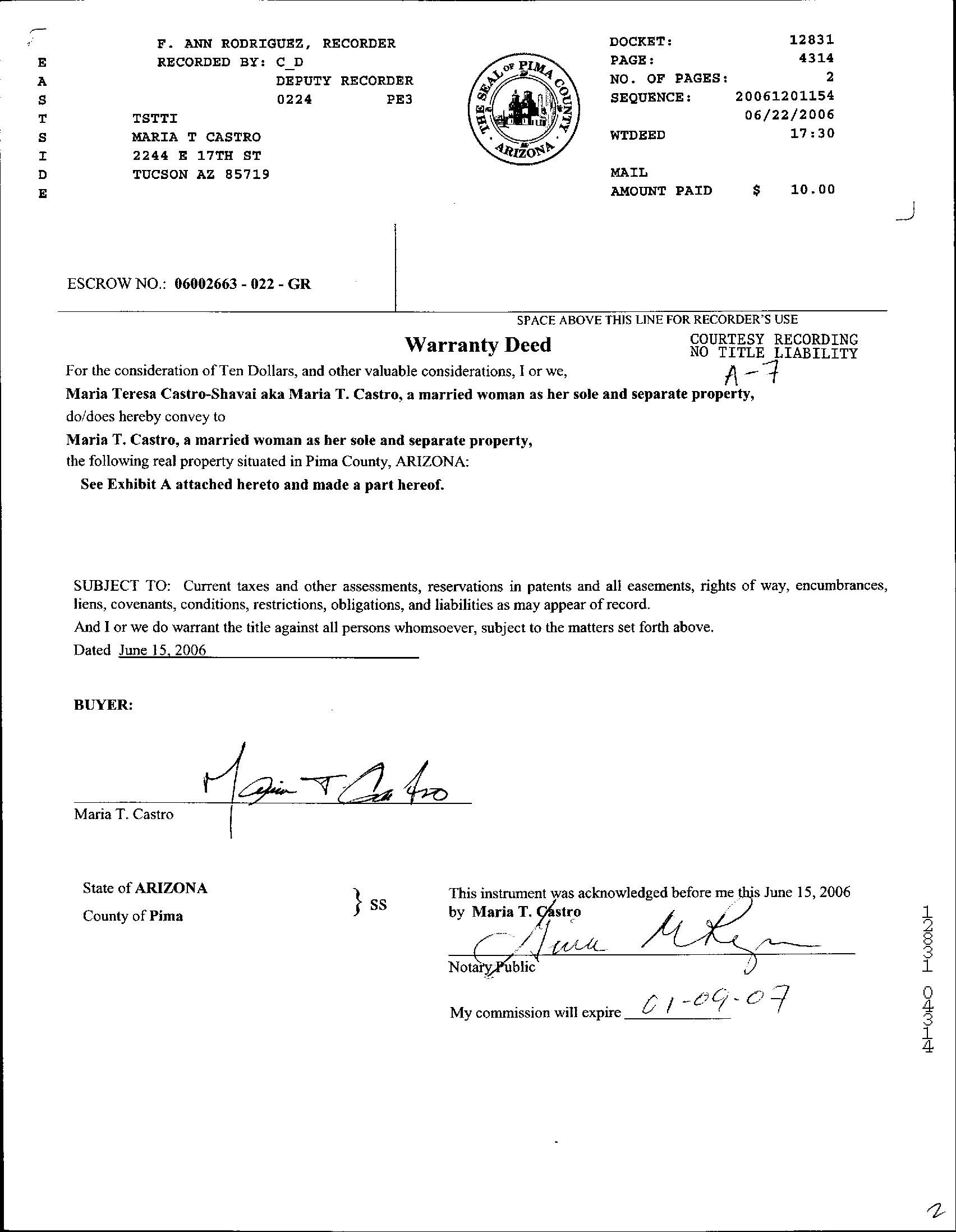 This report is not an insured product or service or a representation of the condition of title to real property. It is not an abstract, legal opinion, opinion of title, title insurance commitment or preliminary report, or any form of Title Insurance or Guaranty. This report is issued exclusively for the benefit of the Applicant therefor and may not be used or relied upon by any other person. This report may not be reproduced in any manner without First Americans prior written consent. First American does not represent or warrant that the information herein is complete or free from error, and the information herein is provided without any warranties of any kind, as-is, and with all faults. As a material part of the consideration given in exchange for the issuance of this report, recipient agrees that First Americans sole liability for any loss or damage caused by an error or omission due to inaccurate information or negligence in preparing this report shall be limited to the fee charged for the report. Recipient accepts this report with this limitation and agrees that First American would not have issued this report but for the limitation of liability described above. First American makes no representation or warranty as to the legality or propriety of recipient's use of the information herein.