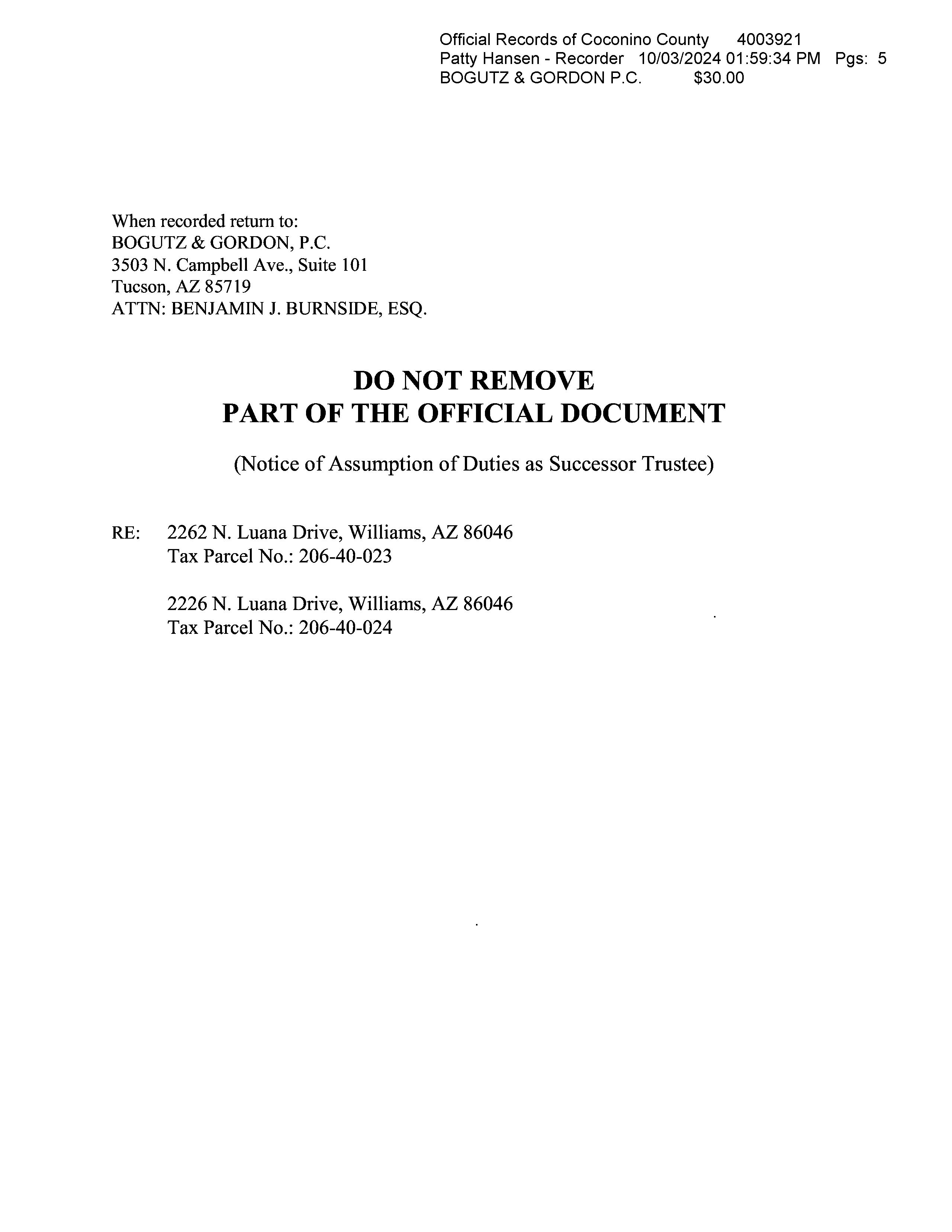 Owner Name: Placencia Luis A /Gastelum Magda C B