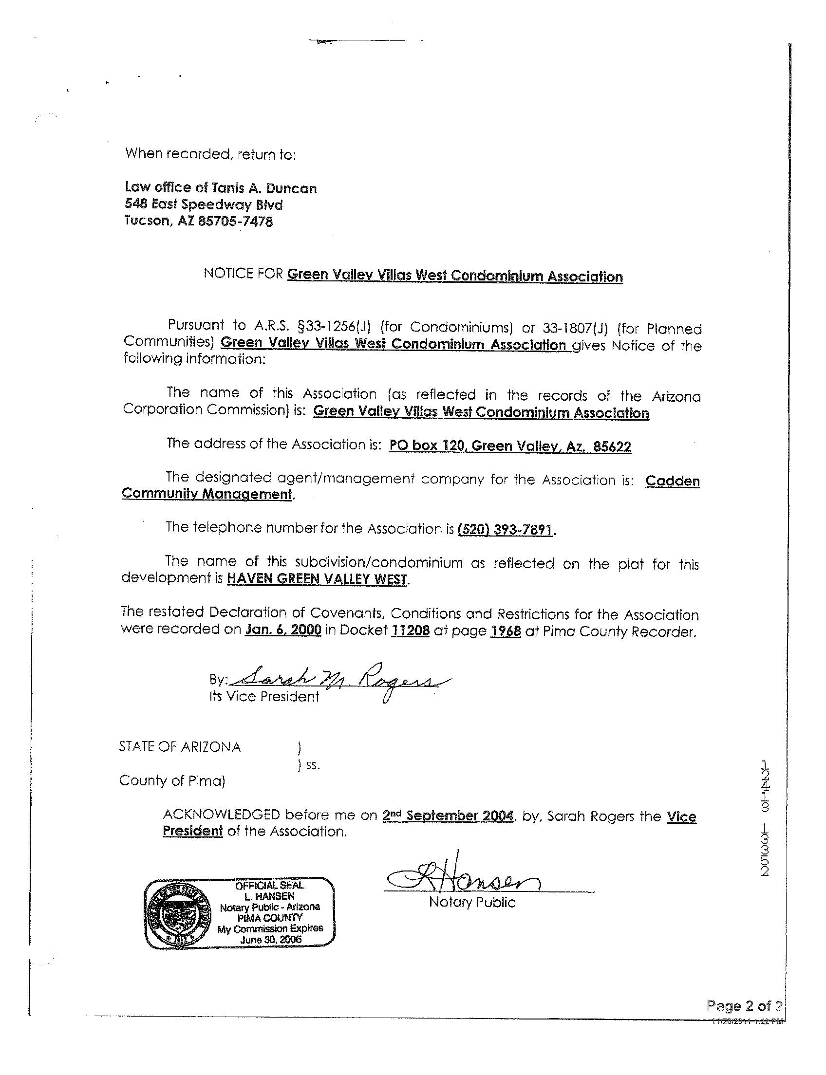 Mailing Address : 226 S La Canada Dr Unit D, Green Valley AZ 85614-2646 C100