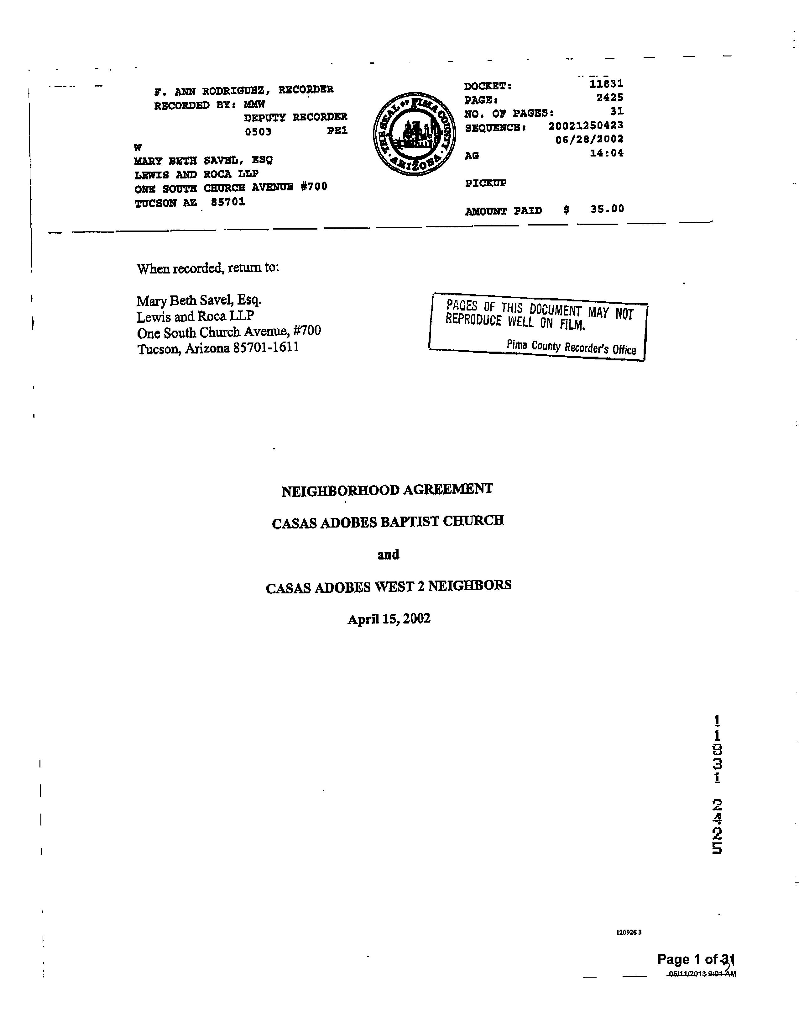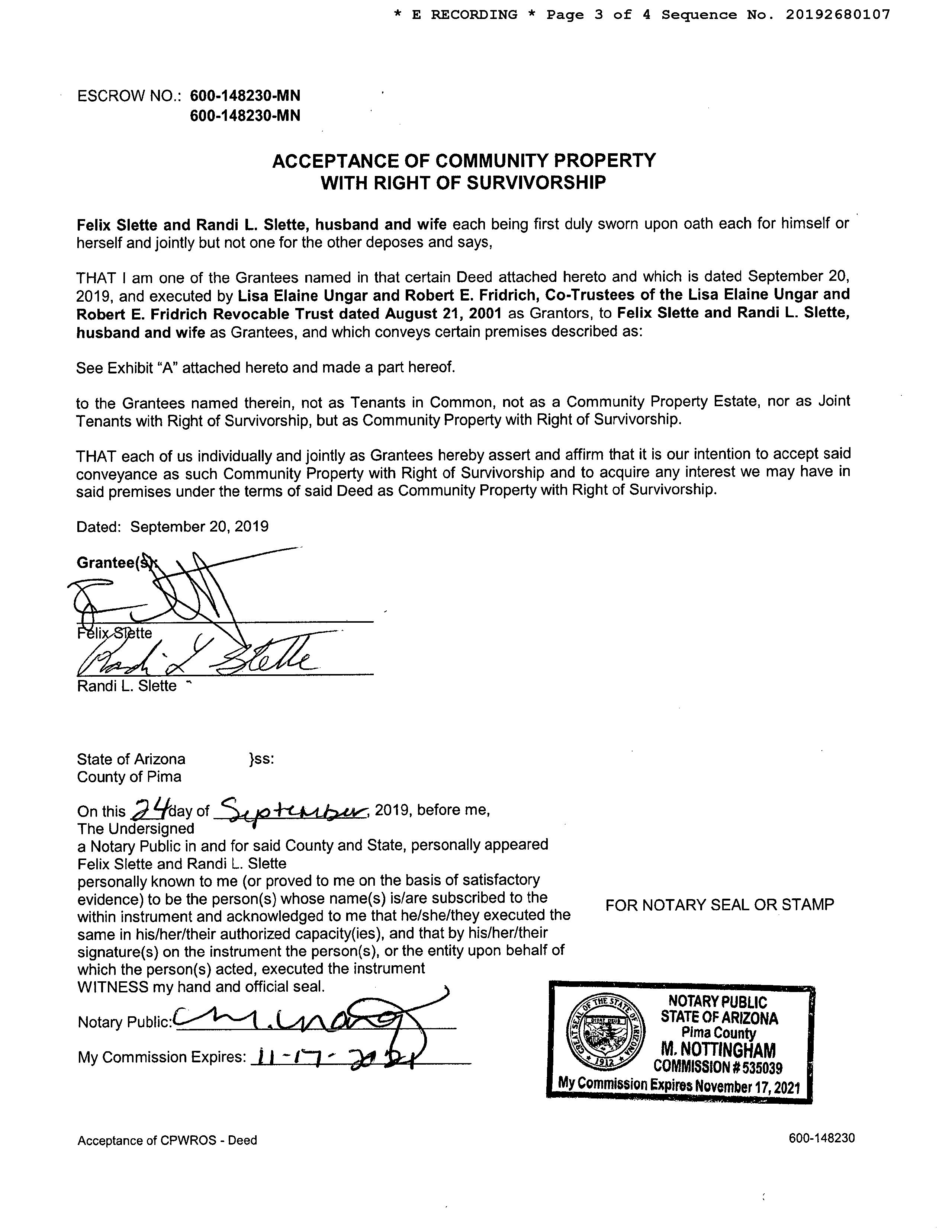 Mailing Address : 2282 W Rapallo Way, Tucson AZ 85741-2617 C014
