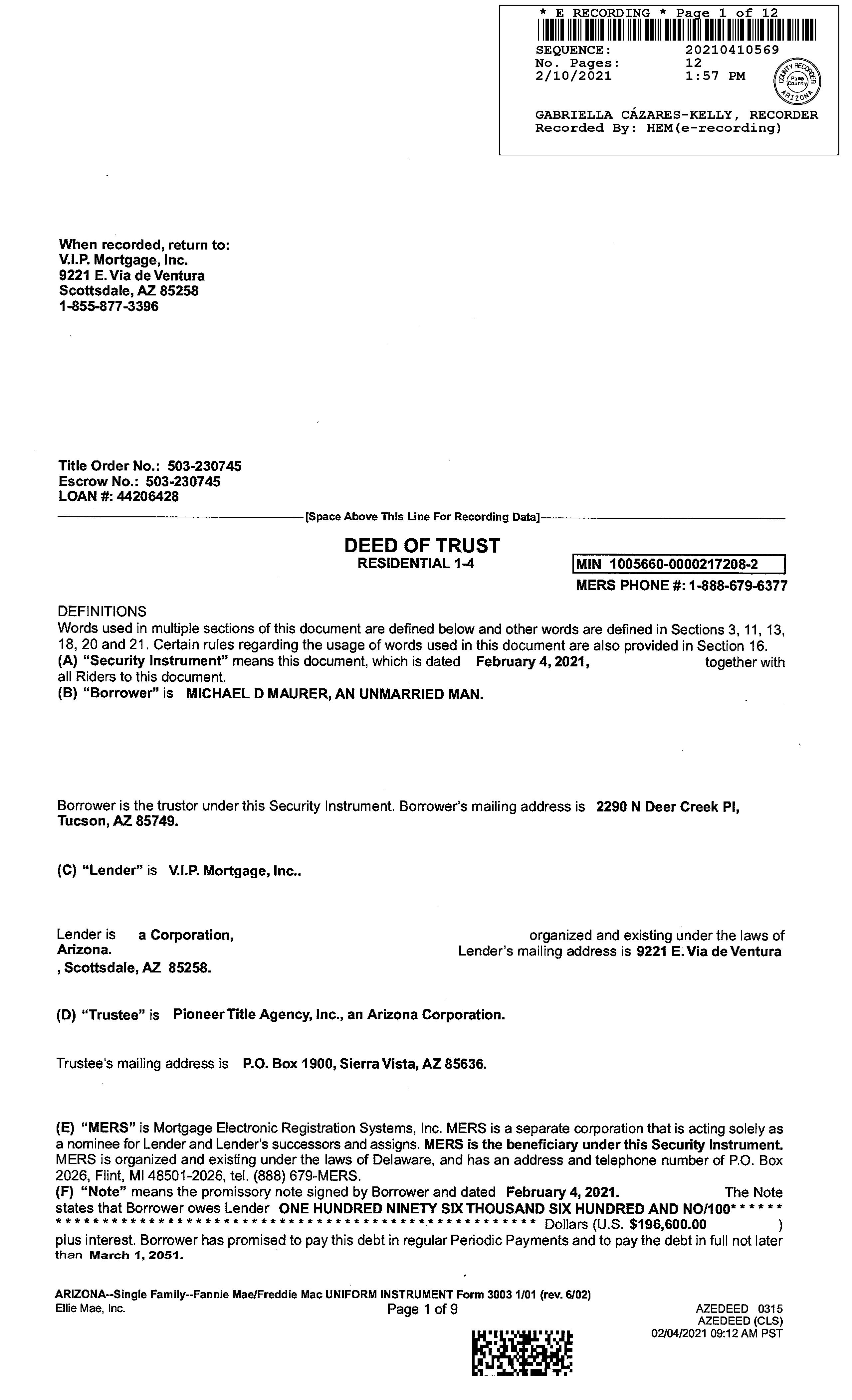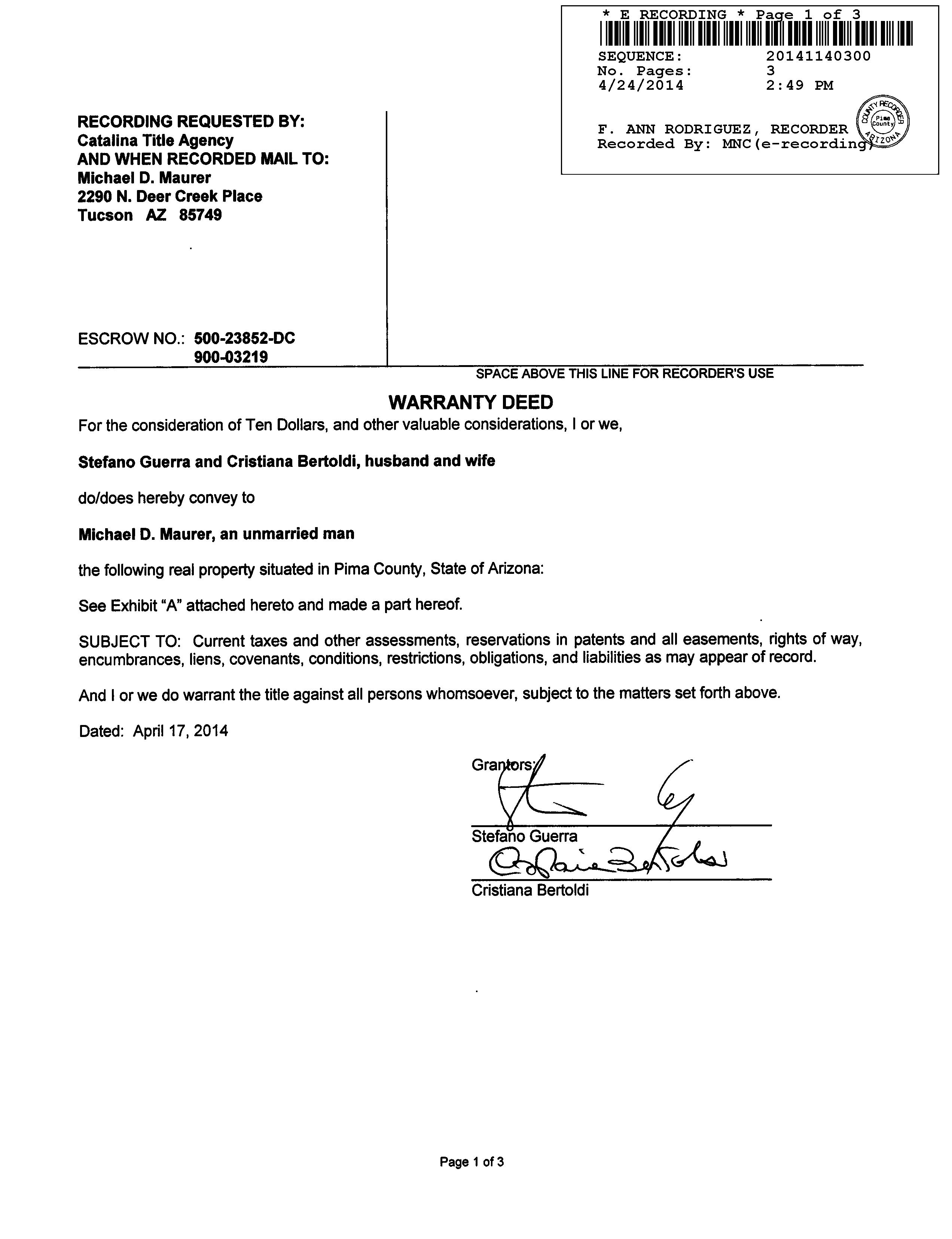 Type : Warranty Deed Price Per SqFt : $143.15 Title Company : Title Security Inc Lender : Vip Mtg Seller Name : Guerra Stefano
