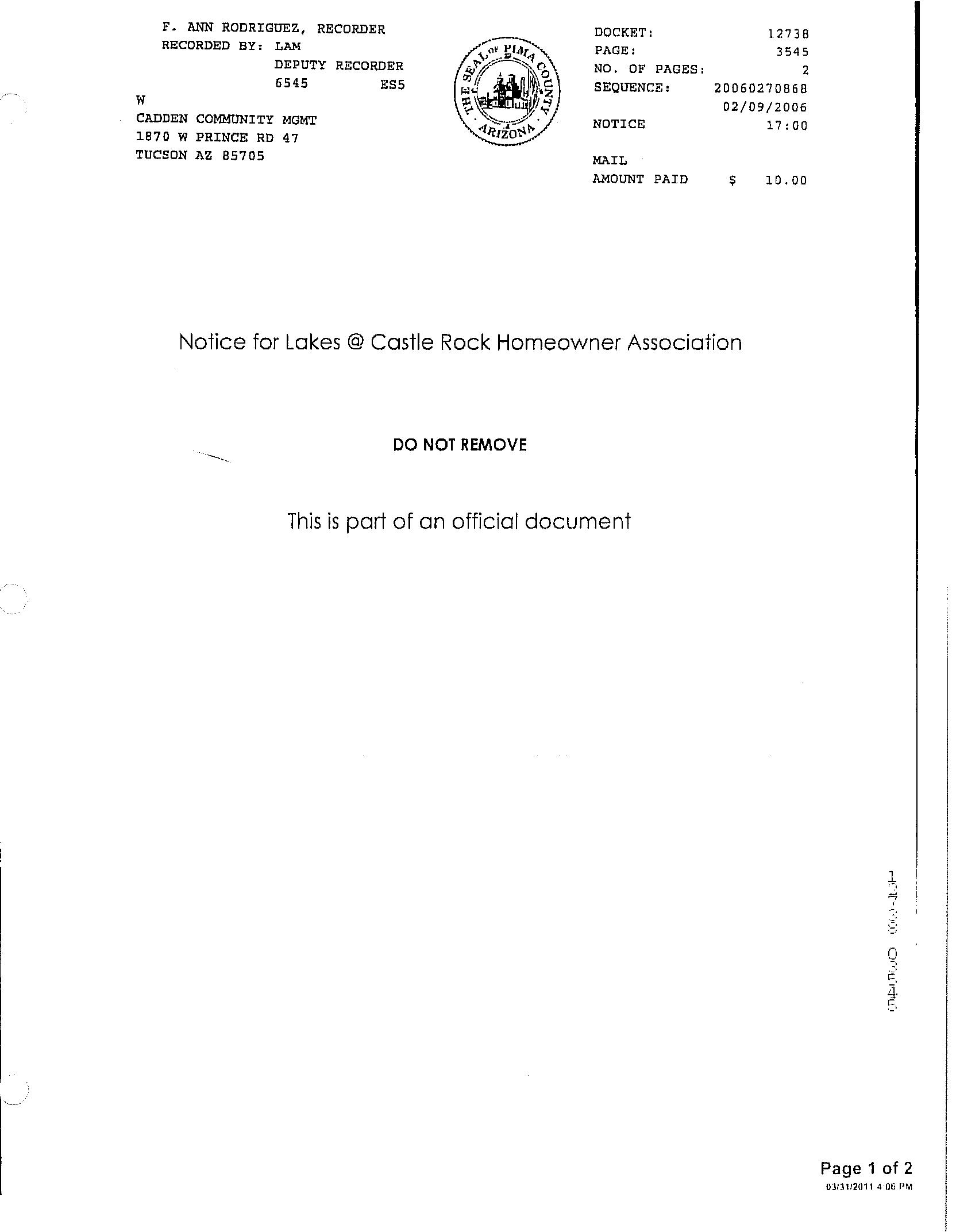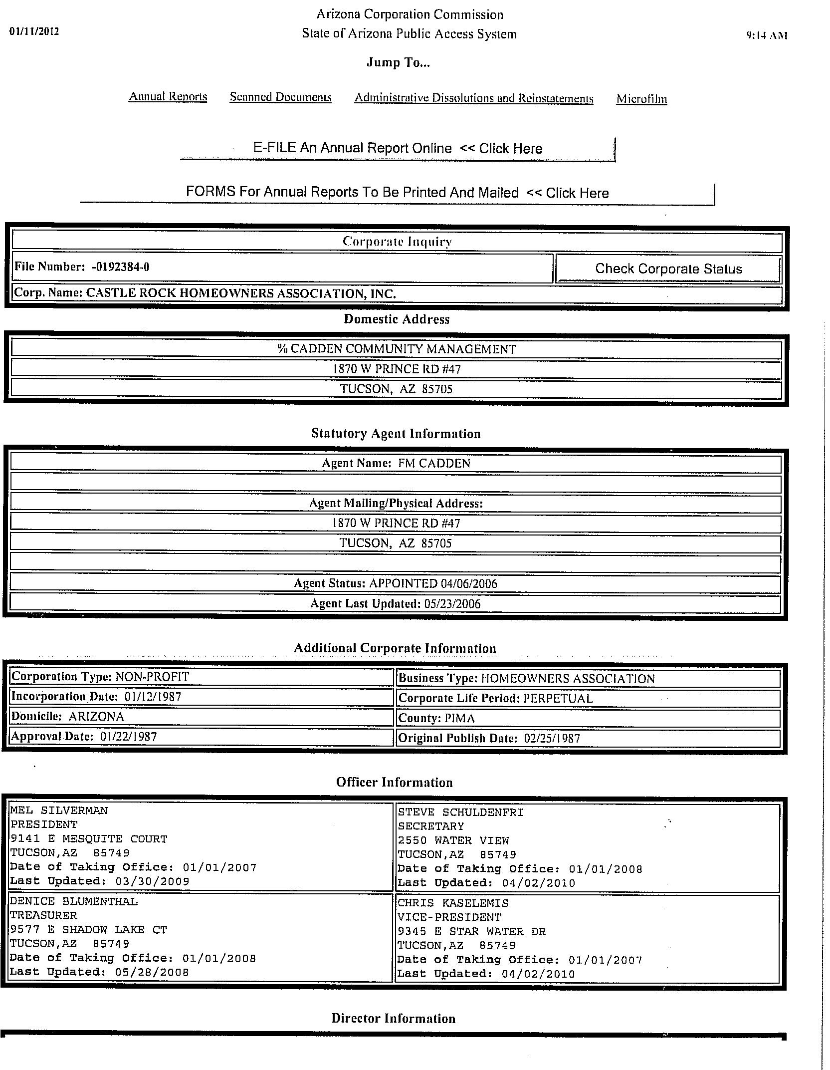 Vacation Home Subdivision : Castle Rock Sale Date : 02/16/2010 Recording Date : 02/17/2010 Total Value : $285,867 Sale Price : $225,500 Bed / Bath : / 3 Property Tax : $3,288.23 Land Use : Sfr Lot Acres : 0.15 Stories : 1 Living Area : 1,815 Yr Blt / Eff Yr Blt : 1997 / APN : 133-47-0350 2300 N DEER CREEK PL Distance 0.01 Miles Owner Name :