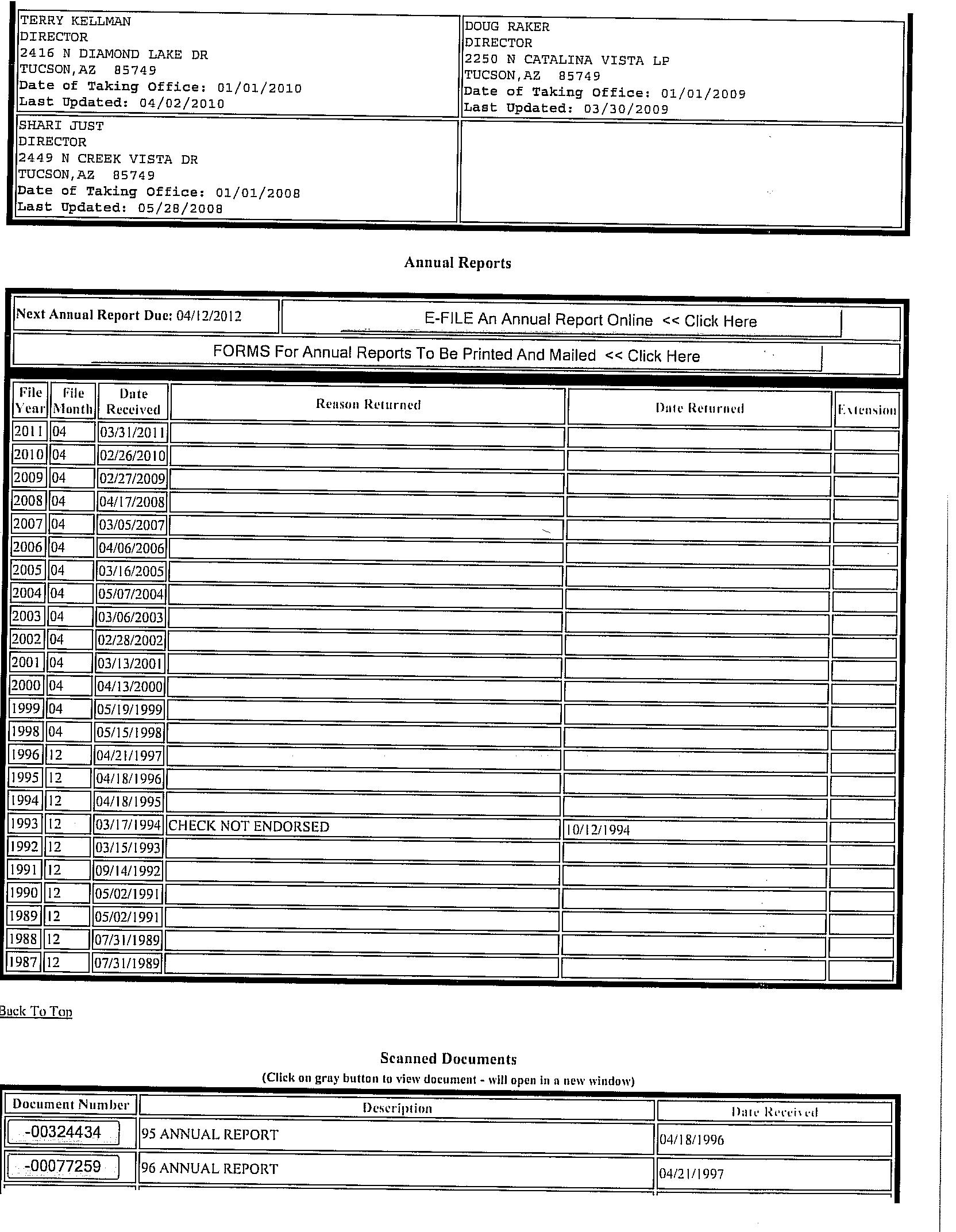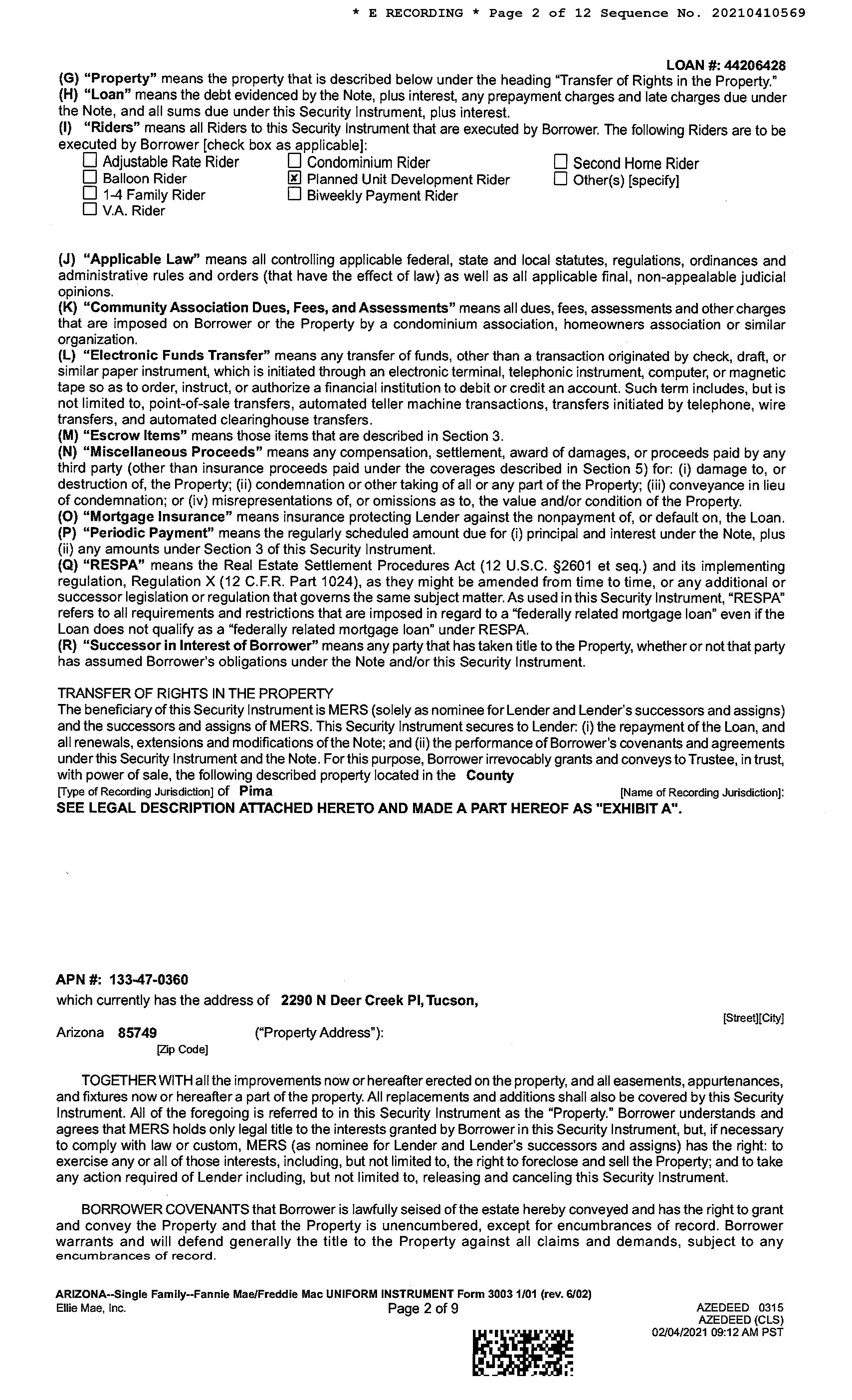 Mailing Address : 2290 N Deer Creek Pl, Tucson AZ 85749-8715 R094
